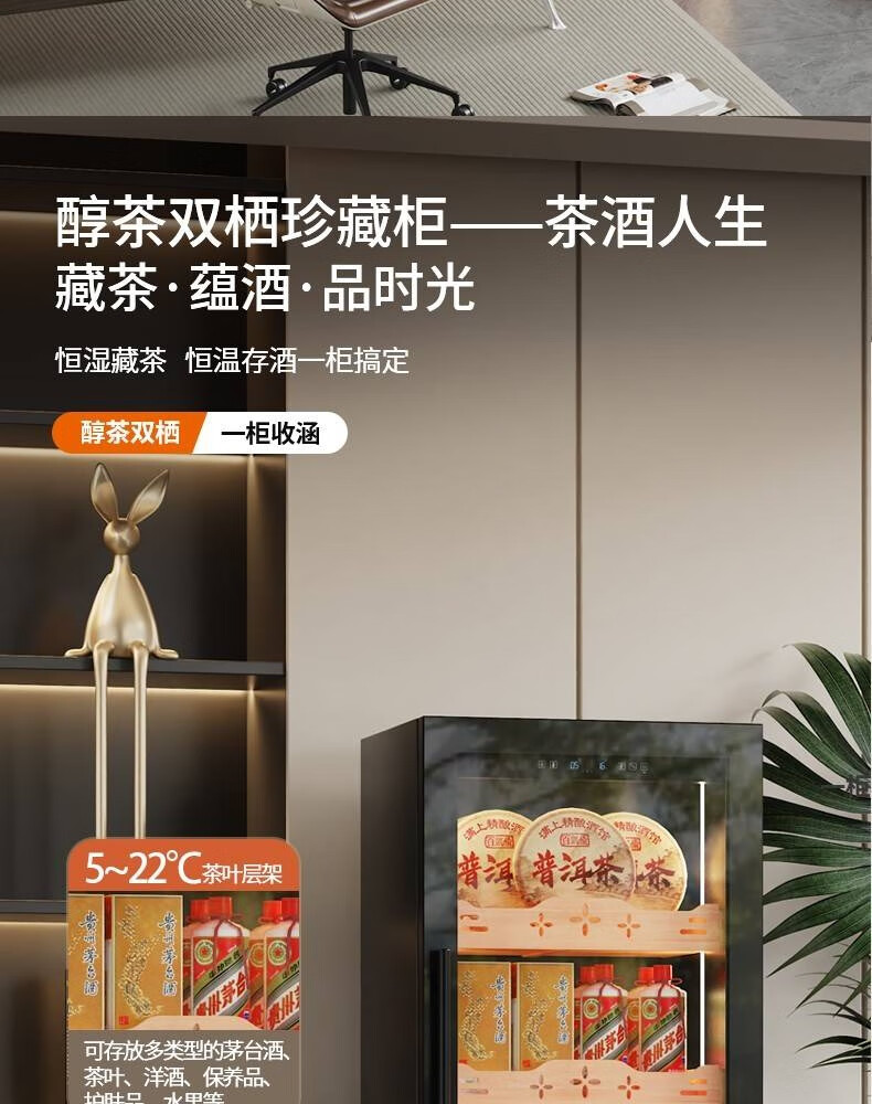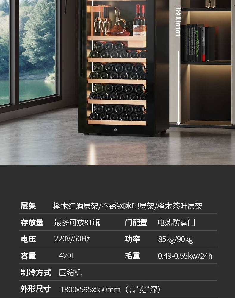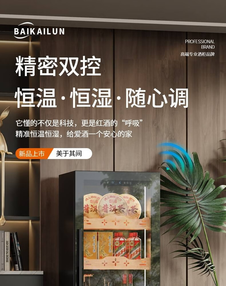 Bai Kailun red wine cabinet, constant temperature and humidity wine cabinet, air-cooled, frost-free, home office special tea cabinet, wine Moutai humidity-controlled display cabinet, fruit drinks and wine, first-class energy efficiency, multi-functional model - tea - red wine - foreign wine - white wine 420L upgraded model - precise temperature and humidity control