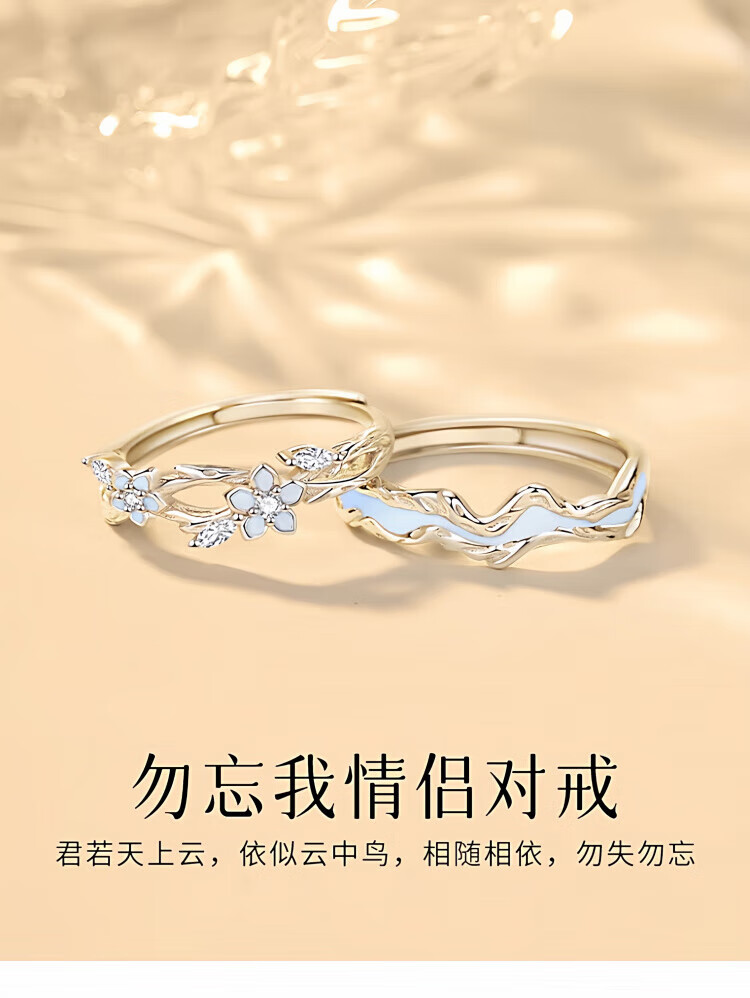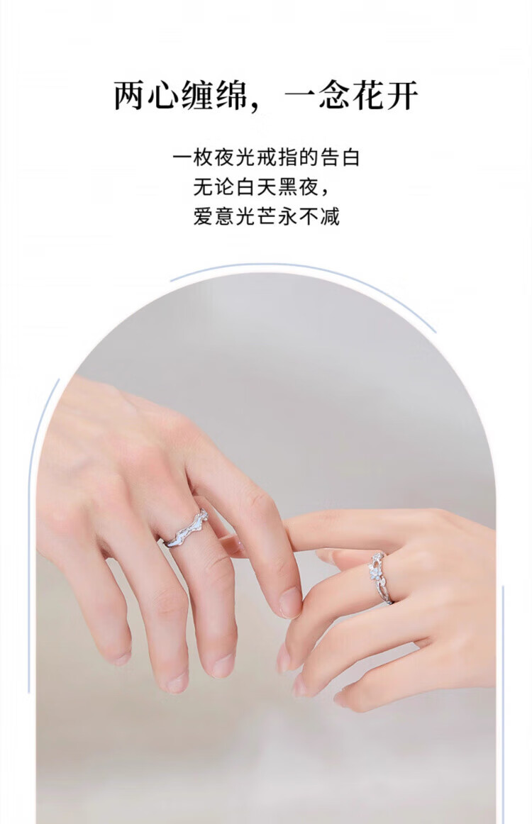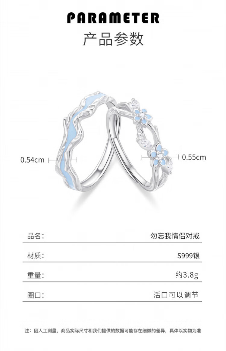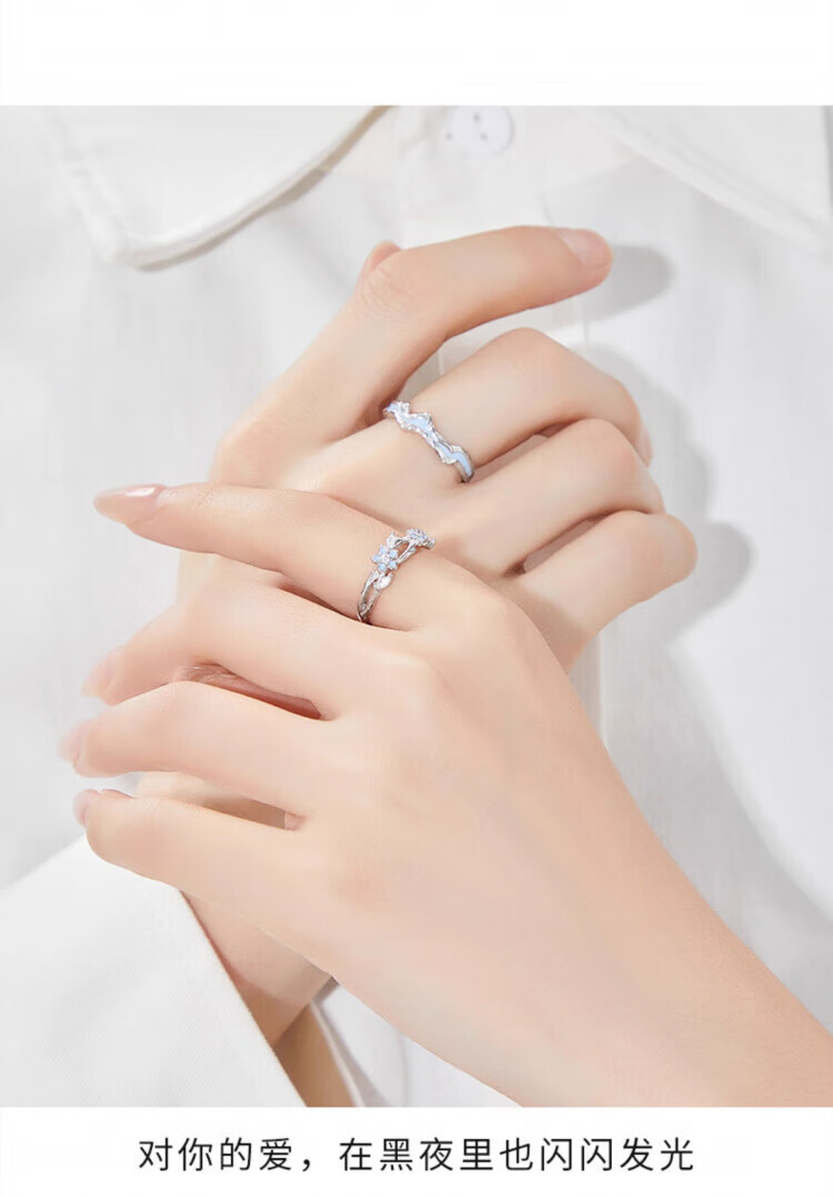 DRIG couple's ring 999 sterling silver ring for a woman and a man, wedding proposal, birthday gift for wife and girlfriend, forget-me-not couple's ring - luminous, light luxury gift box, opening adjustable