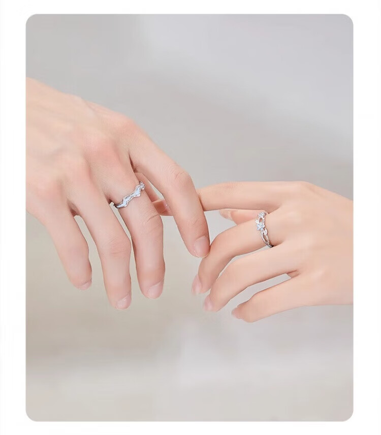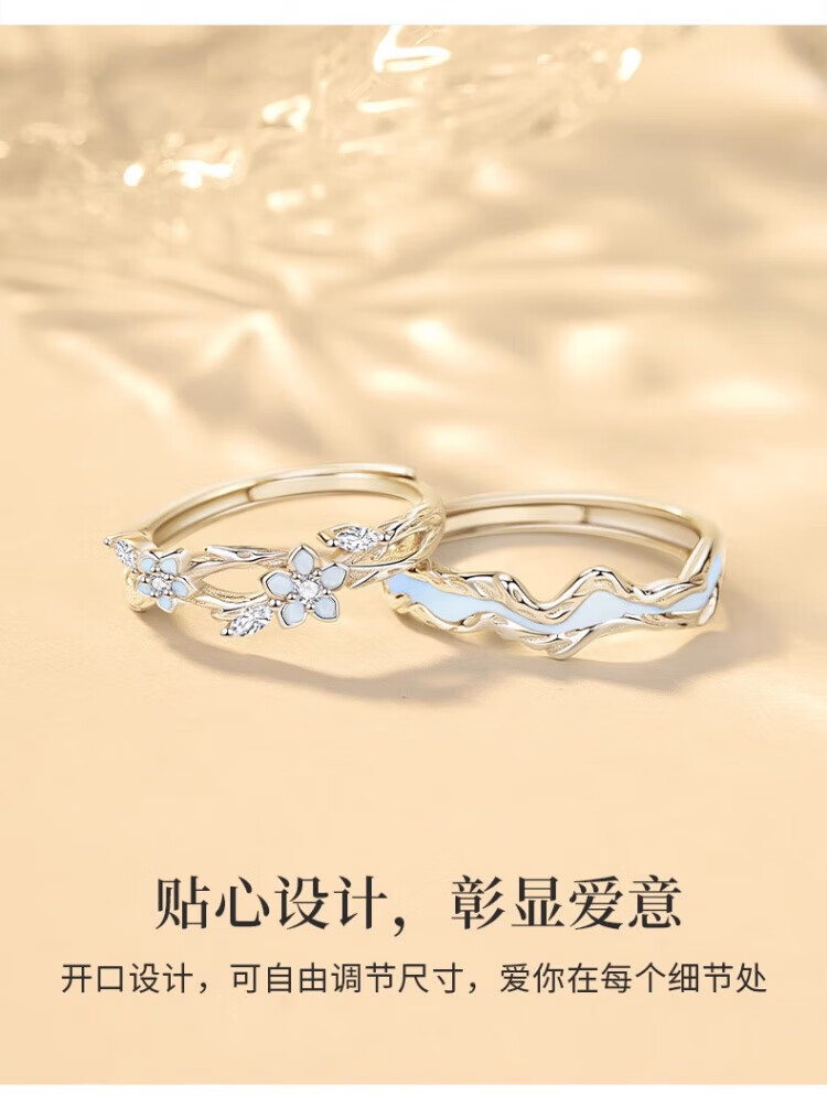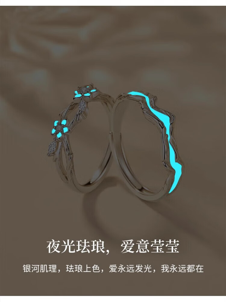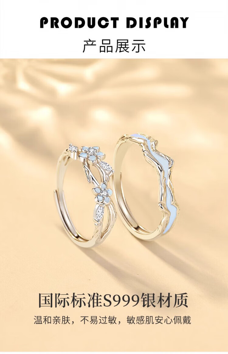 DRIG couple's ring 999 sterling silver ring for a woman and a man, wedding proposal, birthday gift for wife and girlfriend, forget-me-not couple's ring - luminous, light luxury gift box, opening adjustable