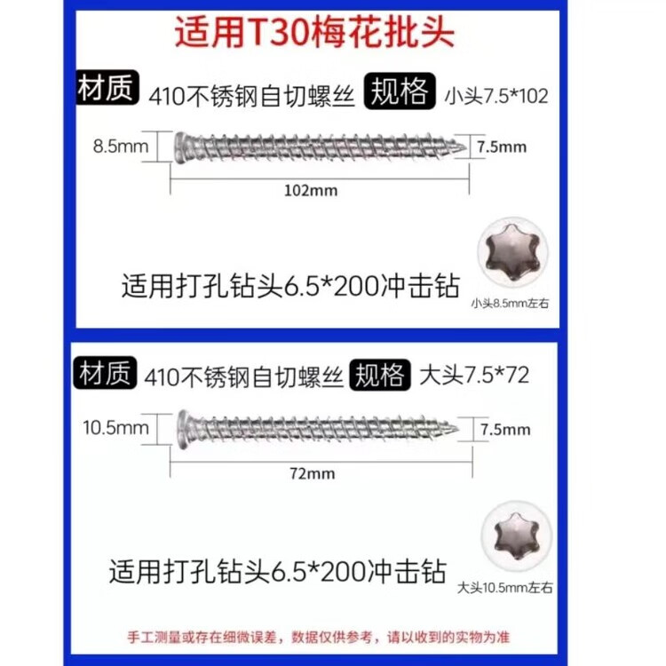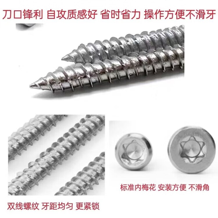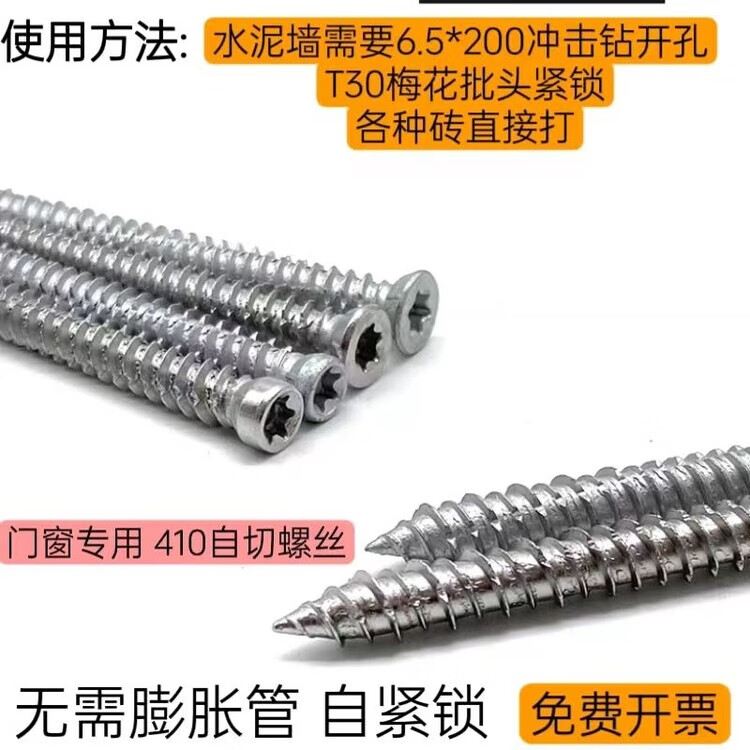 Bun Peng German self-cutting screws 410 German stainless steel door and window installation T30 cement plum screws German cement doors and windows 40 pieces bagged small head 7.5*92