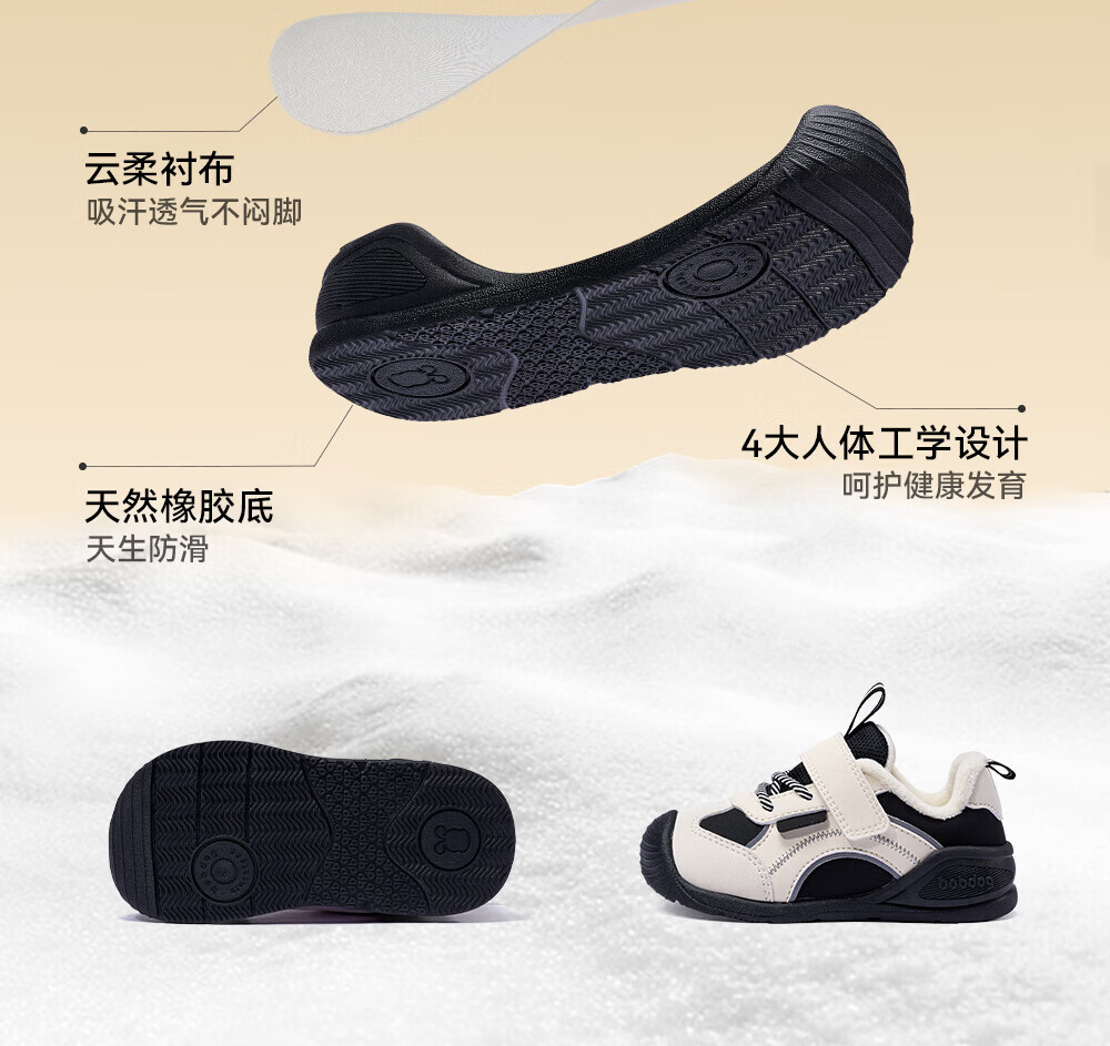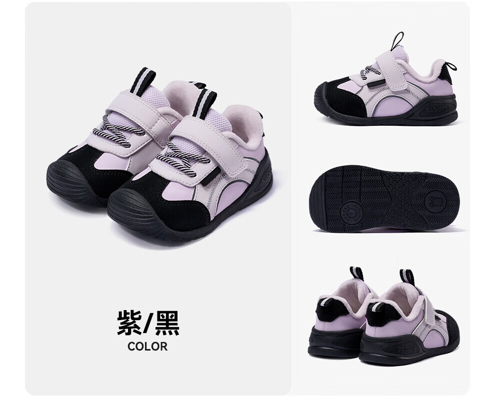 BOBDOG Children's Shoes 25 Winter Baby Toddler Shoes Boys' Shoes Outdoor Shoes Non-Slip Wear-Resistant Boys' Shoes Purple/Black Velvet Winter Style 22 Inner Length 14cm, Suitable for Feet 13.5cm Long