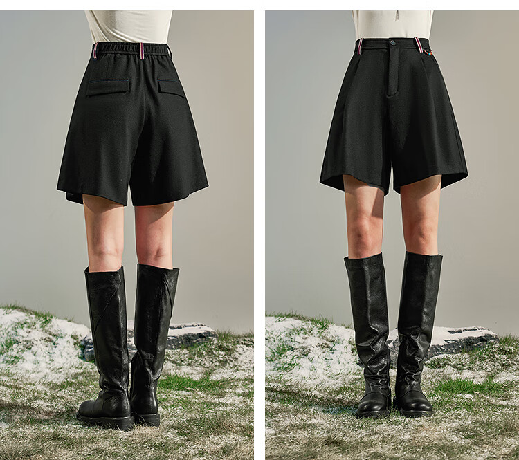 Rishuo Xunyou Wool Wide Leg Shorts 2025 New Autumn and Winter High Waist Loose Casual Versatile Slim Medium Pants Women's Housewood Black S