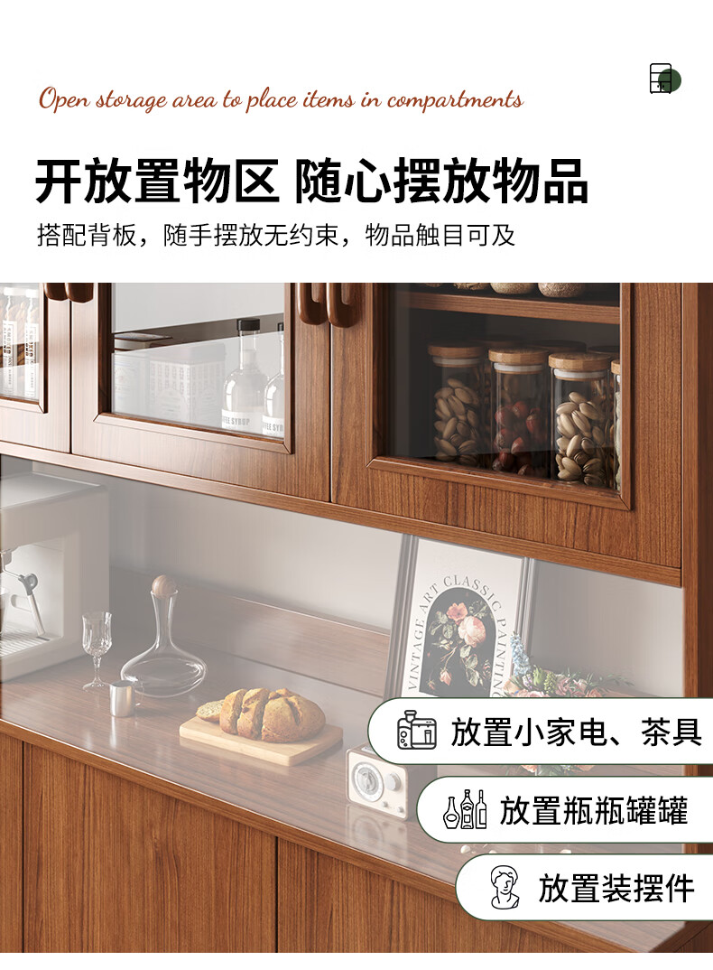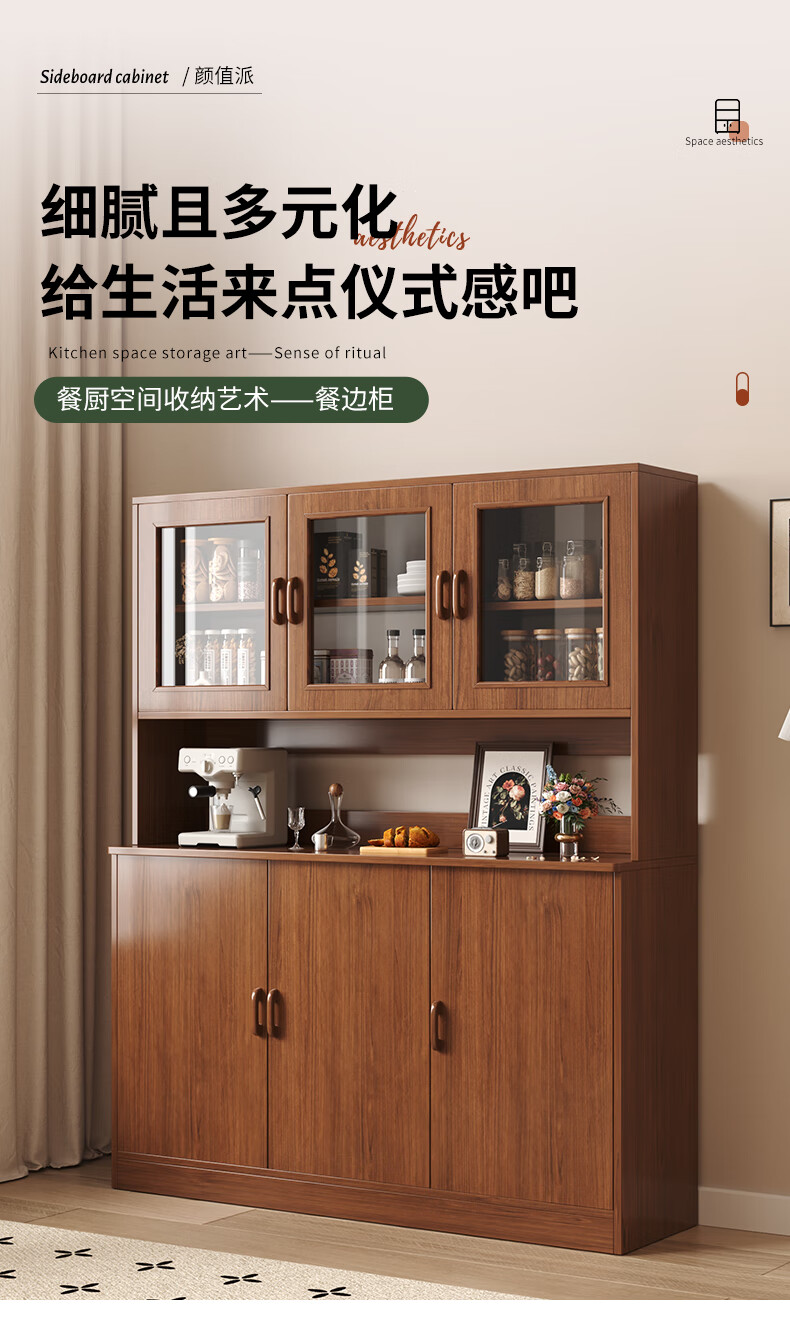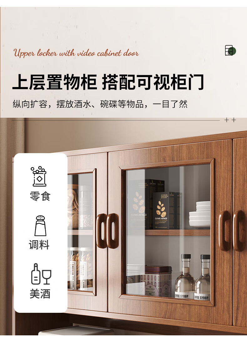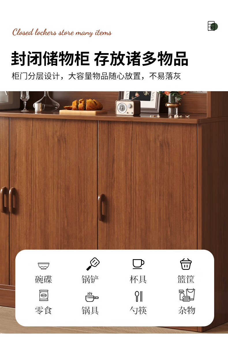 Konosu solid wood sideboard integrated wall-mounted living room wine cabinet tea cabinet storage cabinet multi-functional meal preparation storage storage cabinet four cabinet doors walnut color 80*34*182cm self-installation (installation tools provided)
