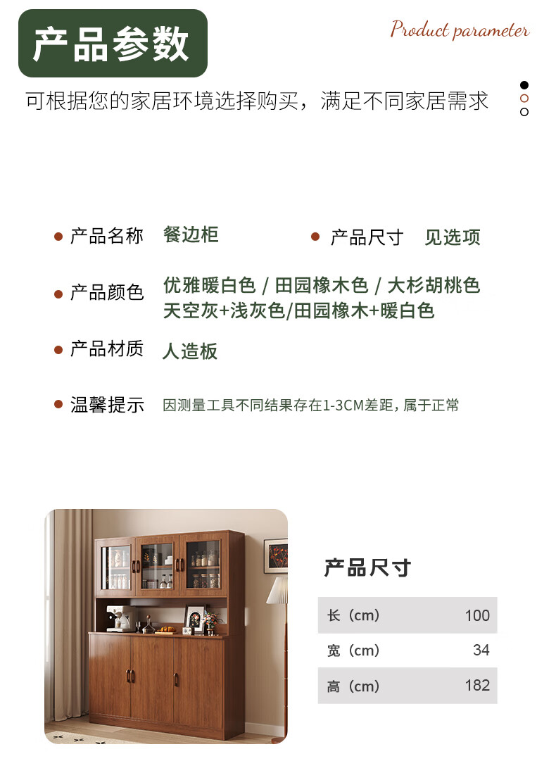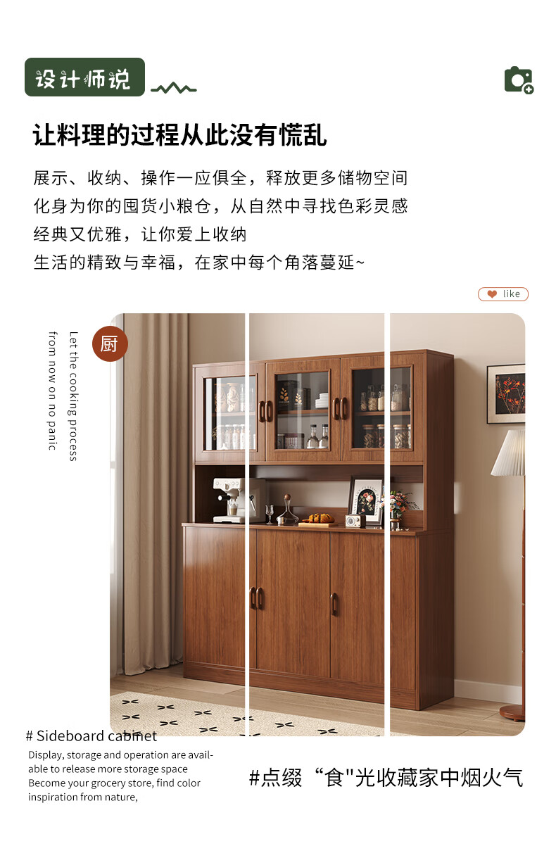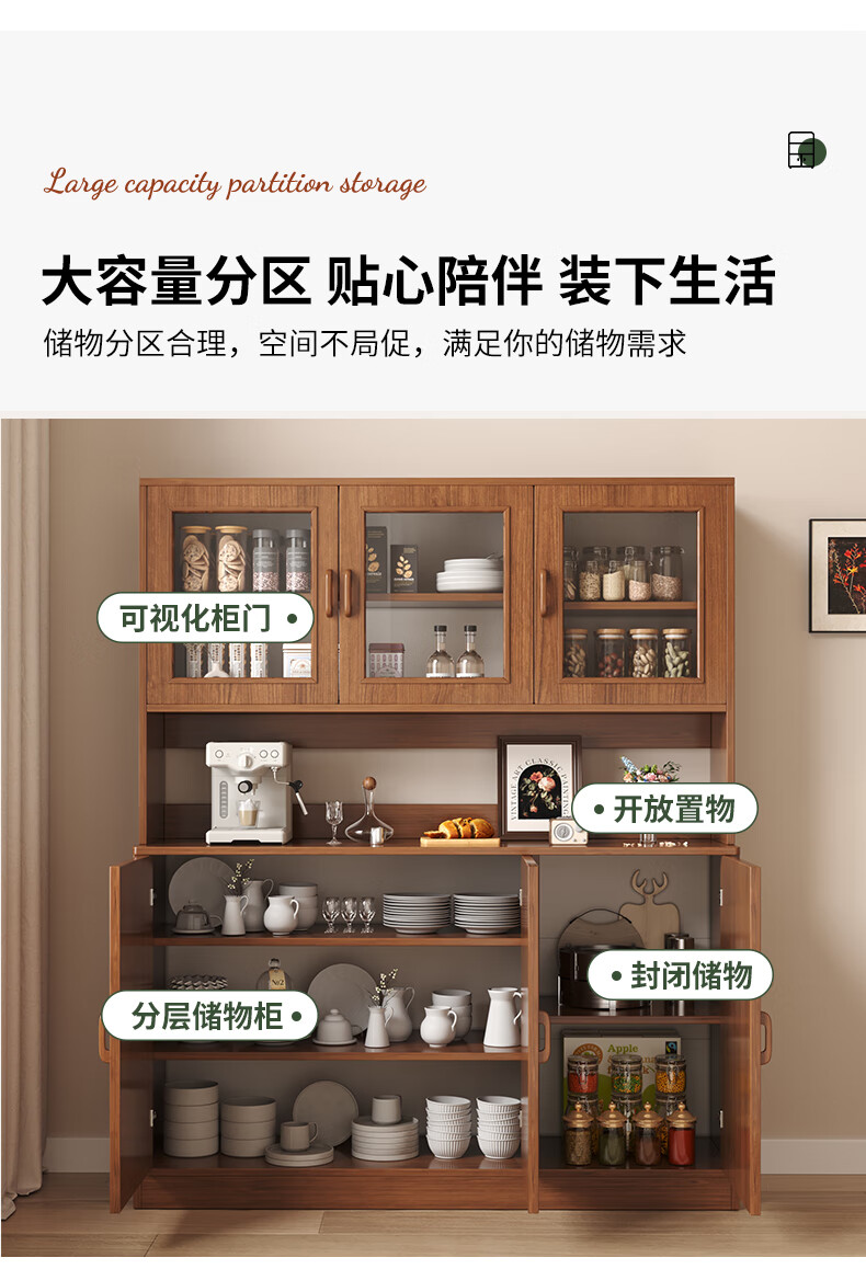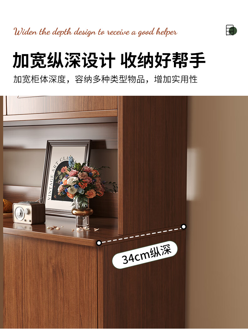 Konosu solid wood sideboard integrated wall-mounted living room wine cabinet tea cabinet storage cabinet multi-functional meal preparation storage storage cabinet four cabinet doors walnut color 80*34*182cm self-installation (installation tools provided)