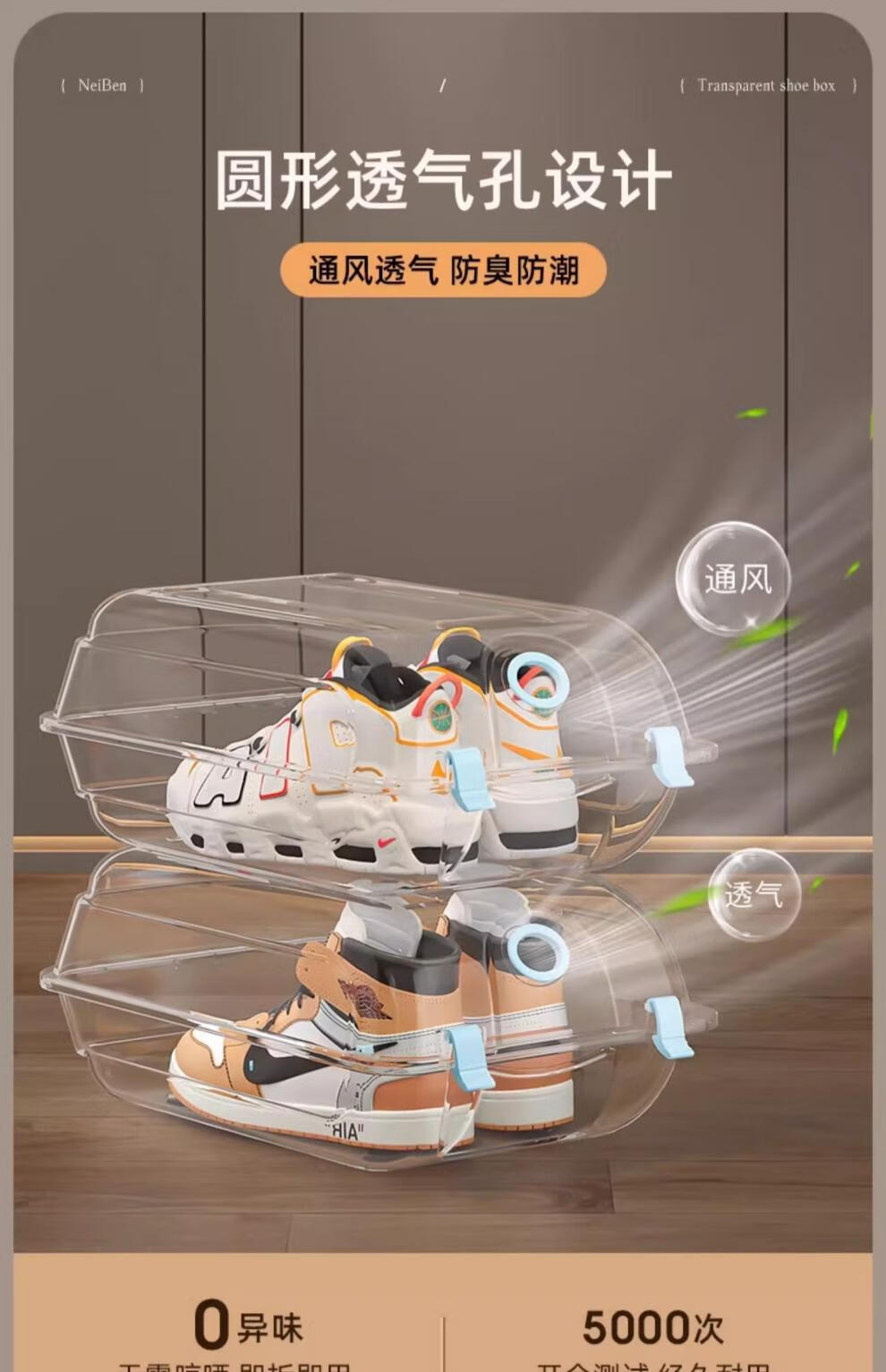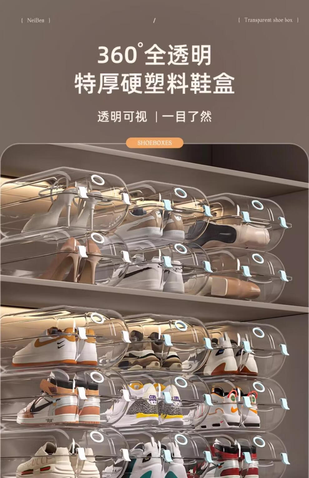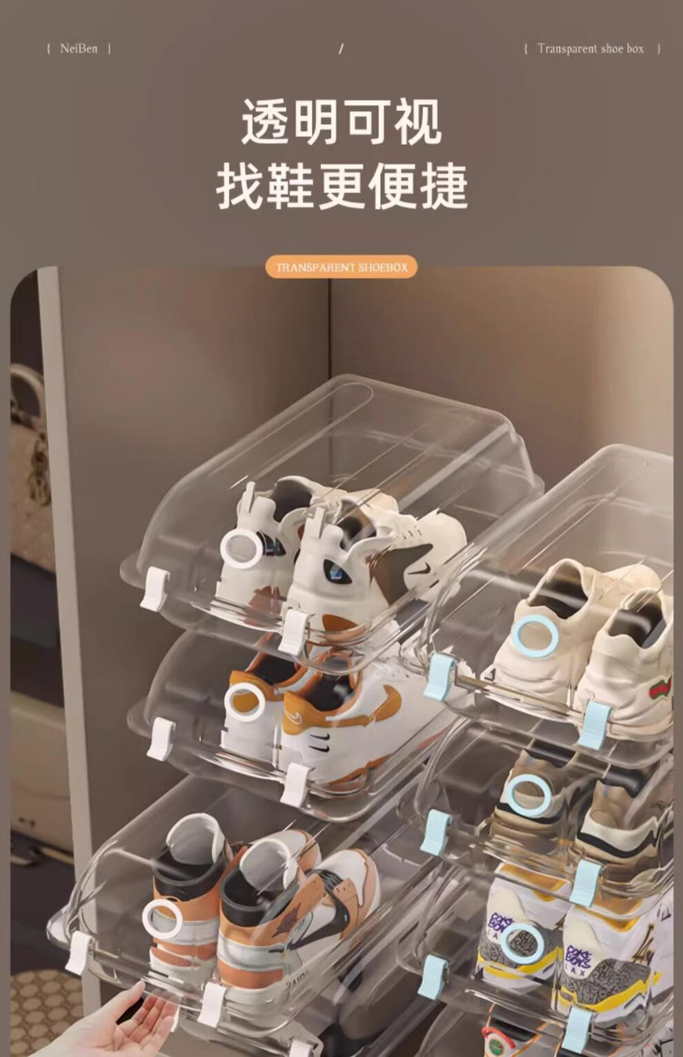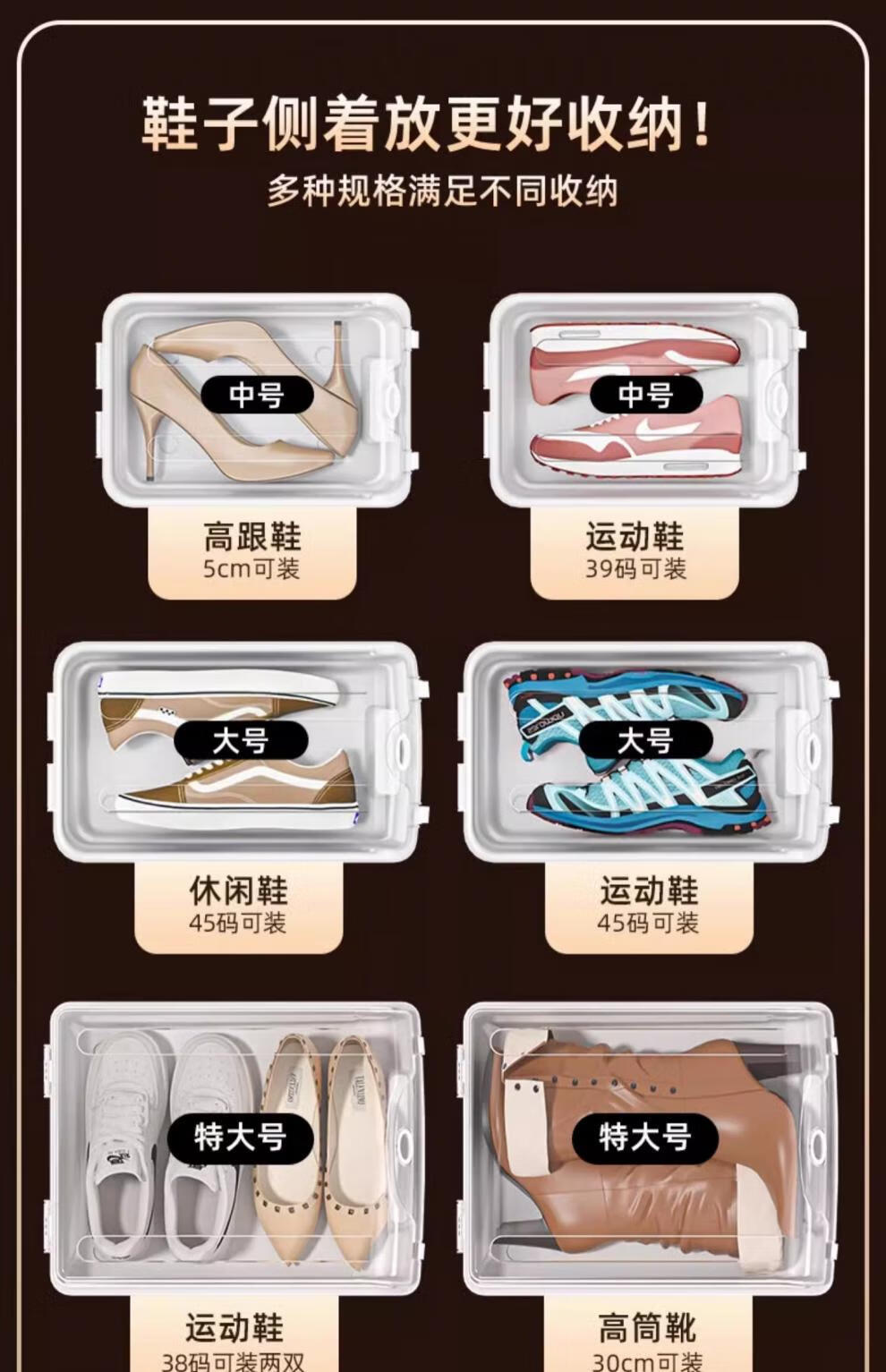 Fat Donglai quality transparent shoe cabinet storage cabinet transparent shoe box storage box plastic boots shoe box shoe cabinet storage 8 pieces - extra large - white buckle for sports shoes/boots/high-top AJ