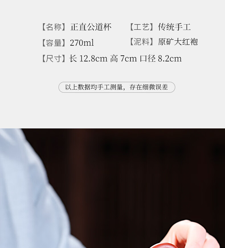 Yixing raw ore Dahongpao pure handmade authentic purple clay teapot accessories tea ceremony thickened heat-resistant fair cup tea divider raw ore Dahongpao about 270ml