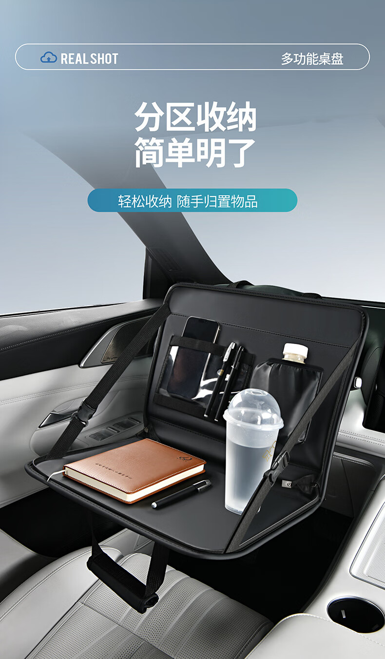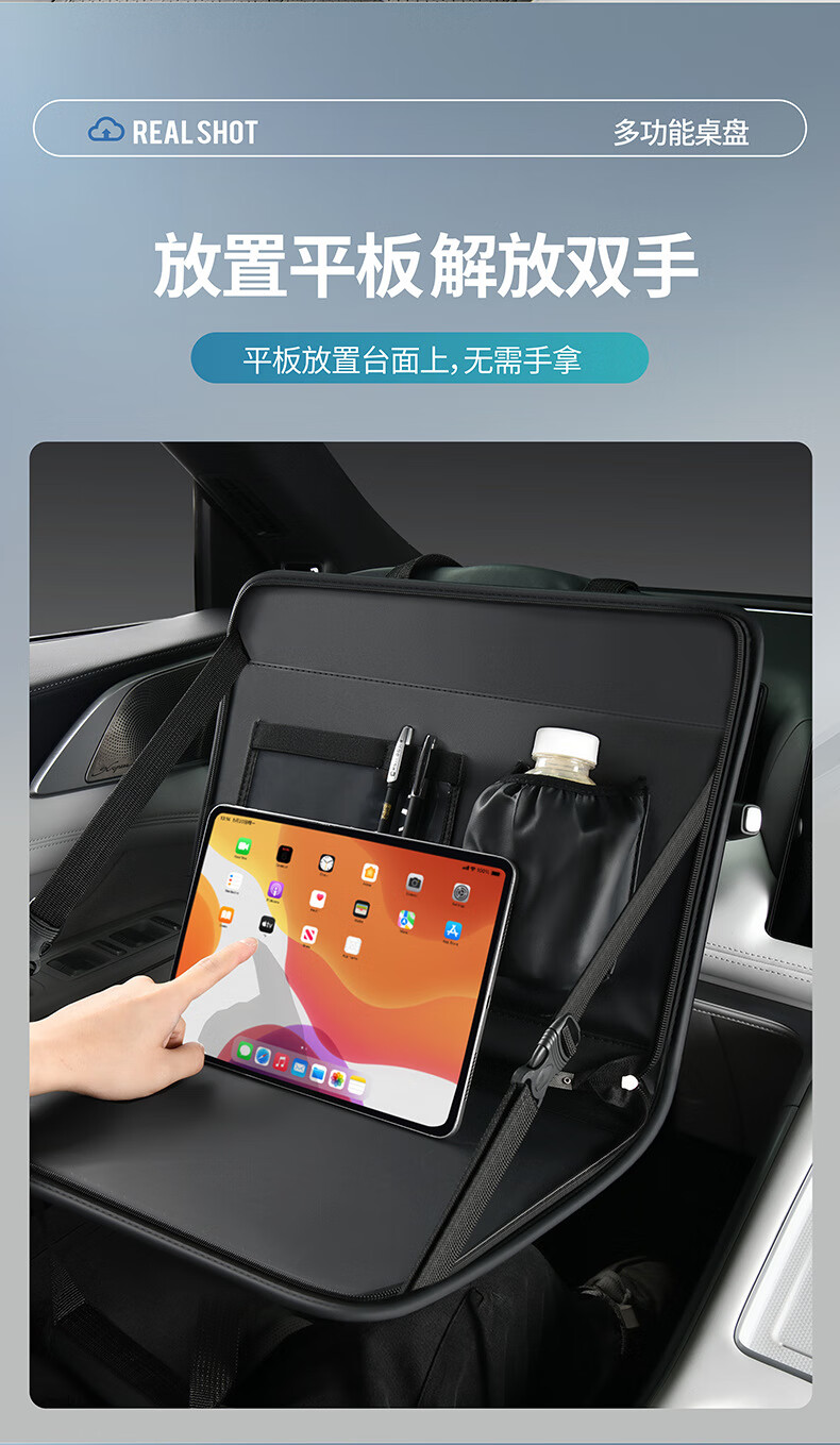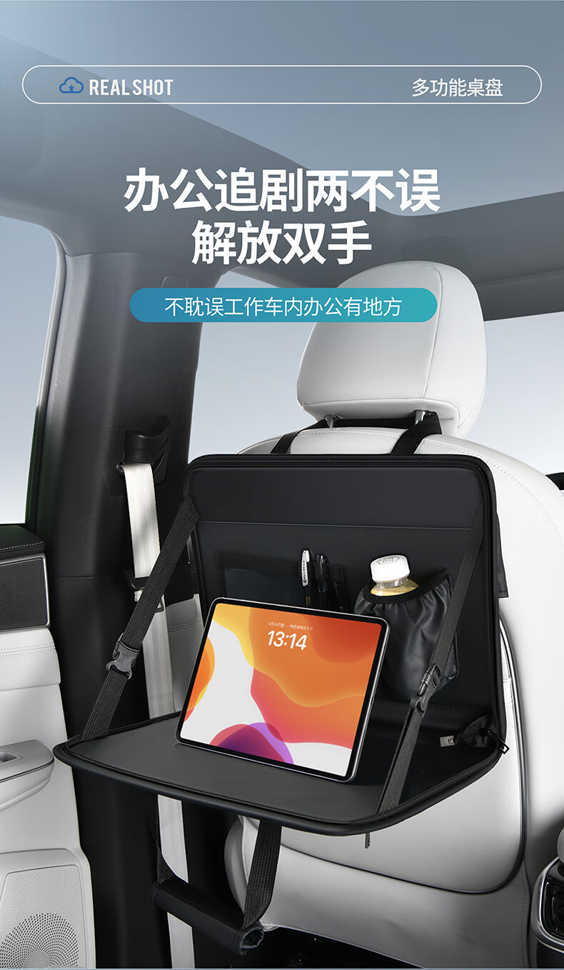 Car chair back dining table multifunctional folding small table seat storage bag car folding car steering wheel dining table black