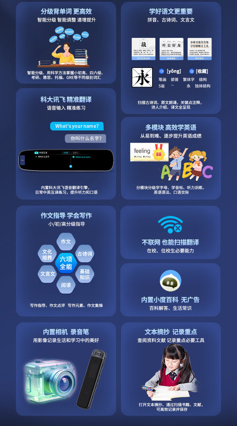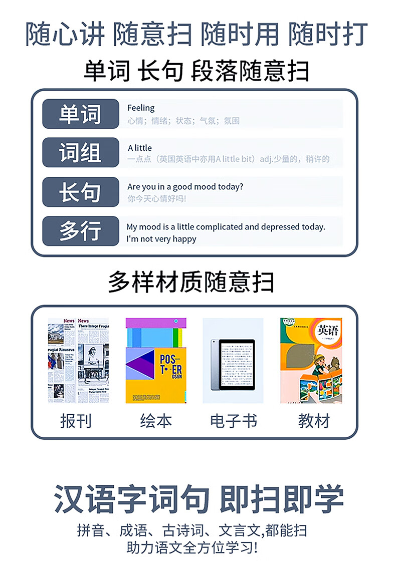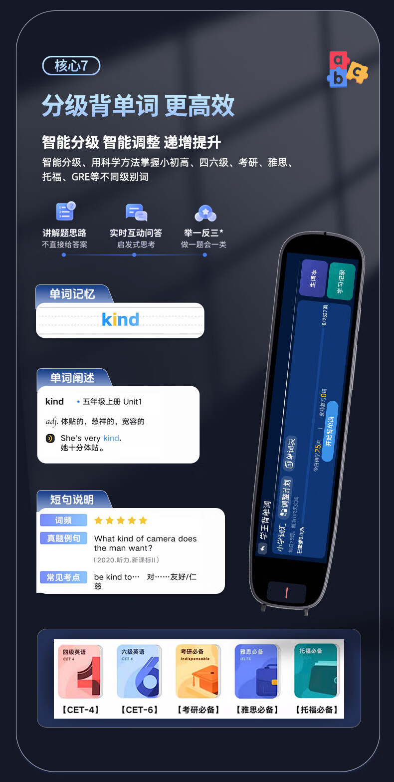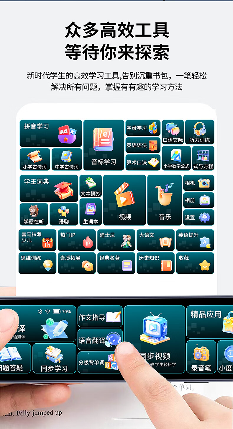 Xiaocai Tianxueba 2026 new English reading pen scanning dictionary pen scanning translation learning machine word search synchronization primary school junior high school high school students curriculum full subject learning offline scanning large screen offline available upgraded version 4-inch general subject version + scan to search questions 128GB