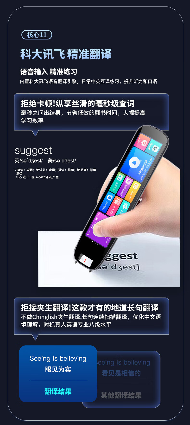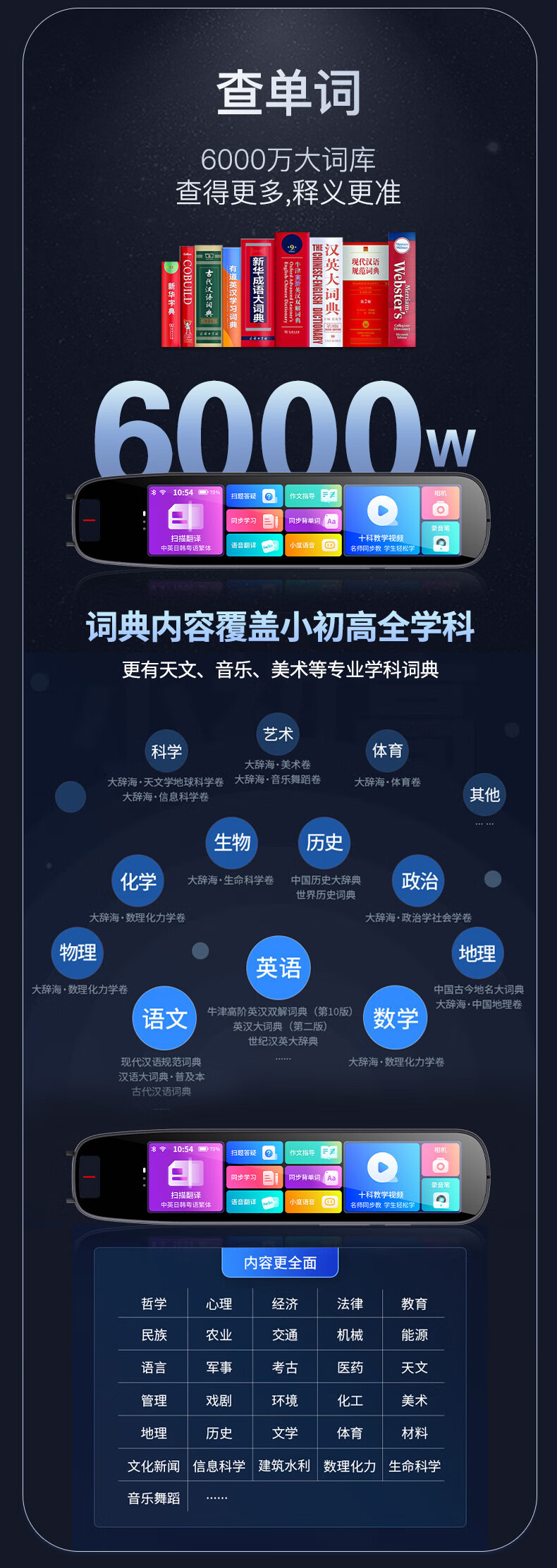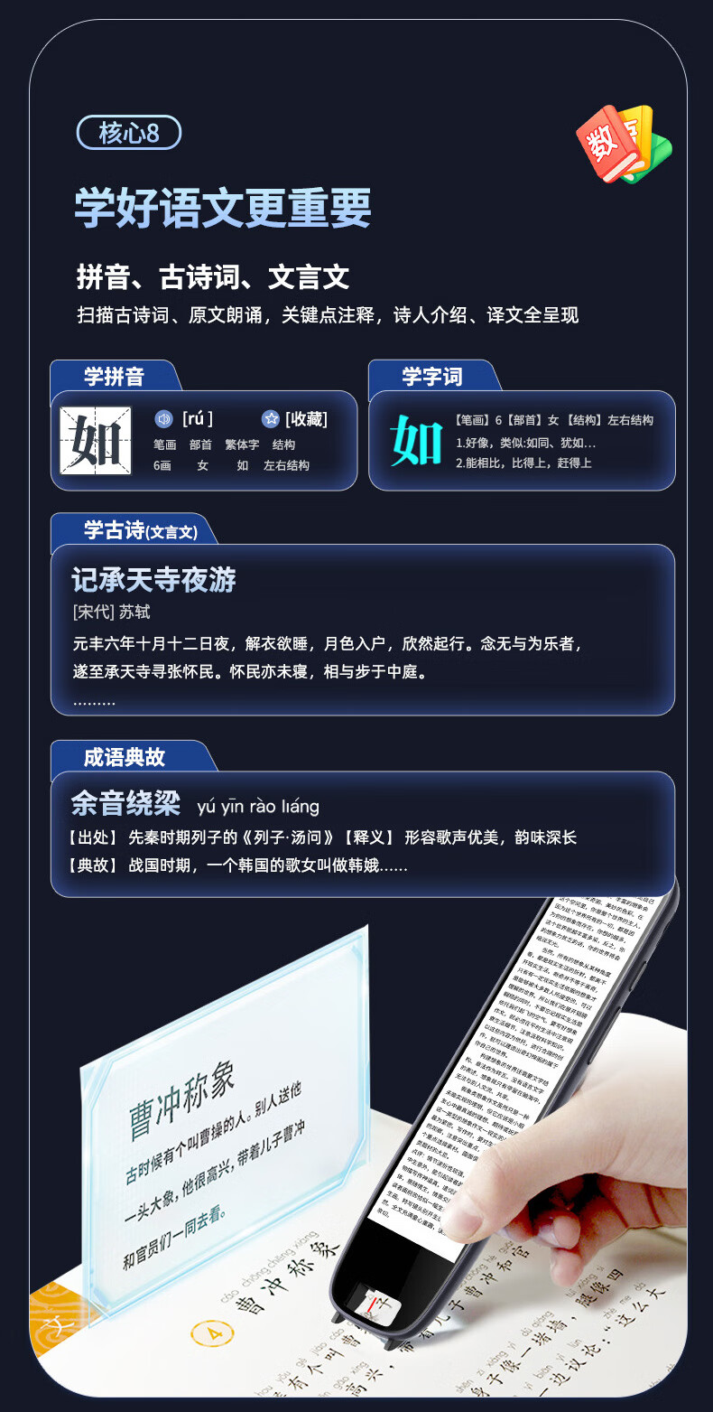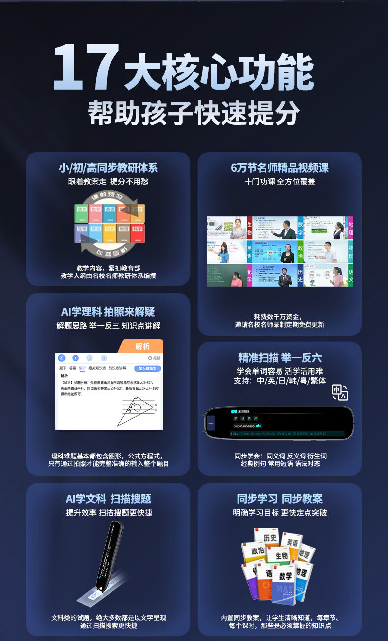 Xiaocai Tianxueba 2026 new English reading pen scanning dictionary pen scanning translation learning machine word search synchronization primary school junior high school high school students curriculum full subject learning offline scanning large screen offline available upgraded version 4-inch general subject version + scan to search questions 128GB