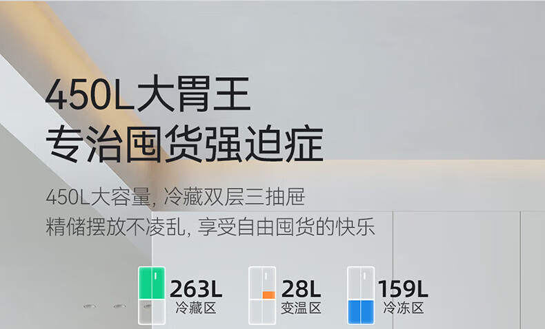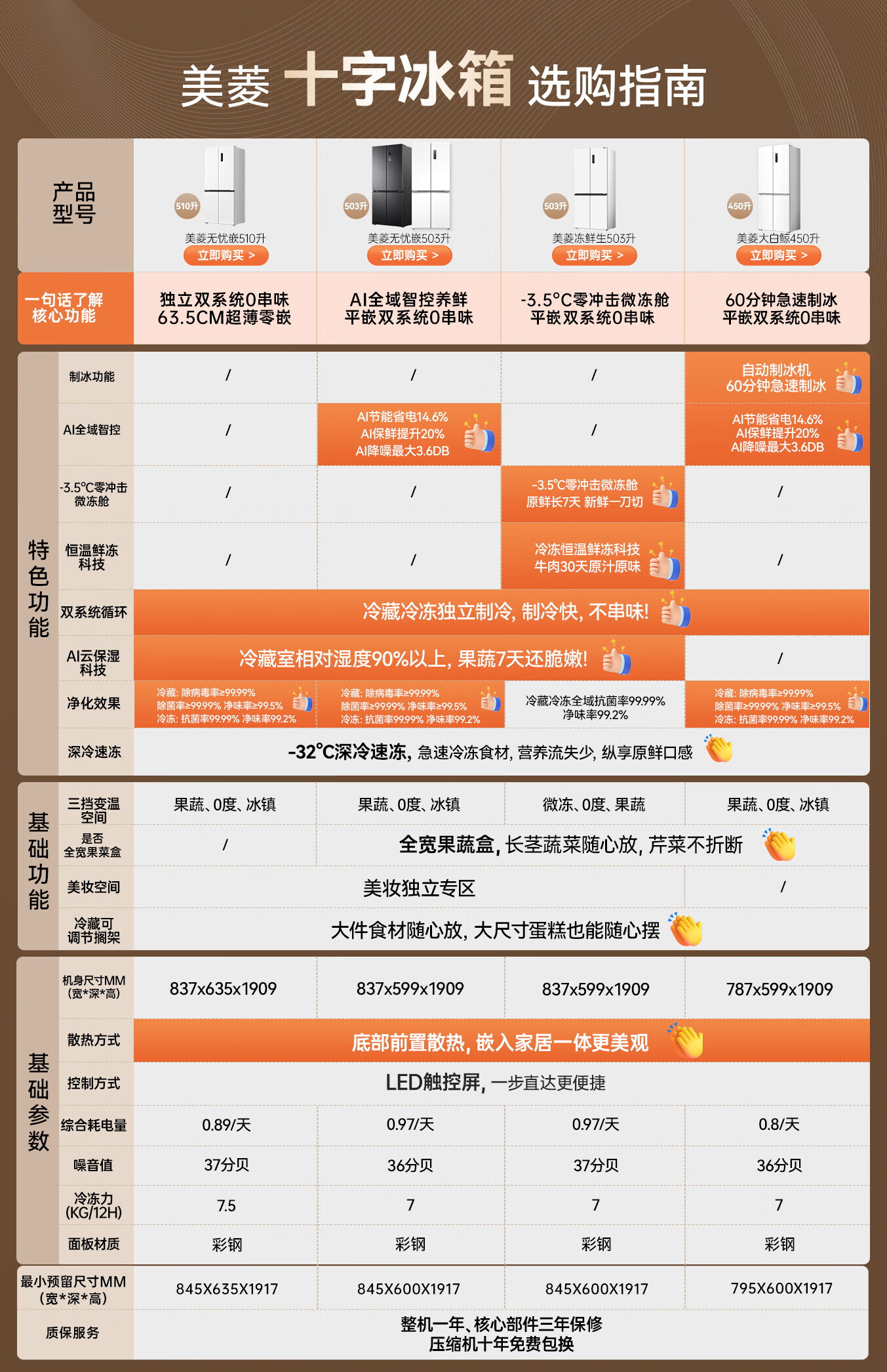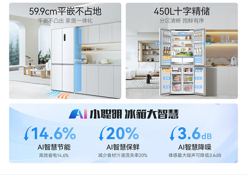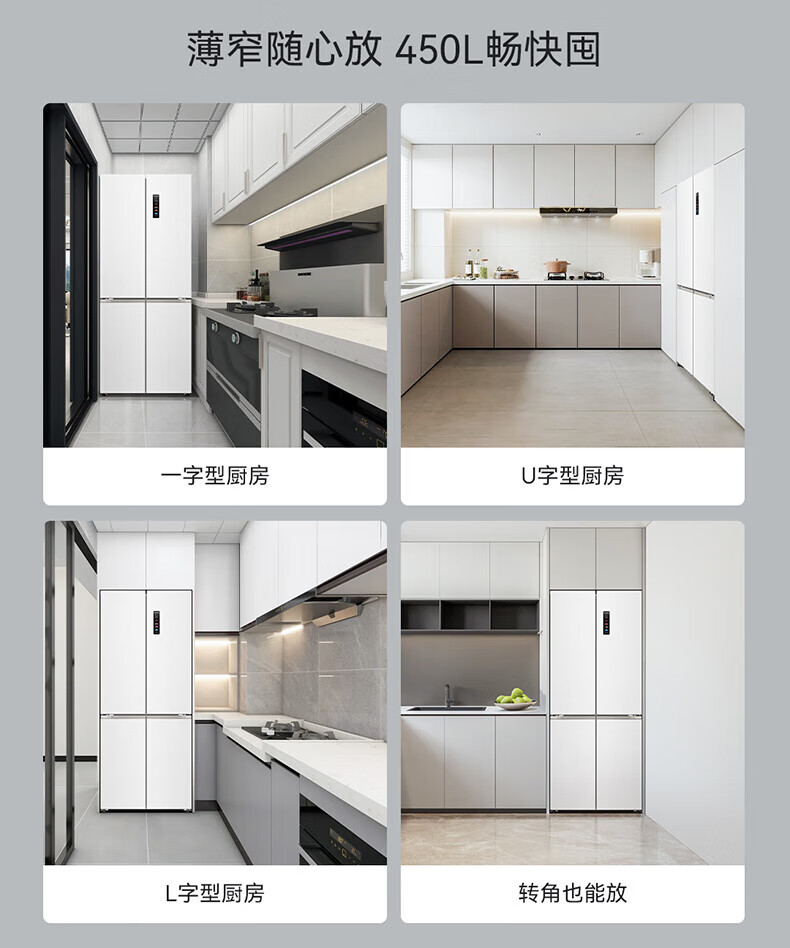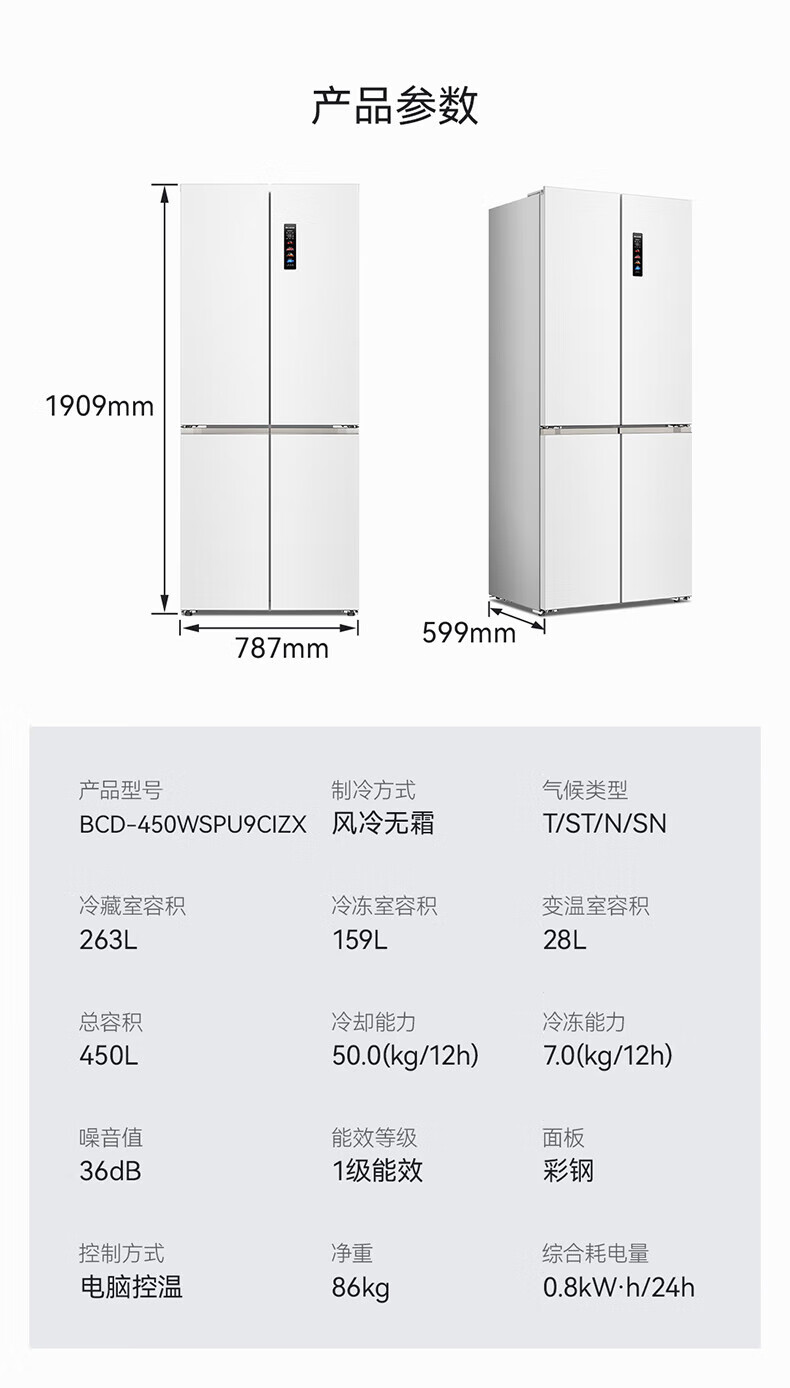MeiLing 450-liter cross-door refrigerator Beluga dual-cycle dual-system active sterilization and deodorization fully automatic ice making ultra-thin zero-embedded household large capacity 450WSPU9CIZX