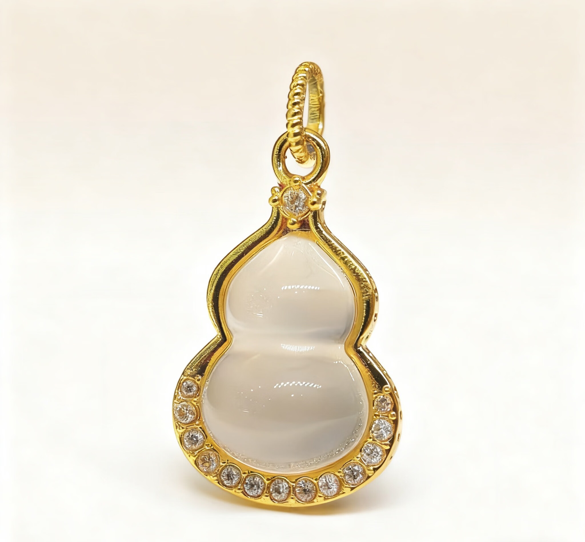 18K gold jade gourd pendant Fulu gourd gift noble elder gift mom birthday gift for girlfriend yellow chalcedony gourd