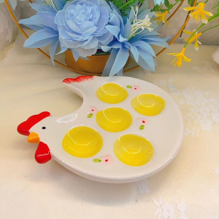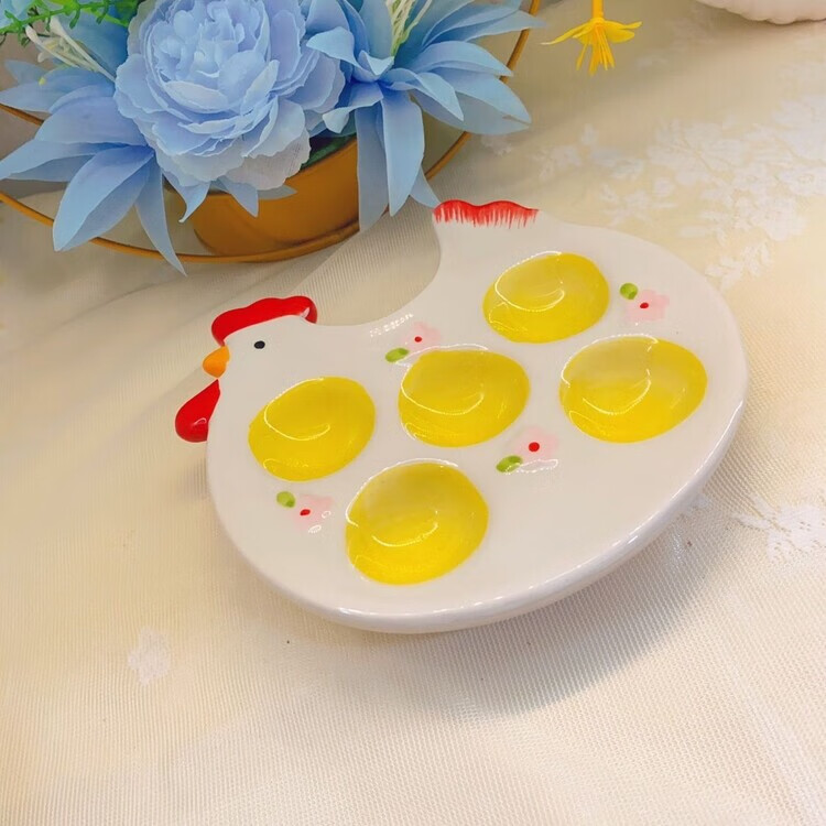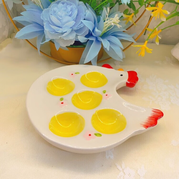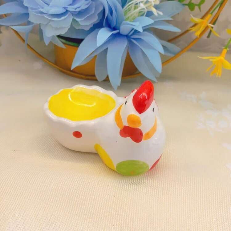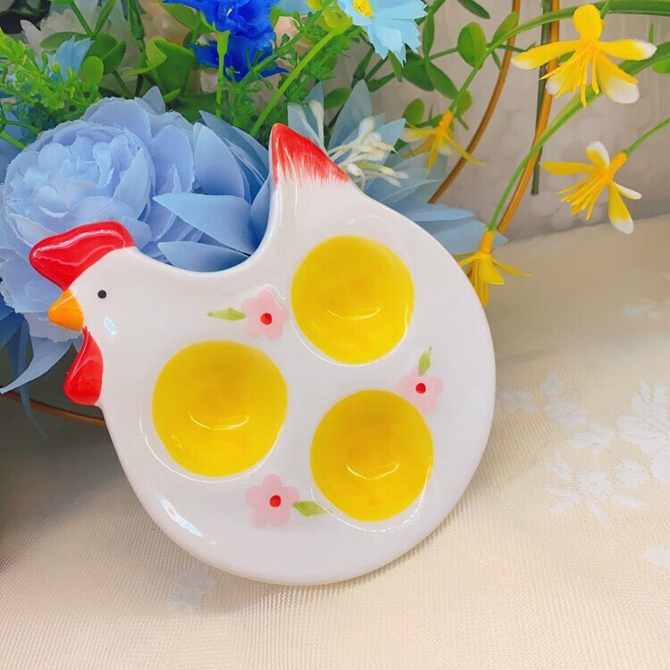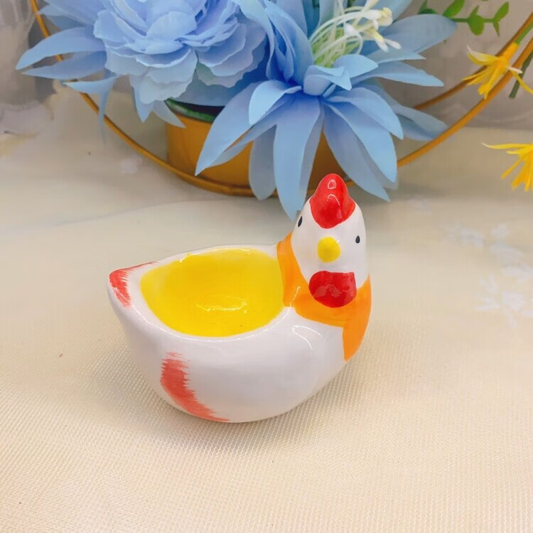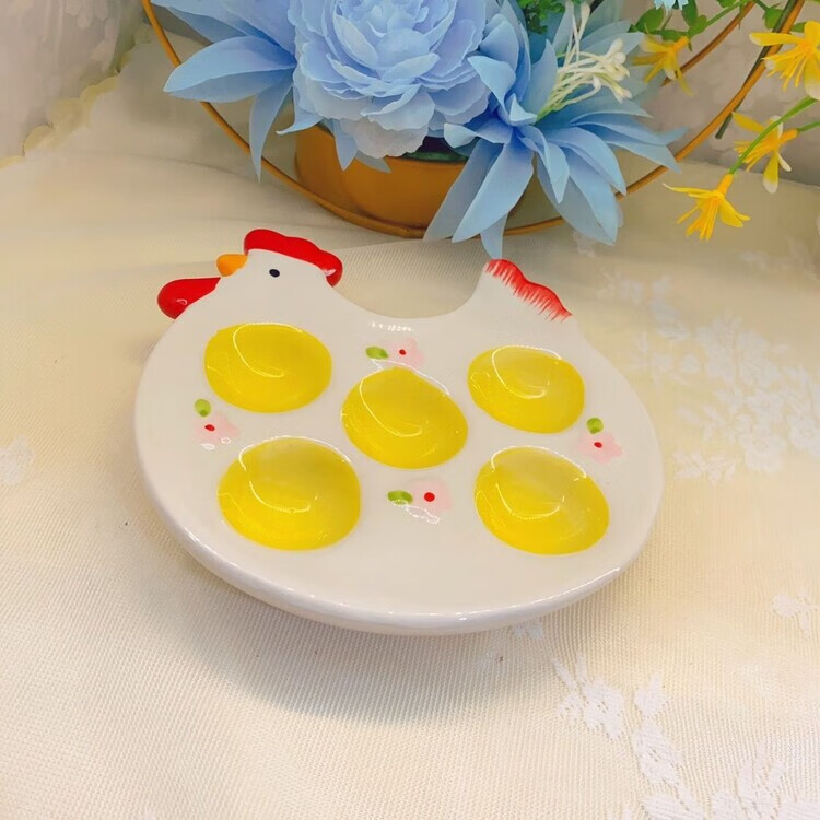 Raft core egg tray creative ceramic beauty egg rack creative ornaments storage tray kitchen table utensils egg cup ritual chicken style one yellow
