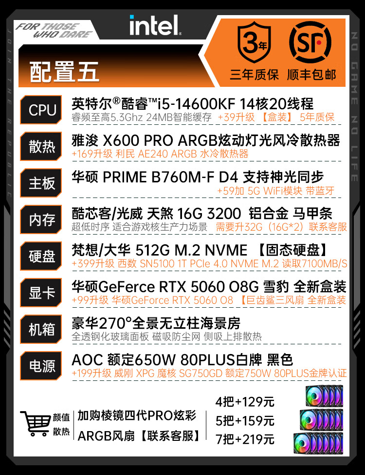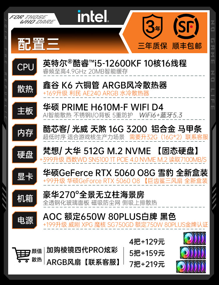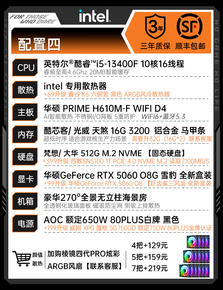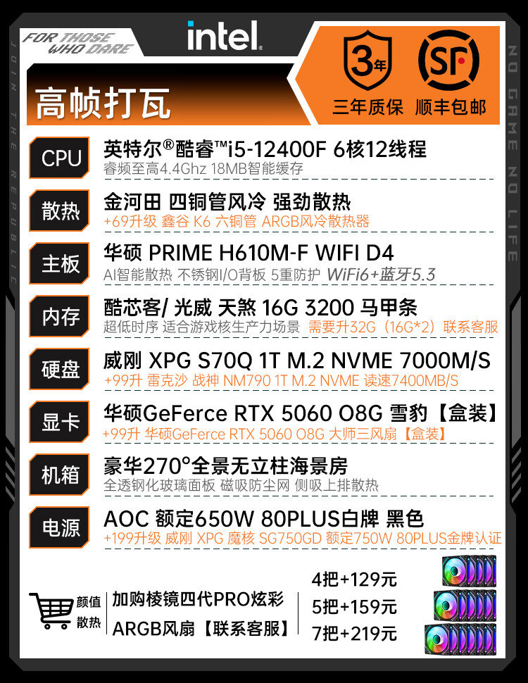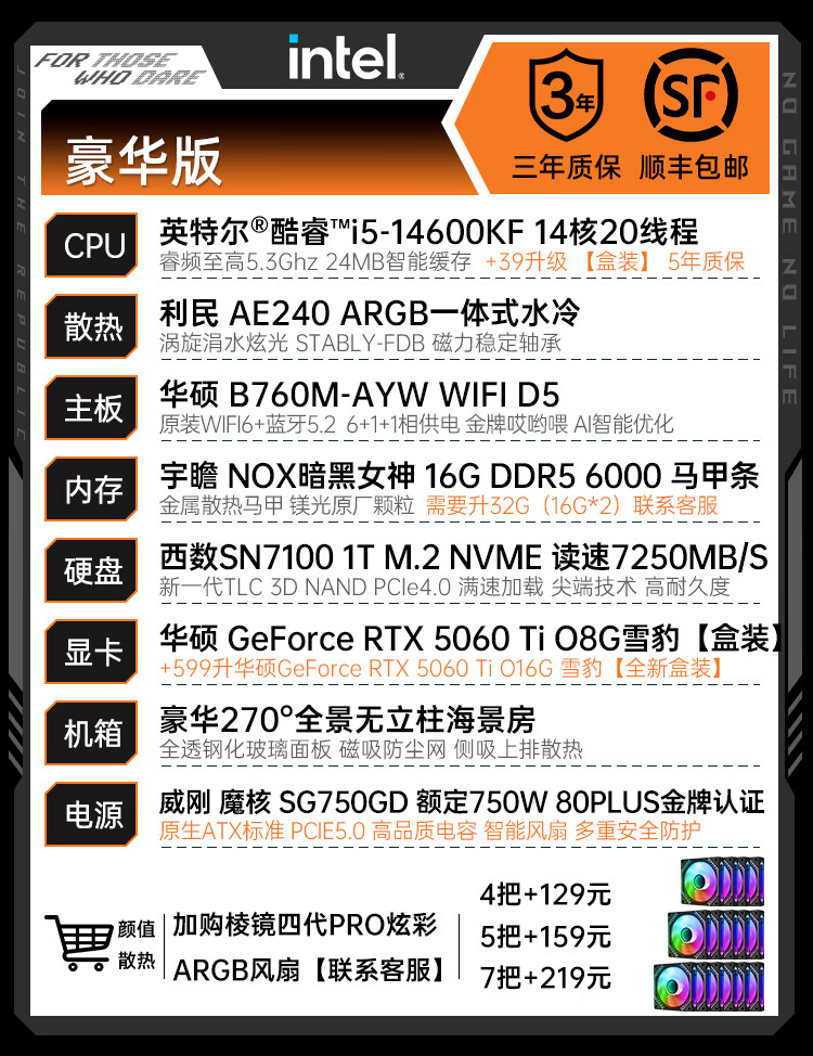 ASUS RTX 5060 Ti/5060 host I5 14600KF assembled computer host e-sports game console full set of desktop DIY complete machine delta family barrel sea view room i5 12600KF + ASUS RTX 5060 configuration three