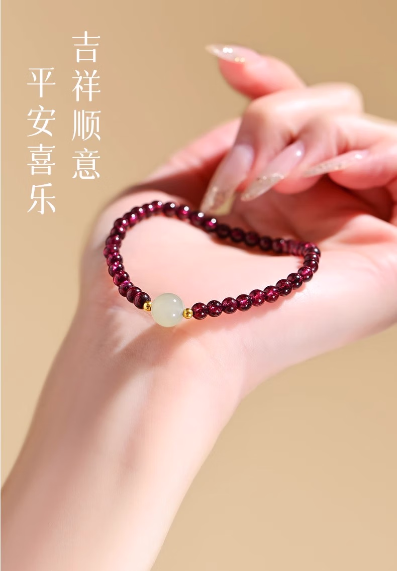 Cute Fox Yuan Purple Teeth Black Garnet Bracelet Women's Crystal Bracelet as a Gift for Girlfriend Jewelry Garnet 6mm Bead Diameter