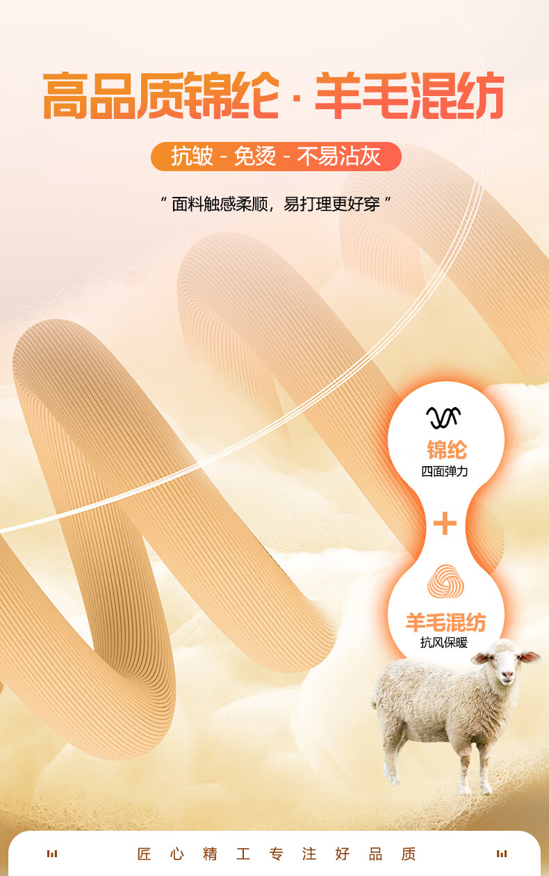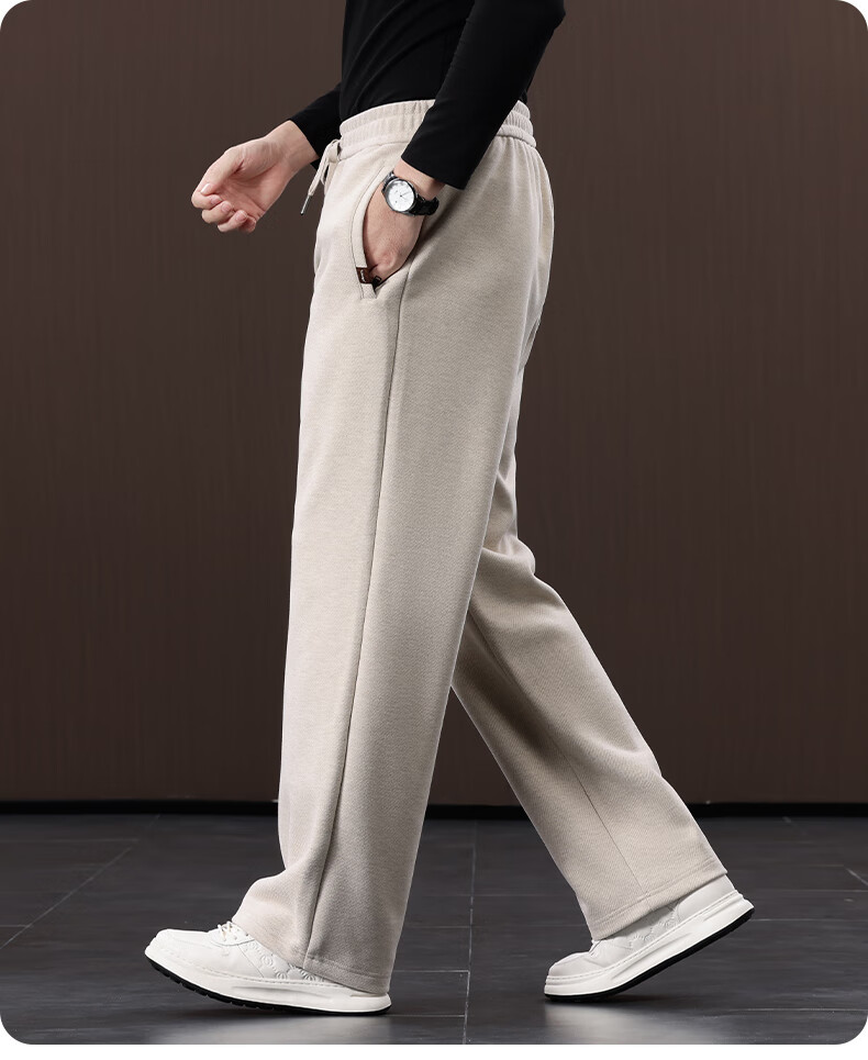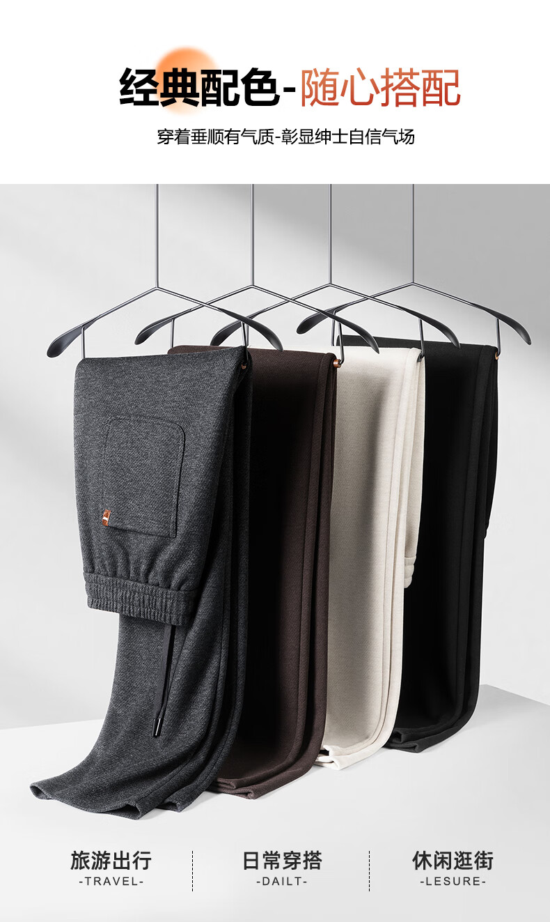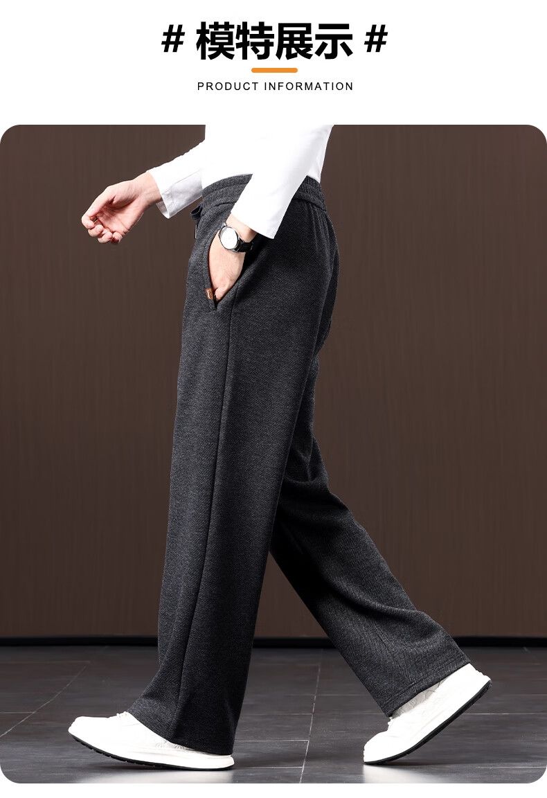 Luo Meng high-end wool casual pants men's loose wide-leg sports pants middle-aged dad woolen pants straight autumn and winter style Khaki high-end wool-autumn and winter style M (110-130Jin Jin equals 0.5 kg)