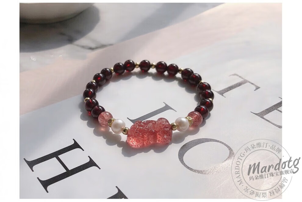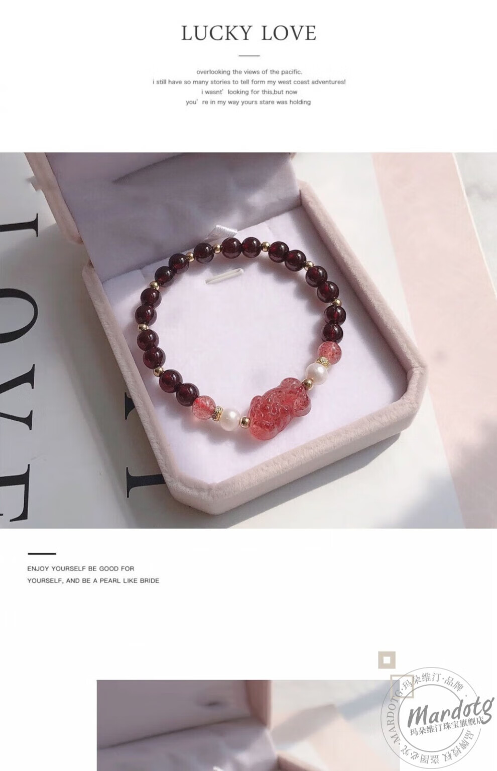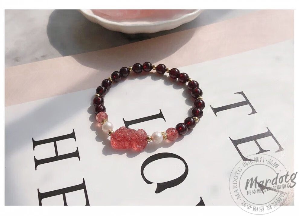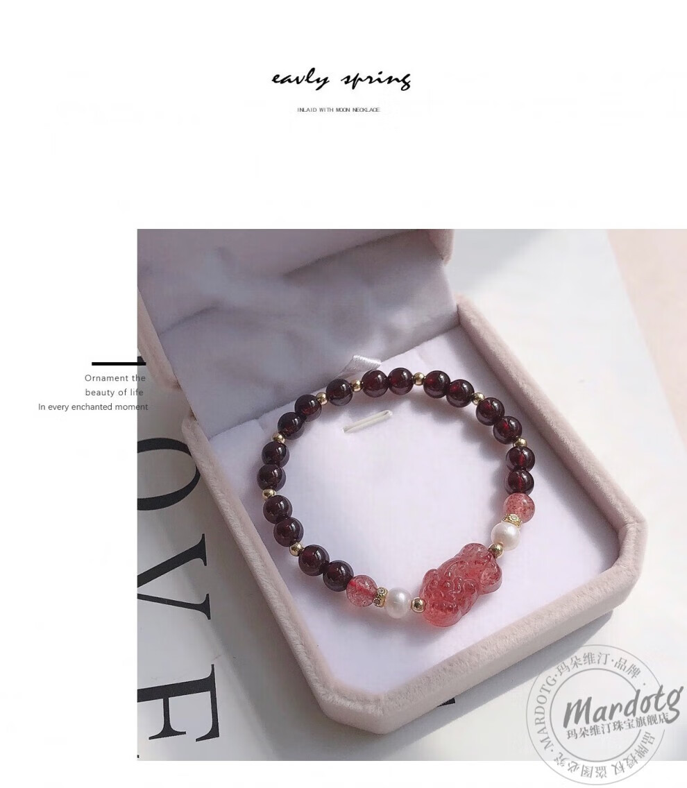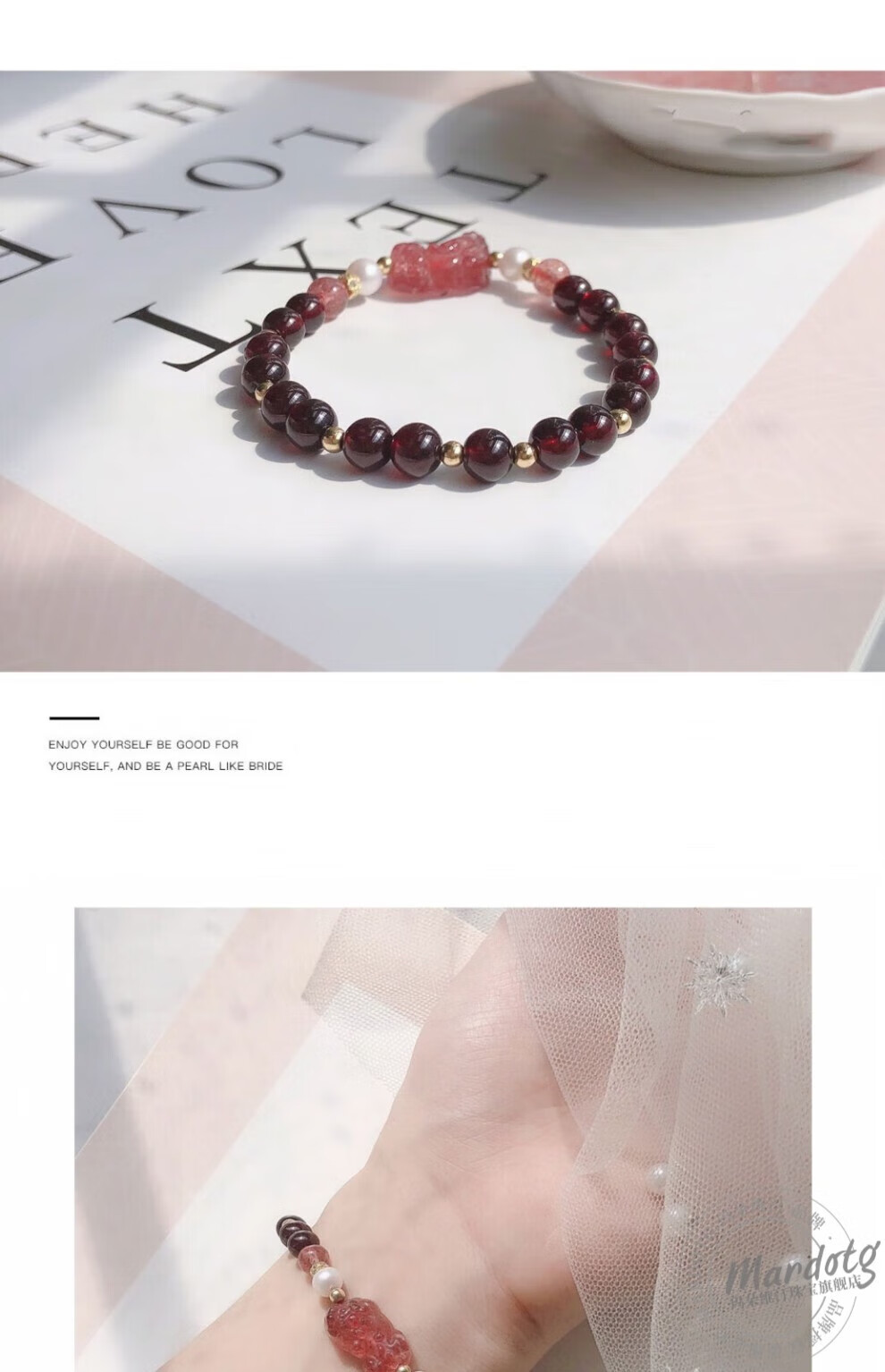 Cute Fox Yuan Burgundy Garnet Bracelet for Women Strawberry Crystal Pixiu Crystal Bracelet for Gift 6