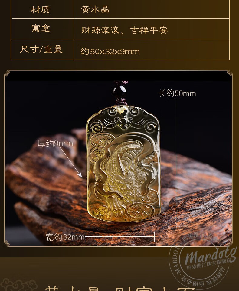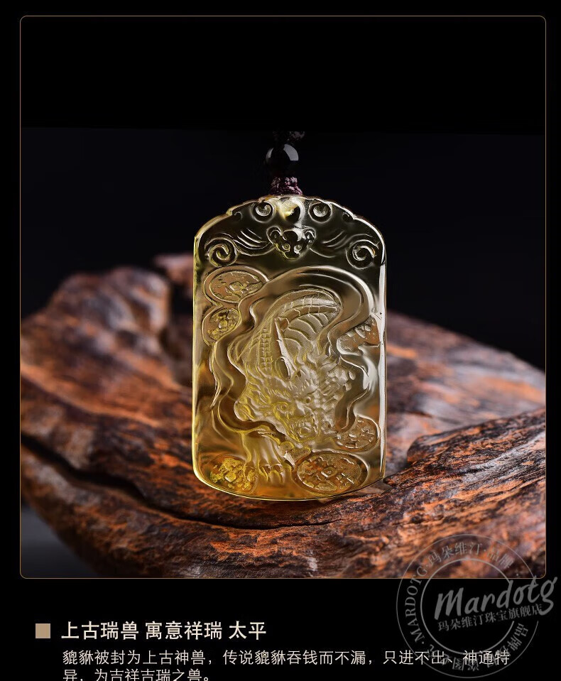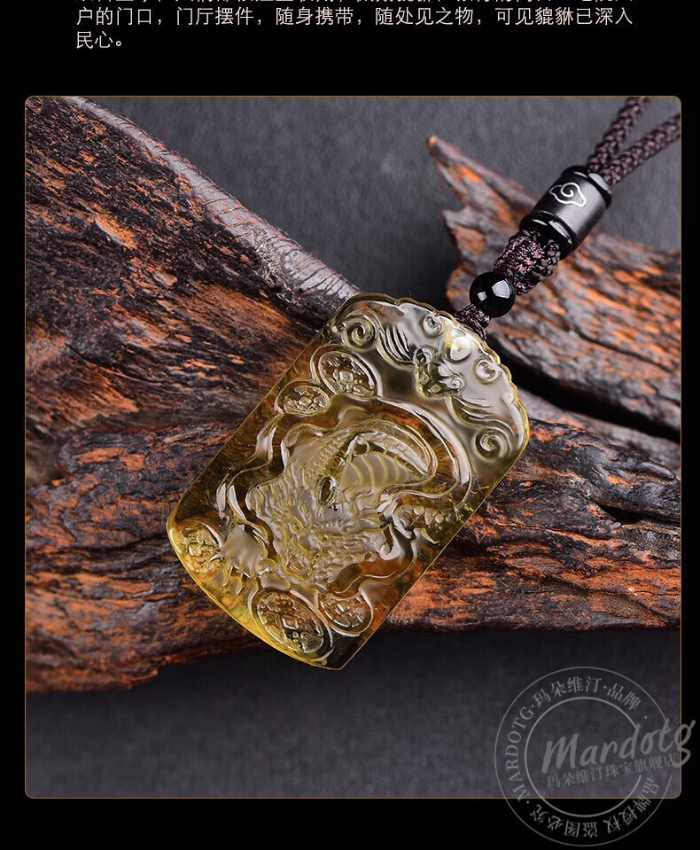 Cute Fox Edge Citrine Pixiu Pendant Wu Shi Brand Amulet Pendant Wealth Pixiu Crystal Necklace for Gifts Crystal Necklace for Gifts