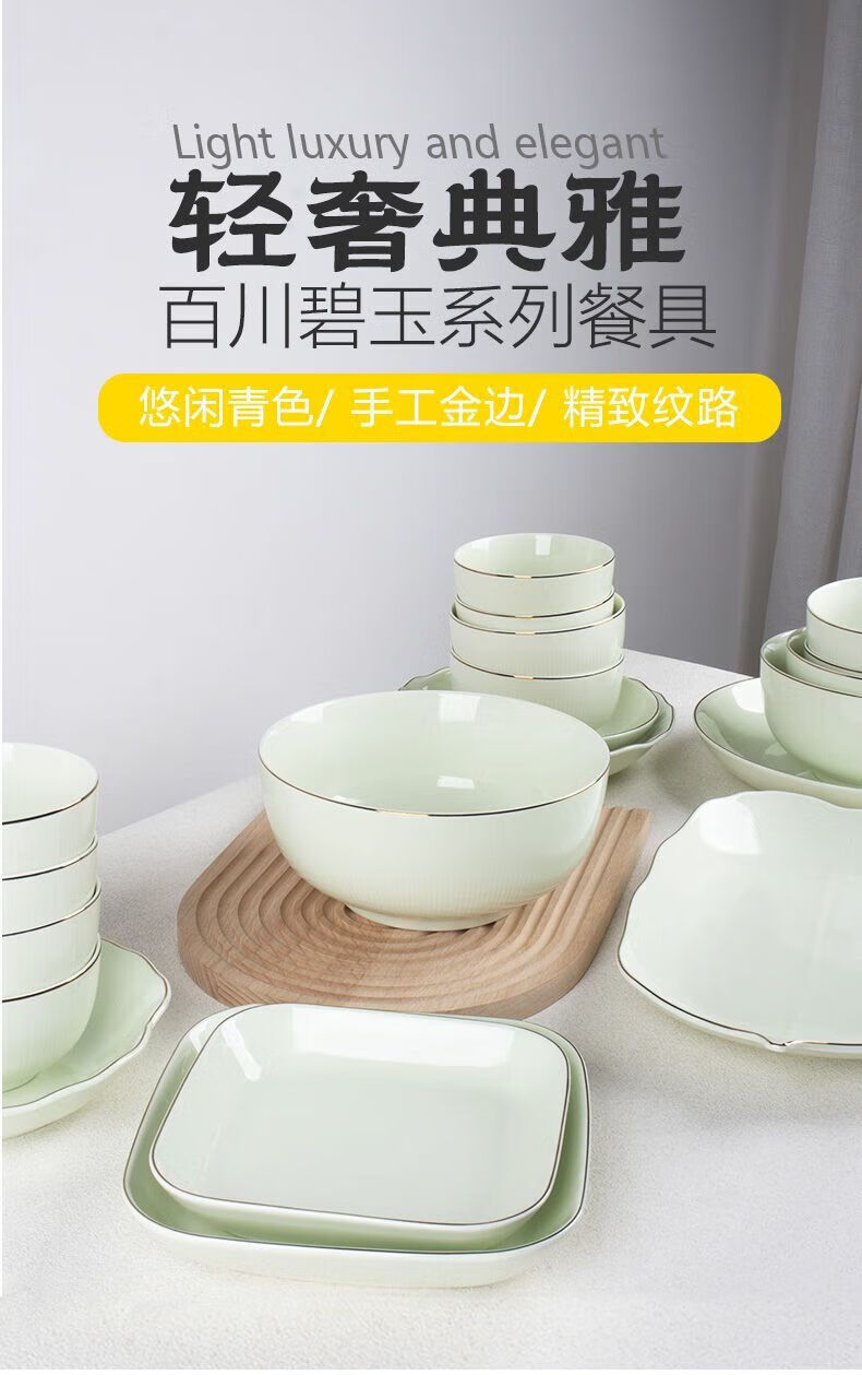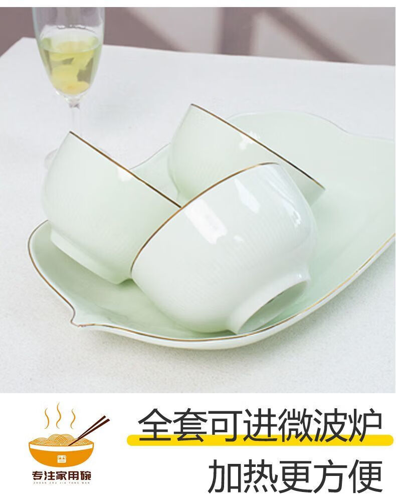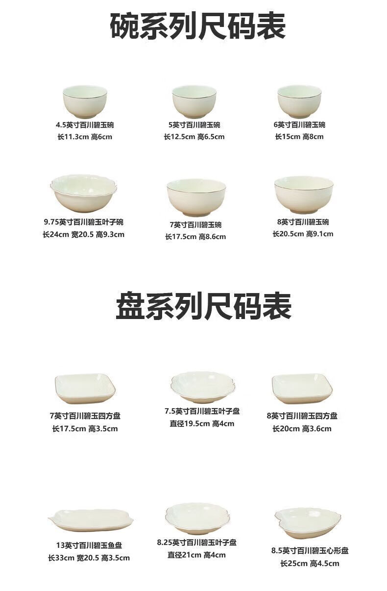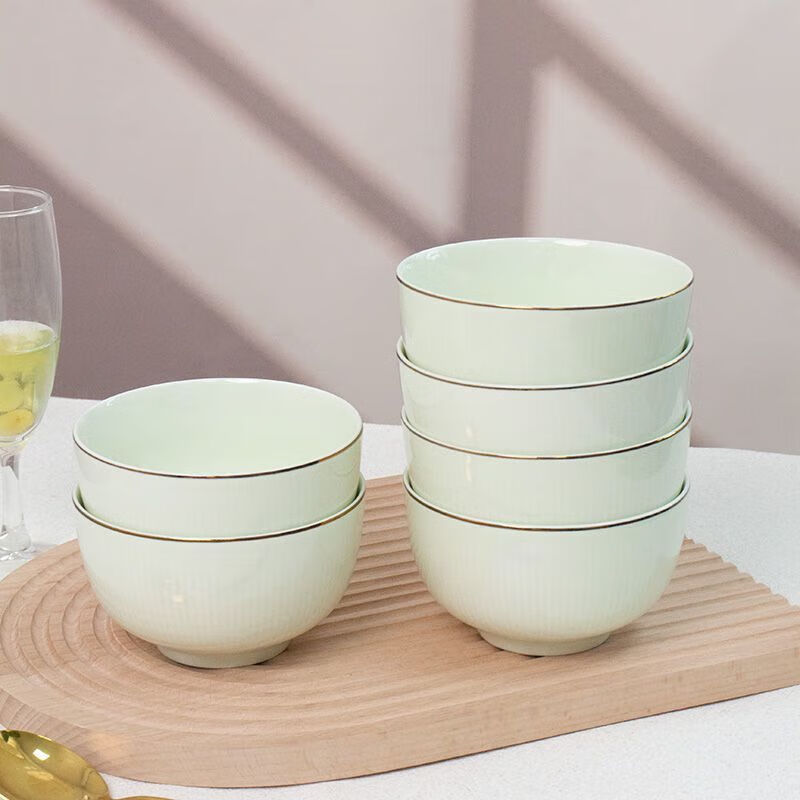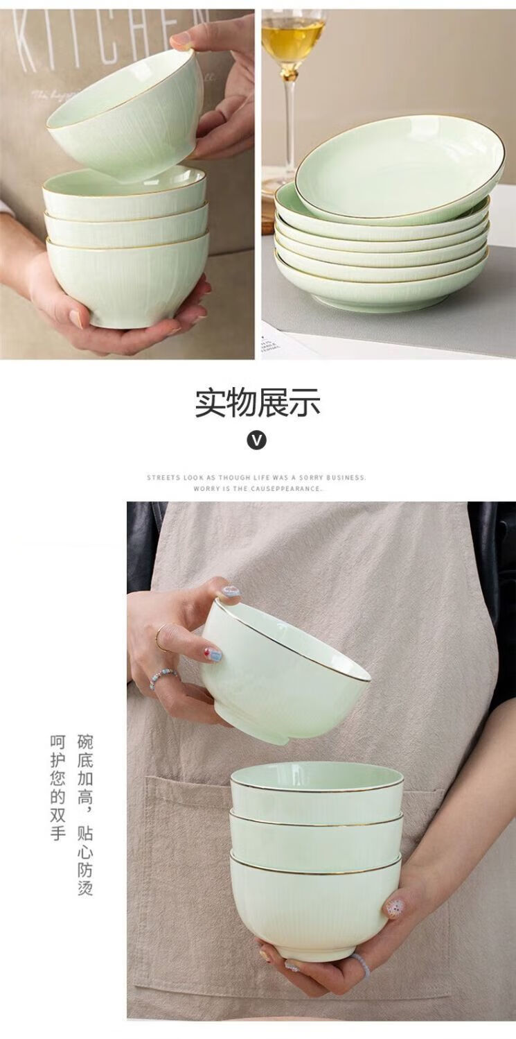 Meikejie ceramic bowl household Baichuan Jasper new single light luxury gold-rimmed tableware noodle bowl dish bowl plate rice bowl simple Baichuan Jasper 5-inch bowl 10 pieces