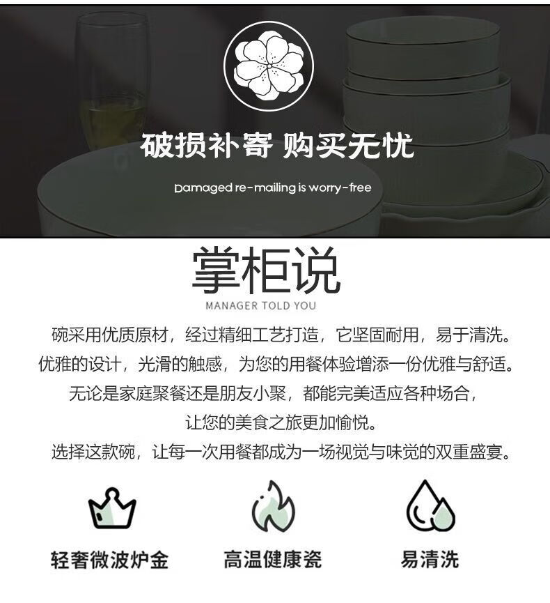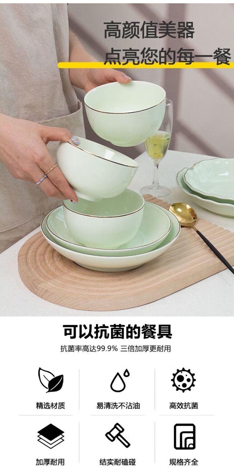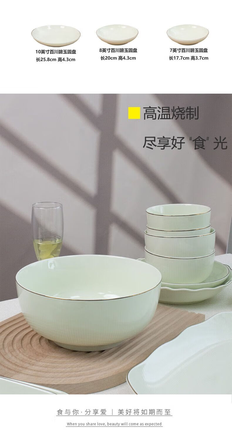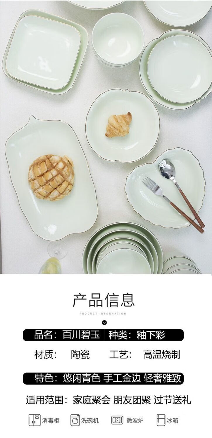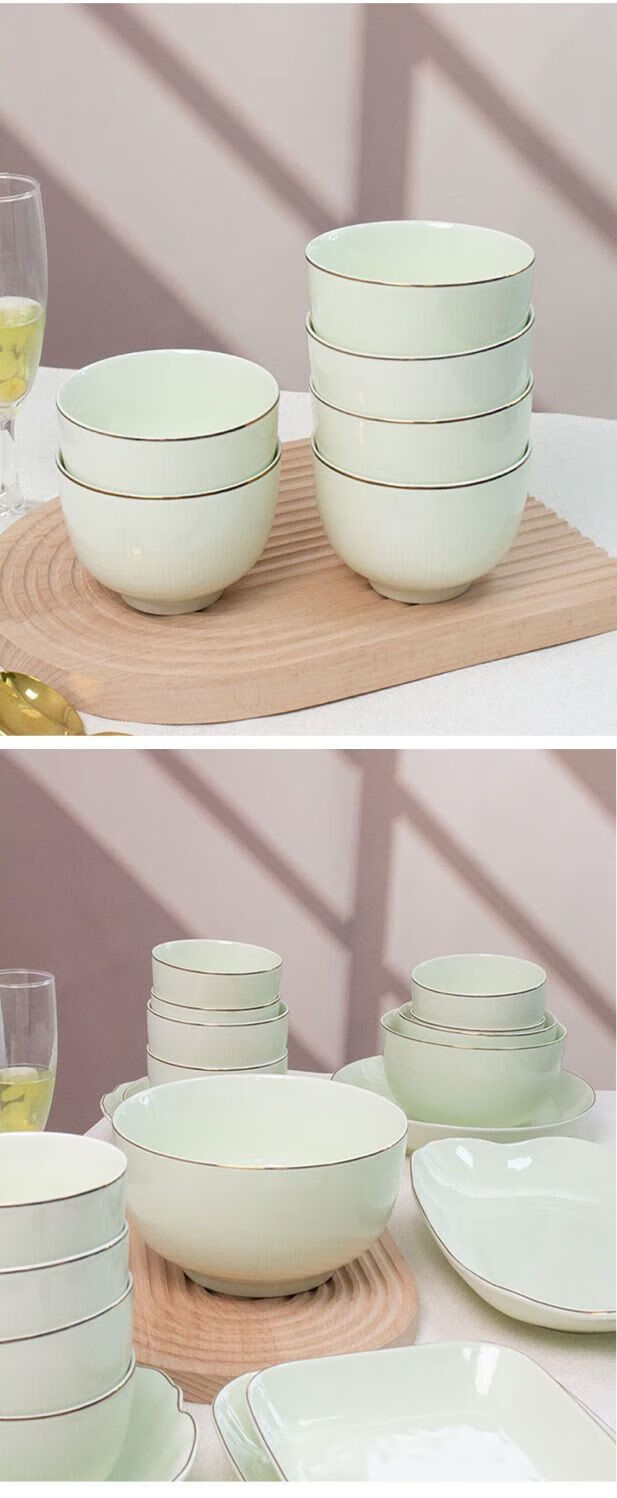 Meikejie ceramic bowl household Baichuan Jasper new single light luxury gold-rimmed tableware noodle bowl dish bowl plate rice bowl simple Baichuan Jasper 5-inch bowl 10 pieces