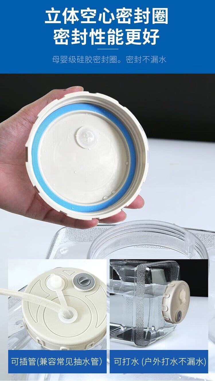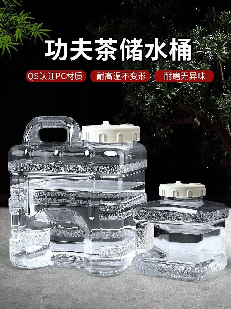 Fat Donglai's same style German imported quality Kung Fu tea table pure water bucket empty bucket special mineral water bucket outdoor water storage bucket food 15 liters transparent vertical type new timing patented lid one bucket one lid + set accessories carton packaging