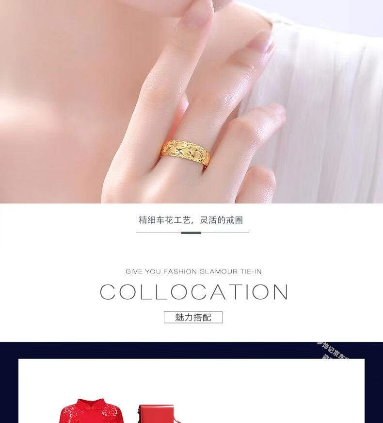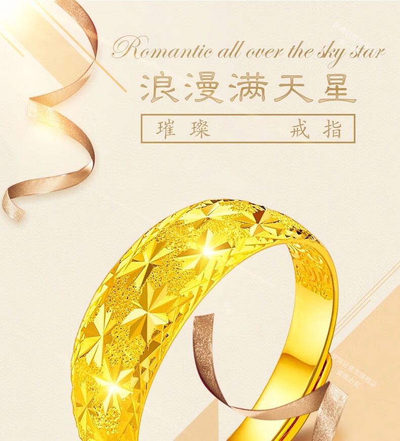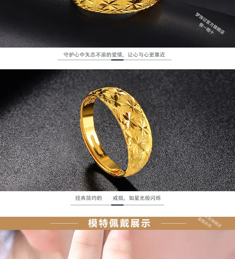 Mengzhuji gold baby's breath ring live mouth 999 pure gold couple ring real gold silver-covered ring opening gift for girlfriend Width 12mm - about 9 grams - gold weight 1.1g