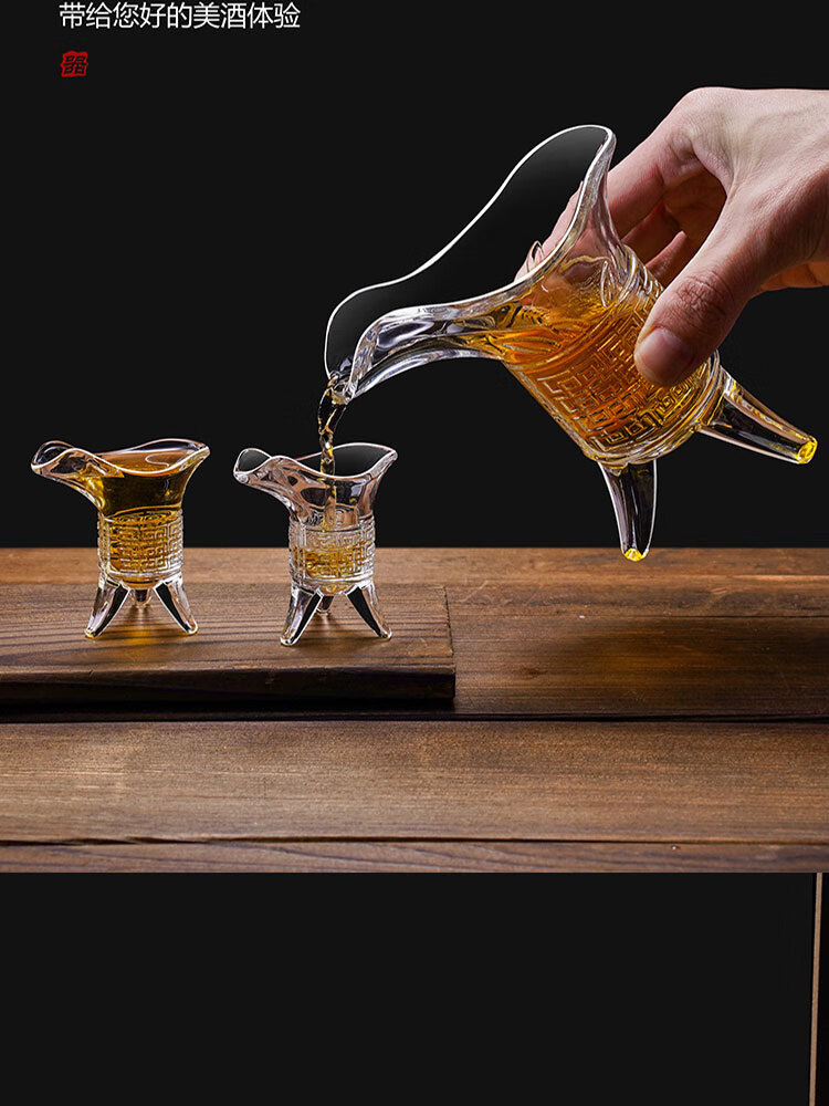 Fantasy, the King of Guanzhong is here, glass imperial cup, creative antique cup, ancient three-legged cup, milk tea drink cup, emperor cup 100ml, frosted gradient black