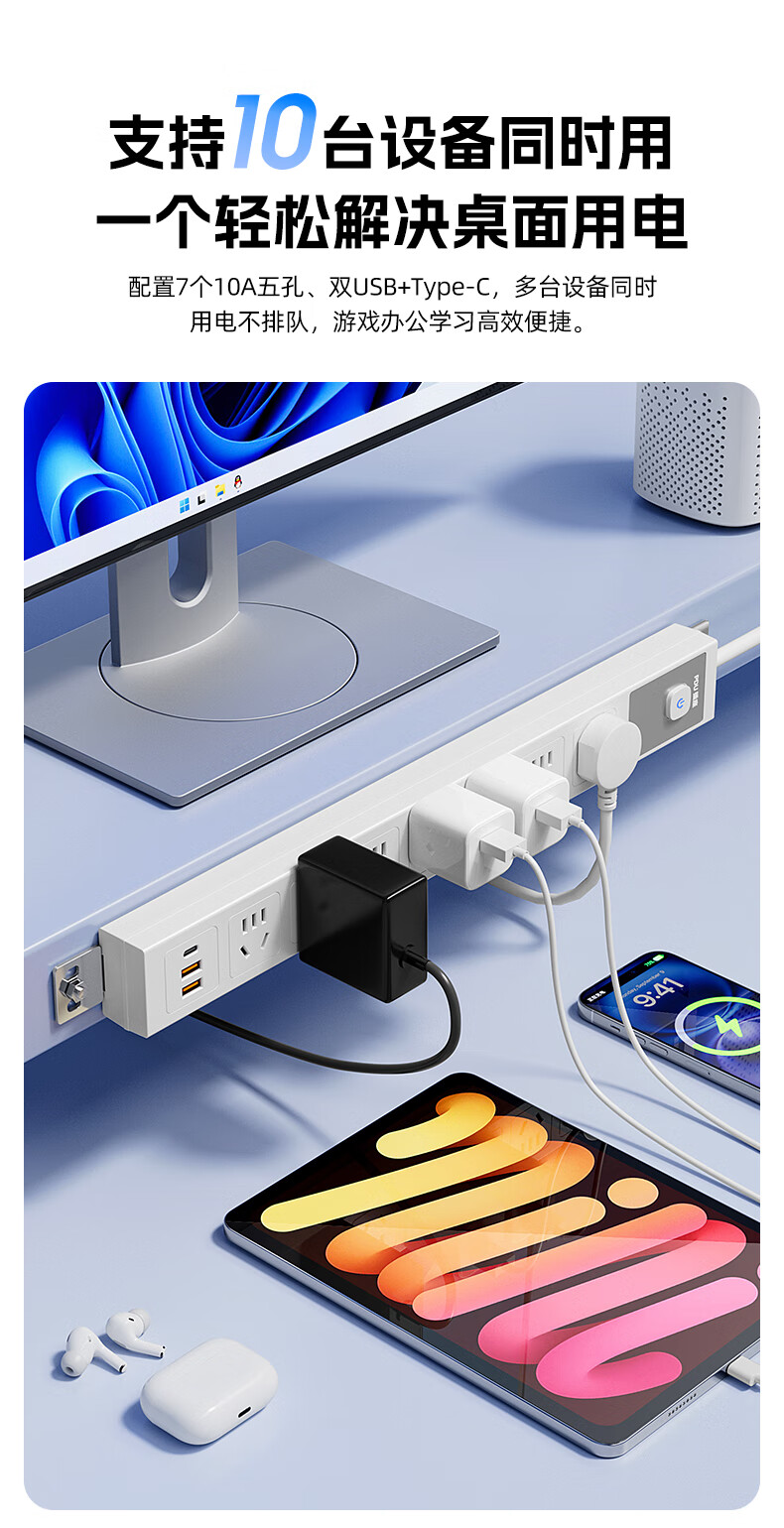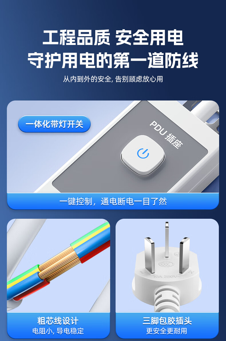 Jingdong Logistics pure copper plug strip office computer desk under desk fixed pdu wireless socket desktop overload protection power strip terminal block Black Warrior丨 Electricity Expert丨 6 Bits丨 High Bearing Capacity丨 Overload Protection Pure Copper Wire 1.8 Meters