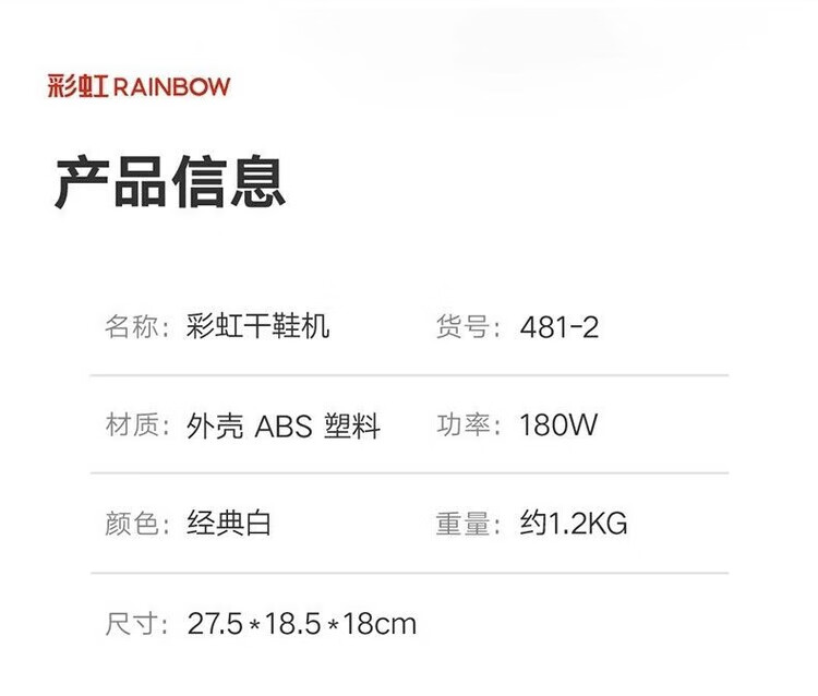 RAINBOW shoe dryer household timed shoe dryer student dormitory shoe warmer artifact dry and wet deodorizing shoe dryer 481-2 classic model power 180w