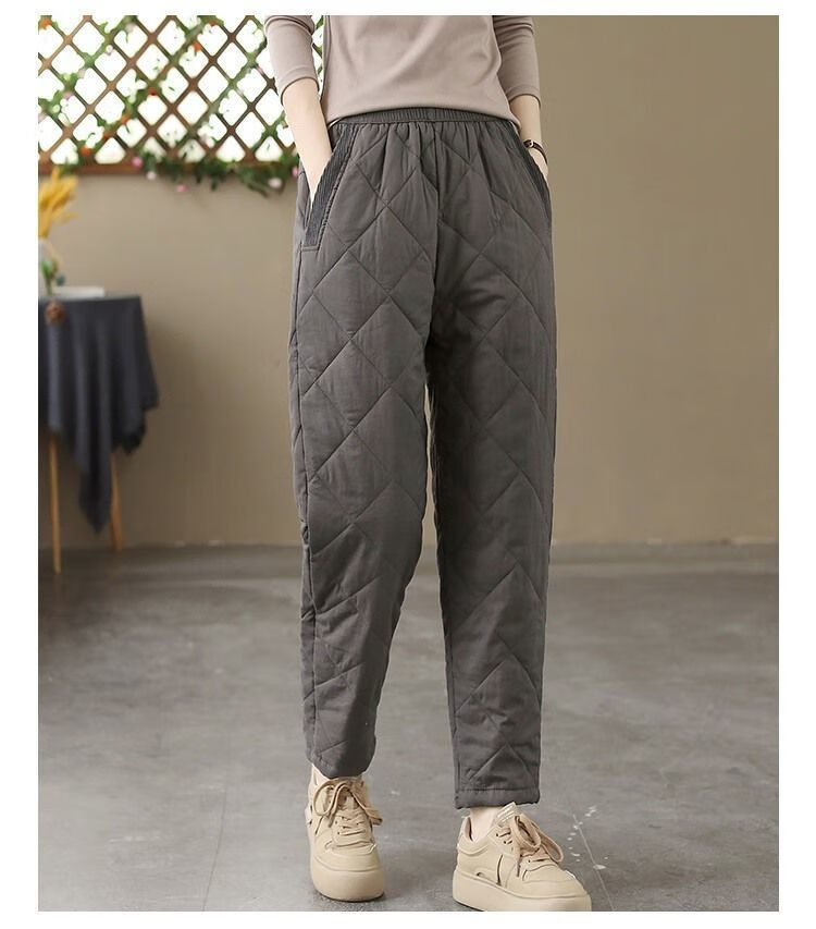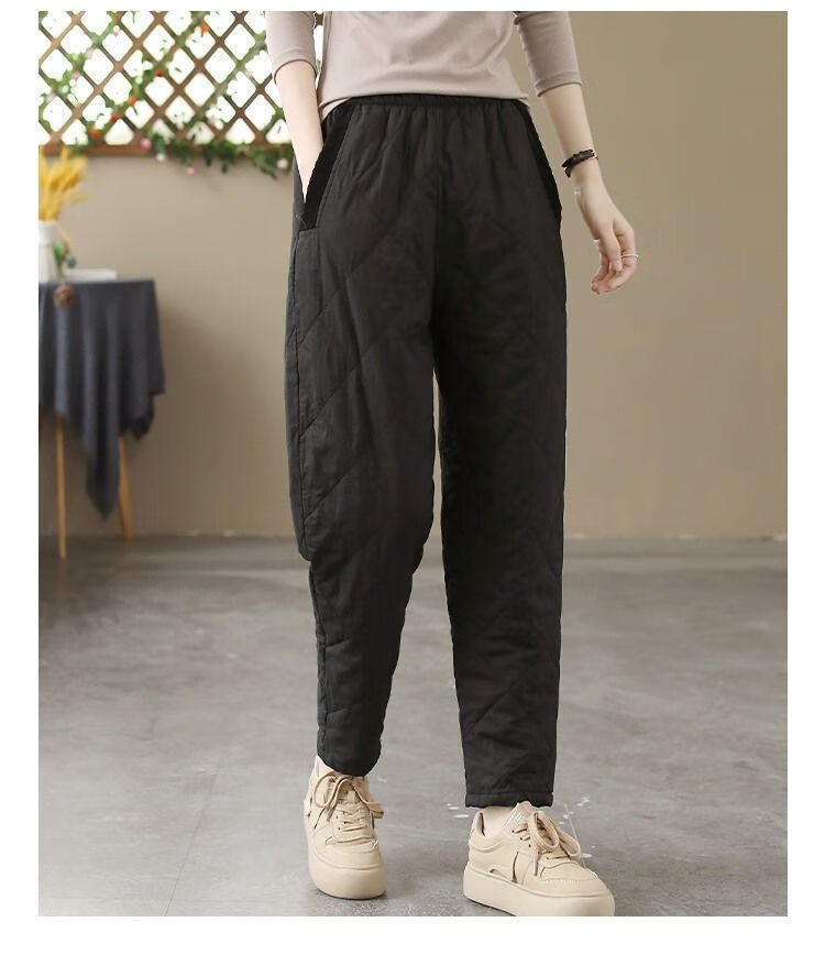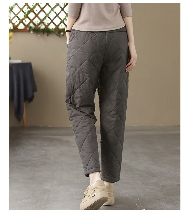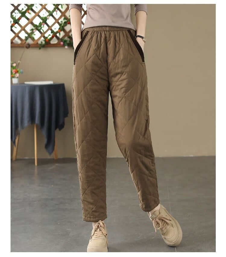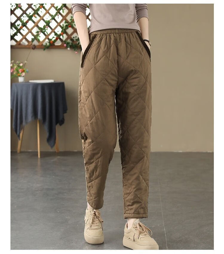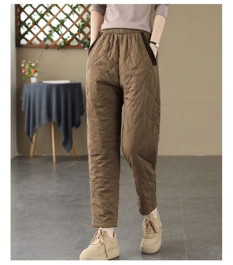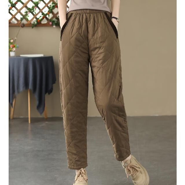 Hengyuanxiang exports big brand thin women's down pants new outer wear winter high-end loose thickened straight cotton pants for women coffee color L recommended 100-115 Jin Jin equals 0.5 kg