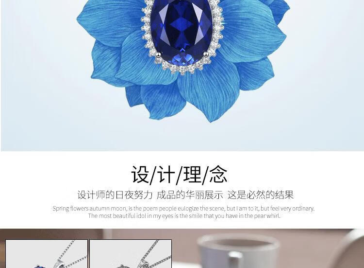 SUEF King Oval Tanzanite Sapphire Necklace Pendant Women's Pendant Clavicle Versatile Colored Stone Does Not Fade White Gold (Main Stone 8x10mm) with Chain 0 Carat