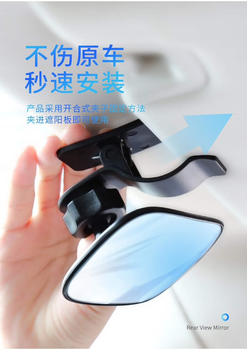 Car wide-view rearview mirror, interior reflector, reversing mirror, auxiliary universal wide-angle curved mirror, baby viewing mirror, sun visor, rearview mirror, sunshade gear installation