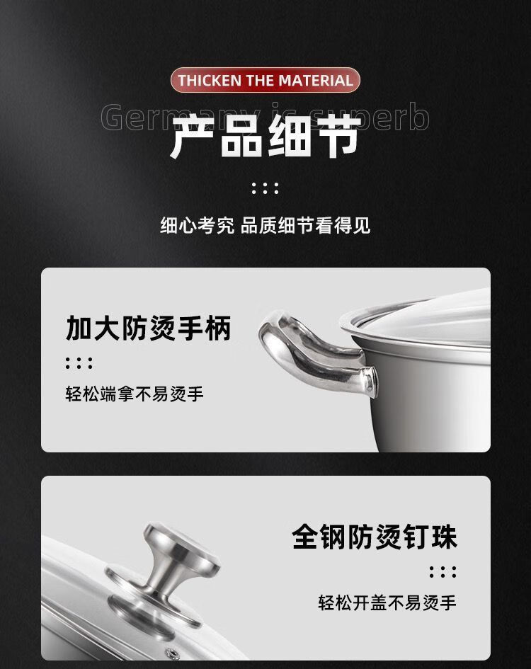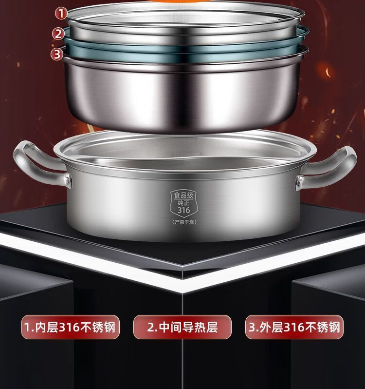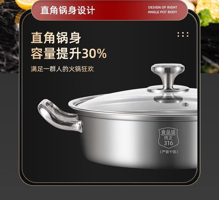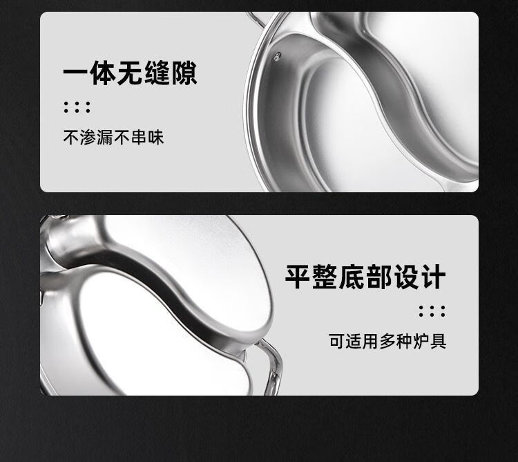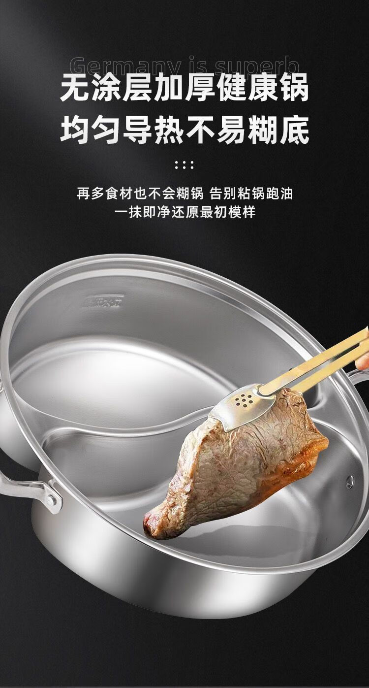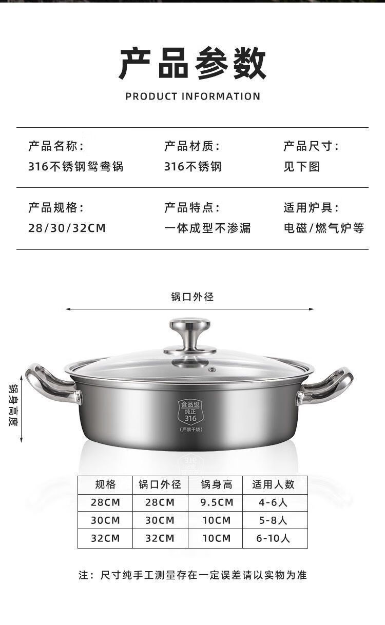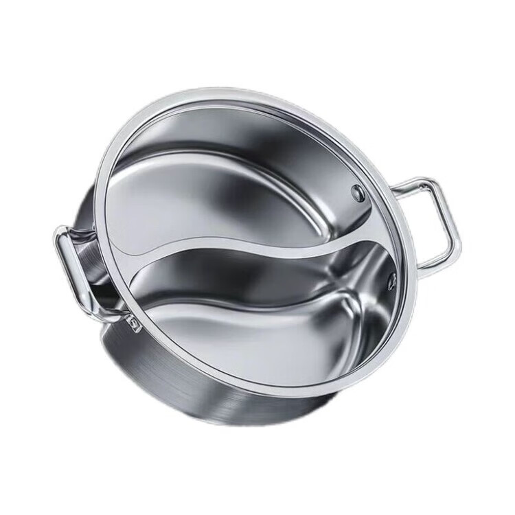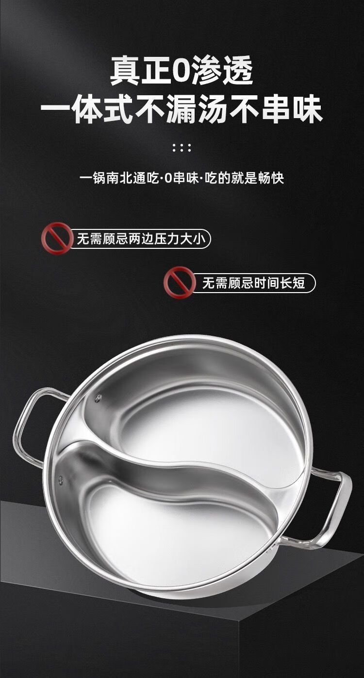 Huamuxi food grade 316 stainless steel mandarin duck pot hot pot shabu-shabu one-piece hot pot induction gas stove 316L antibacterial grade mandarin duck pot 1 inch 32CM with lid huge thick + mandarin duck pot