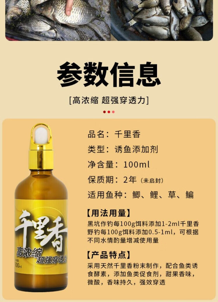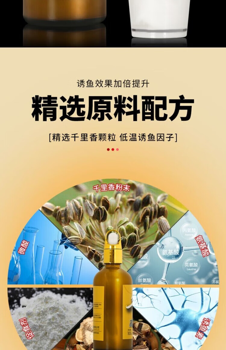 ZKHE enters the sea and flows into the sea. Thousand miles of scented crucian carp. Fruit acid opening fish attractant. Wild fishing black pit spring and summer fishing bait fish. Concentrated version of golden version of Thousand Miles of scented 100ML.