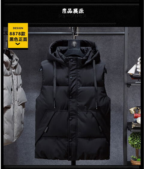 13-year-old boy down cotton vest 12-year-old junior high school student 14-year-old fat boy jacket 15-year-old teenager autumn and winter vest vest black removable hat 4XL 4XL160-180Jin Jin is equal to 0.5 kg