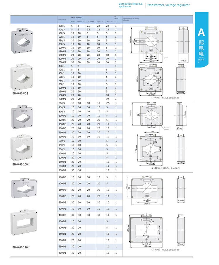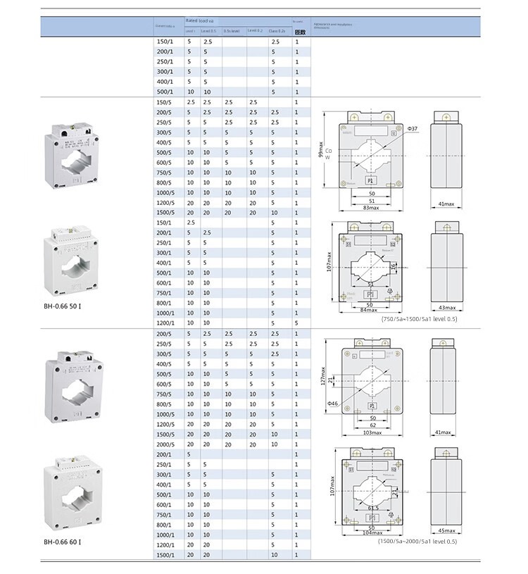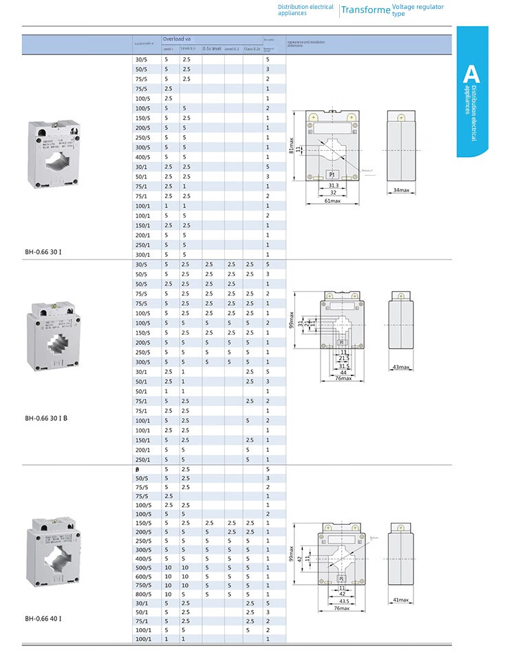 Chint current transformer BH-0.66 aperture 30 100/5 150/5 250/5 300/5 white 0.5 level BH-0.66_30B_50_5A_1 turn_0.5