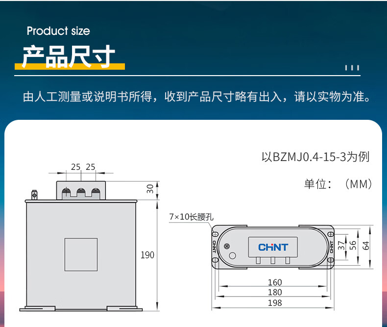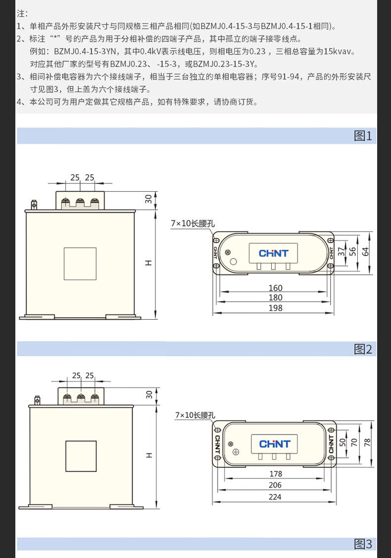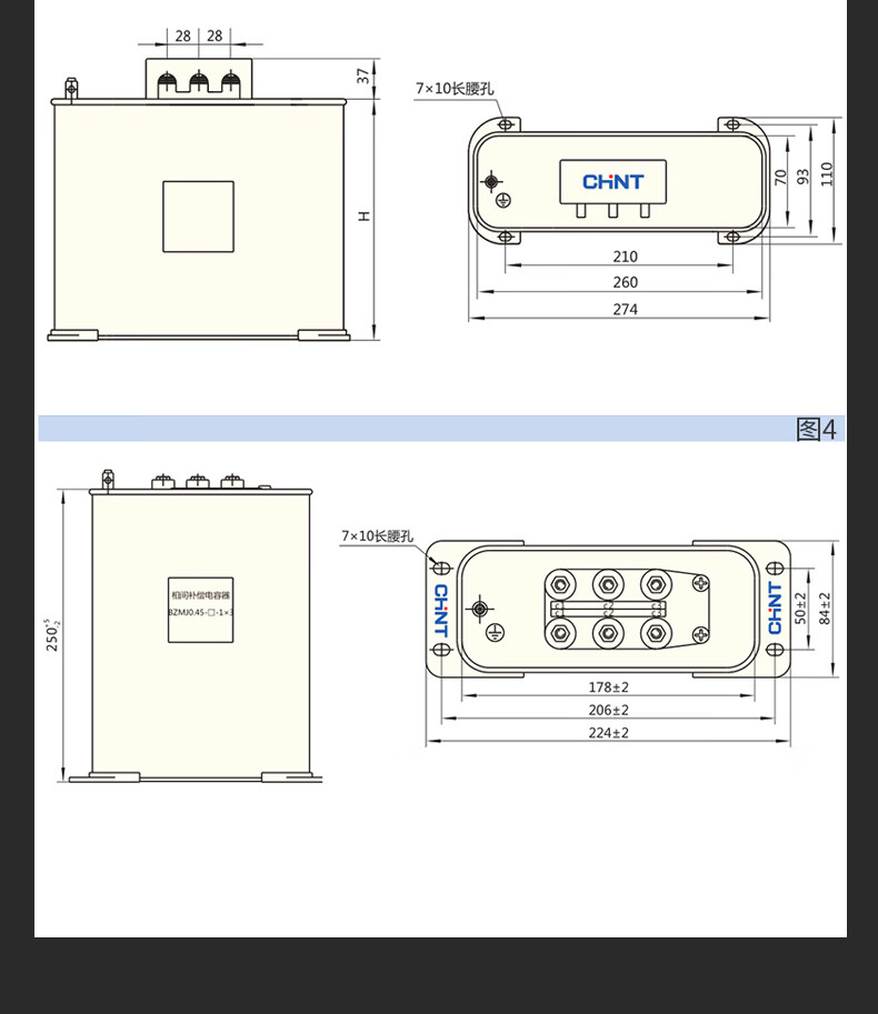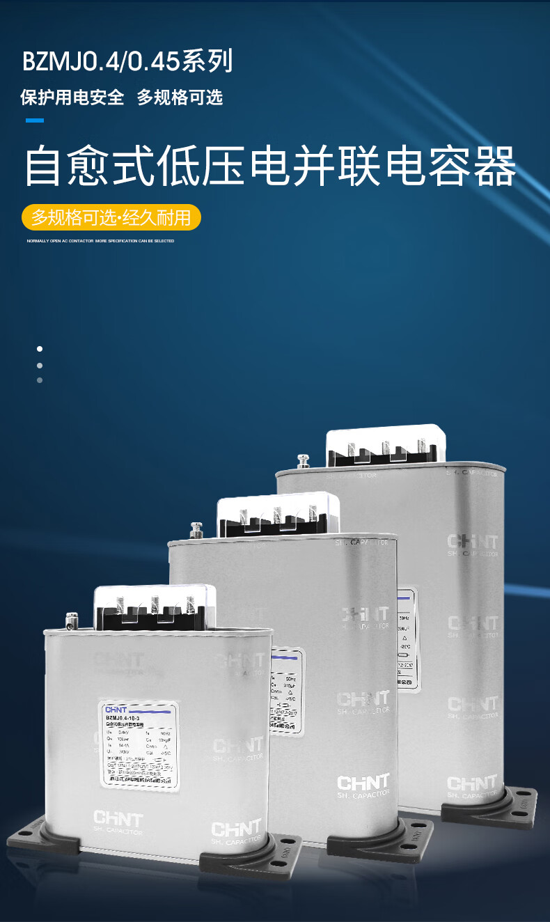 Chint Capacitor BZMJ0.45 0.4 reactive power compensation self-healing low voltage parallel compensator CJ19 contactor BZMJ_0.4-25-3