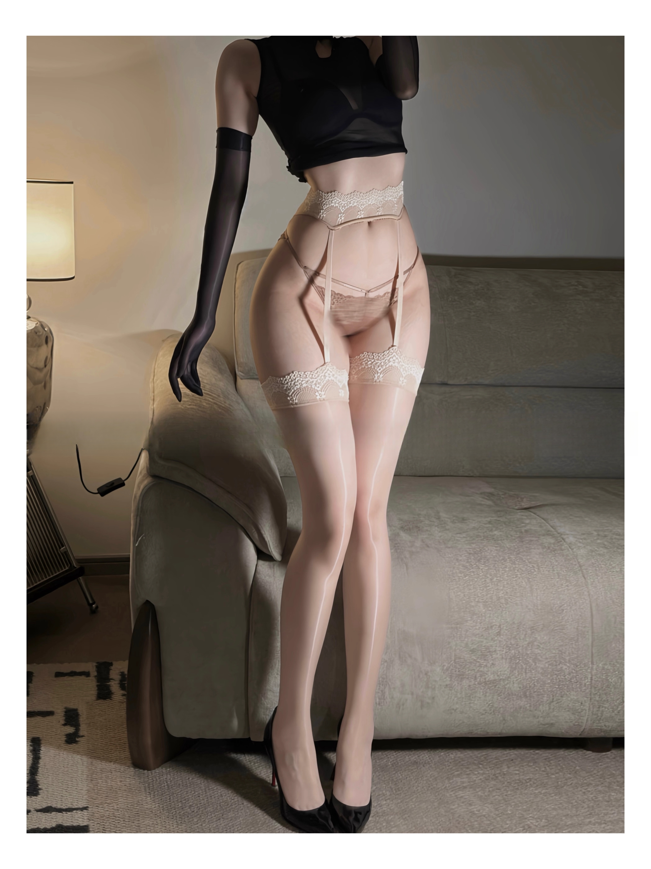 VCICTIOLIA Hot Girl Diary Twilight Aurora Oily Stockings Lace Stockings Sexy Oily Garters for Women Twilight 8D Aurora Black Leg Size < 65cm M (Height 155-180c)