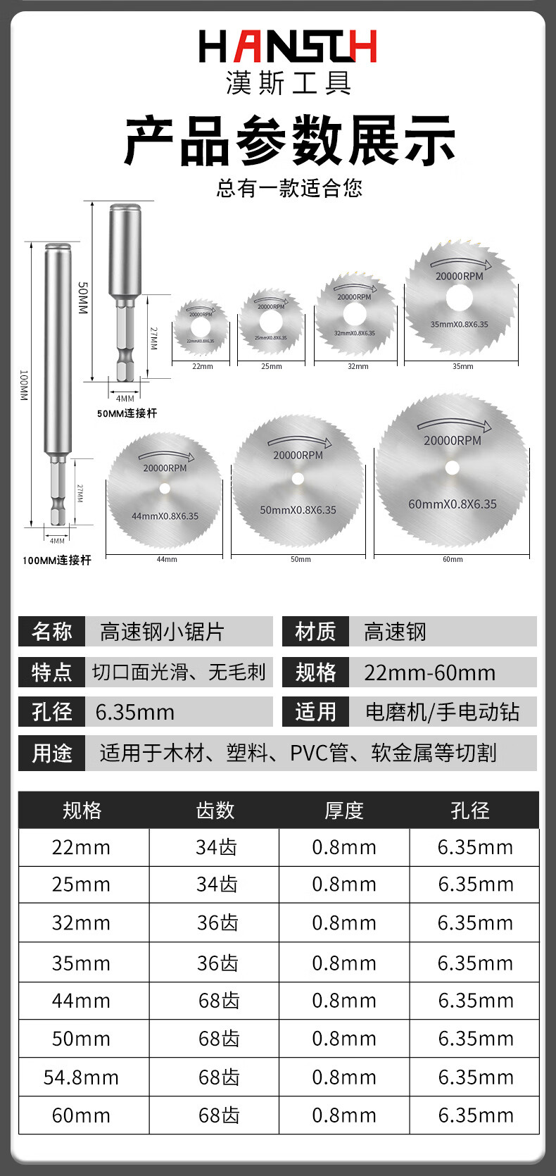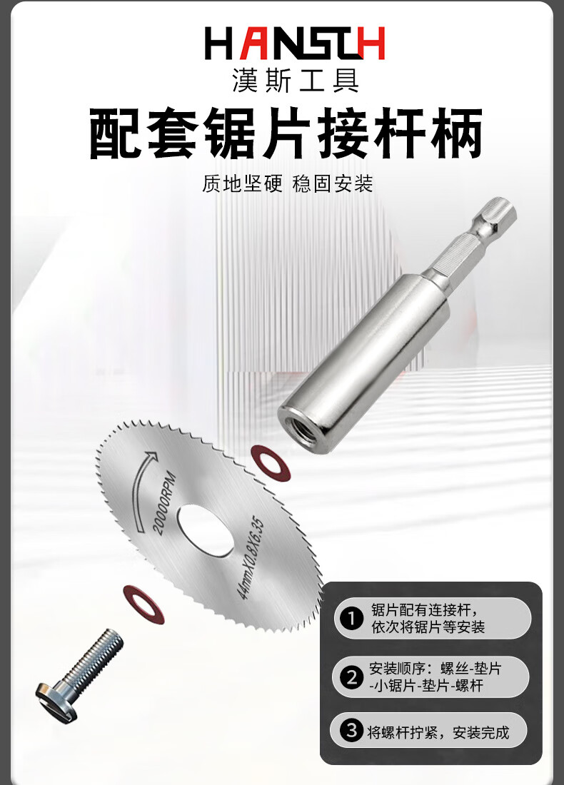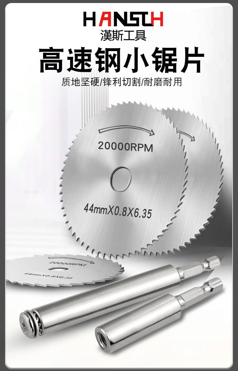 Hans hexagonal handle high-speed steel saw blade electric drill cutting piece plastic acrylic PVC pipe wood in-cut artifact high-speed steel silver sheet 25MM 2 pieces 1 pole -100mm extended connection
