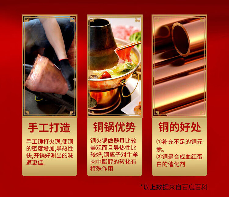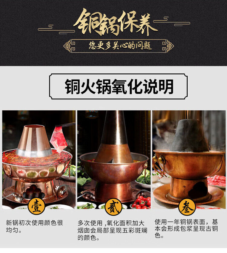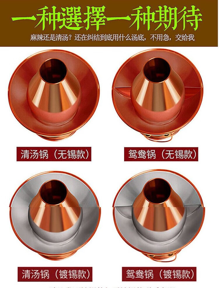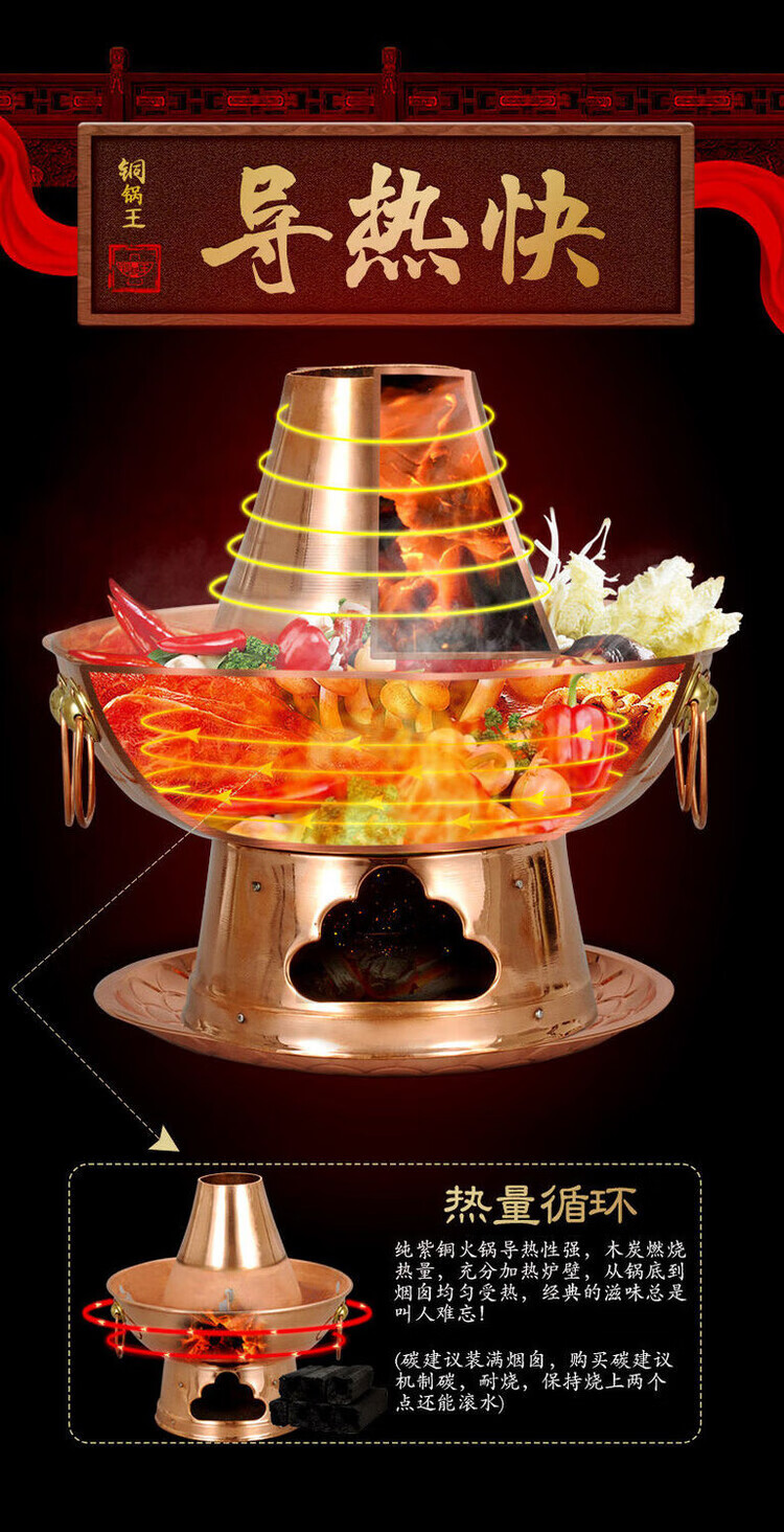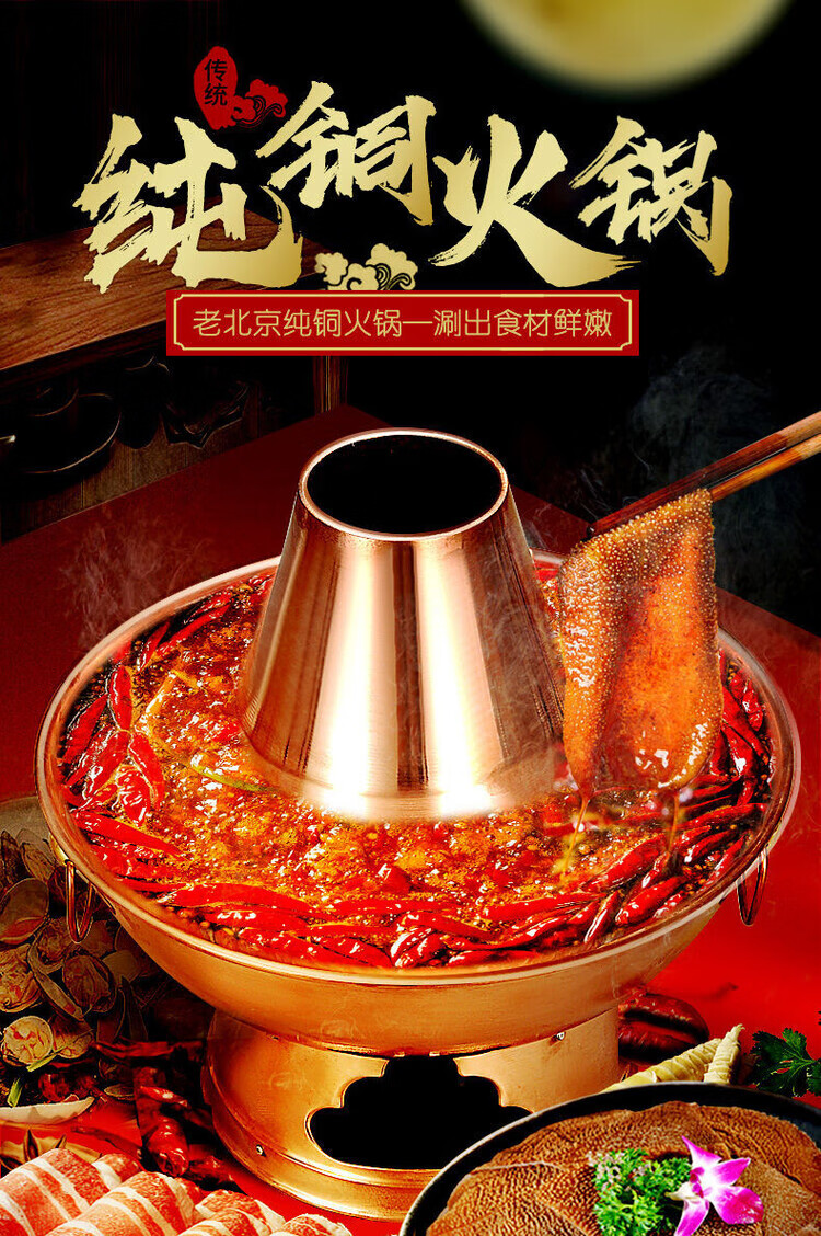 Kamanpai old Beijing pure copper hot pot shabu-shabu meat thick copper thickened handmade charcoal copper pot old-fashioned stove clear soup mandarin duck hot pot clear soup pot original color inside the pot 0 inches 28 cm pure copper thickened version for 1-2 people
