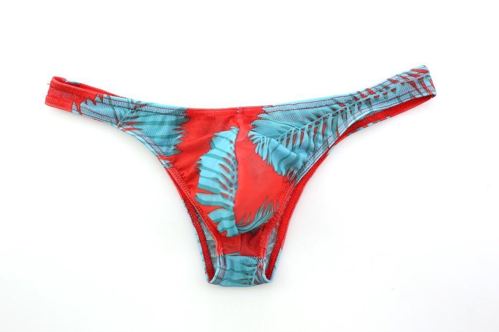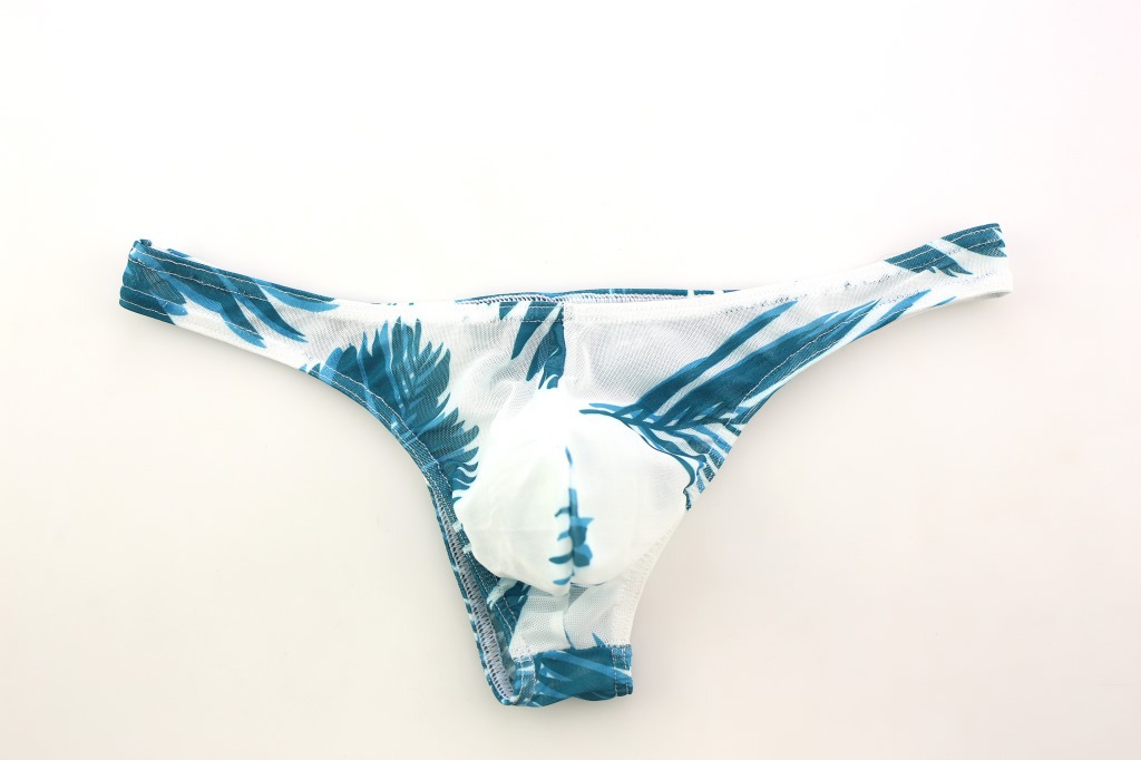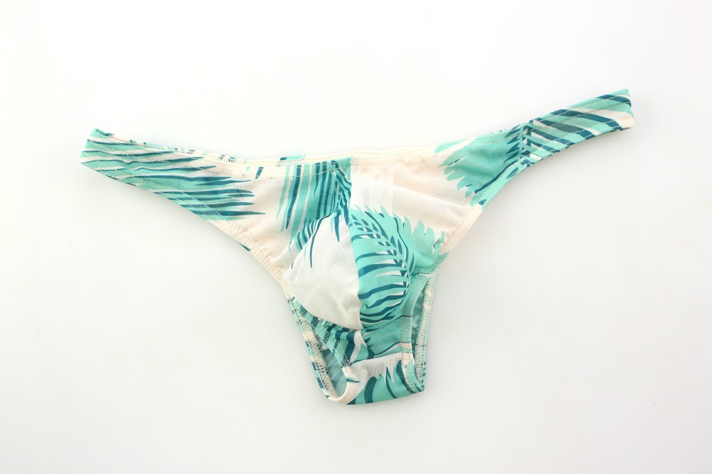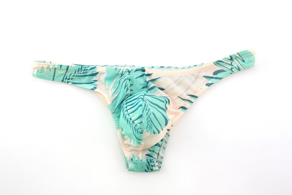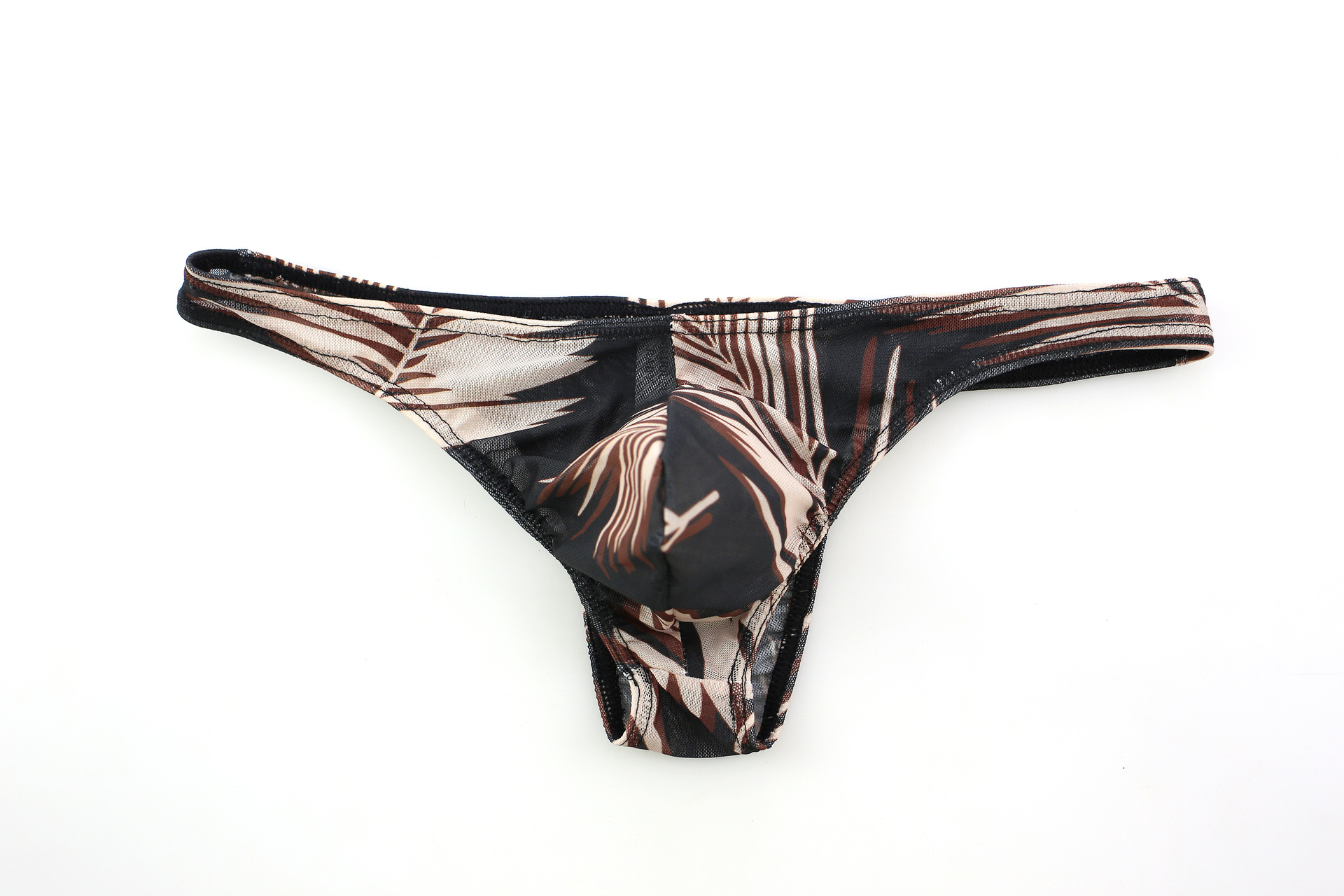 Men's T-string sexy briefs, mesh printed low-waist, open arms, sexy pants for men, U-convex, black, M2 feet-2 feet 3