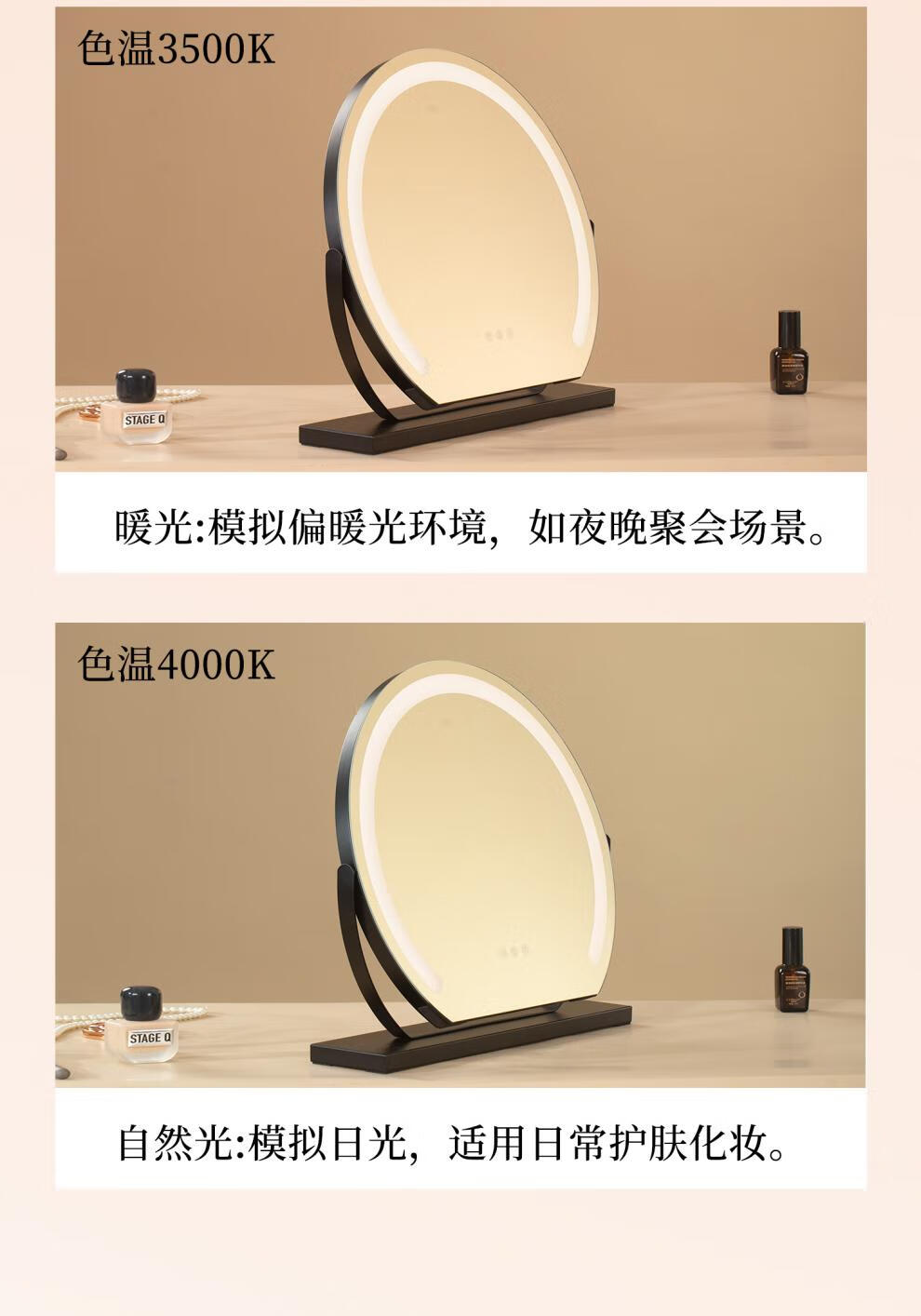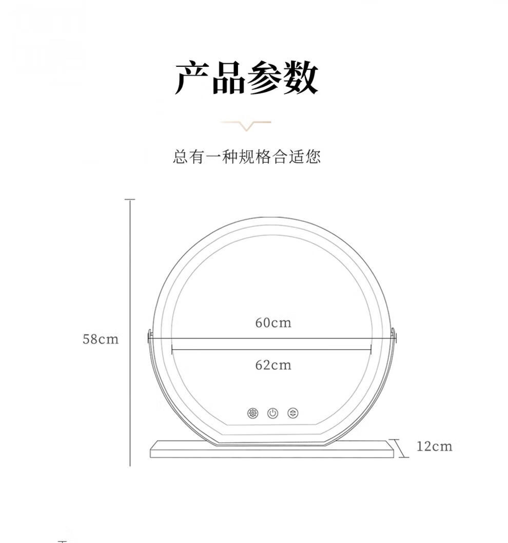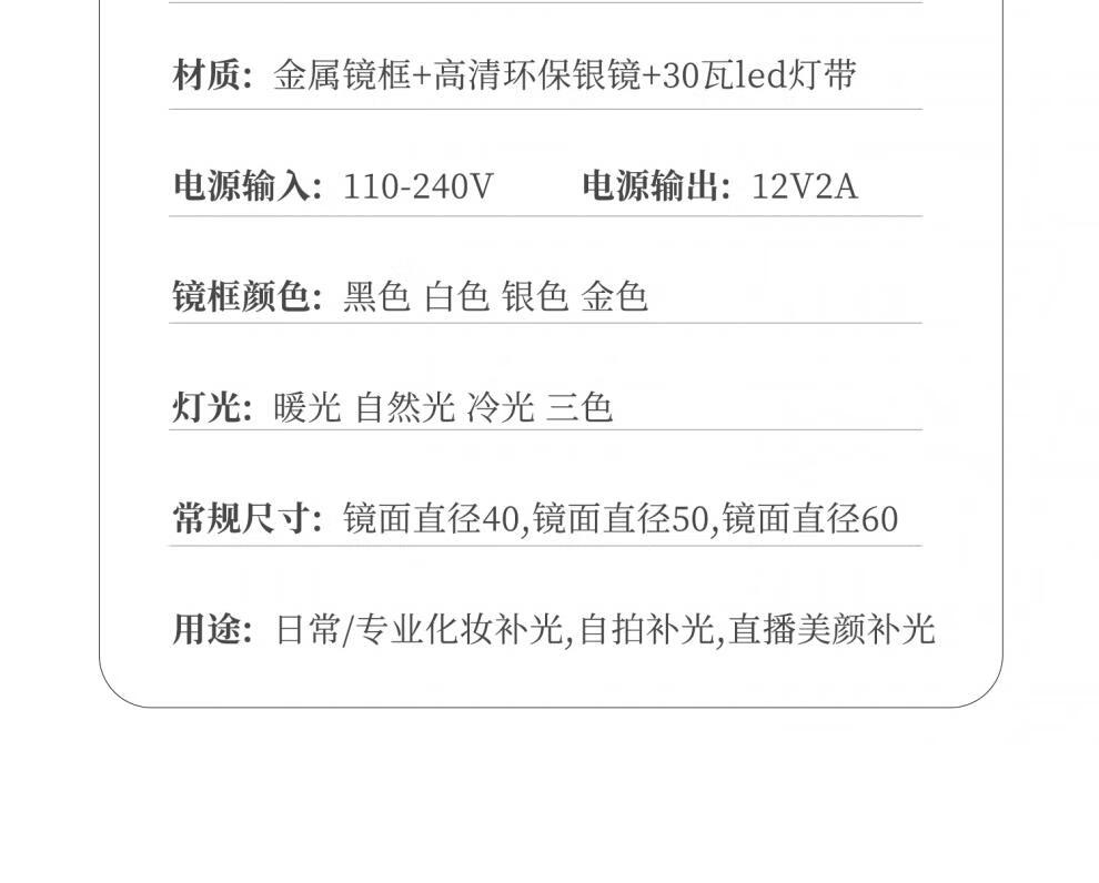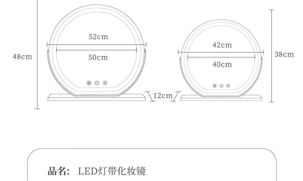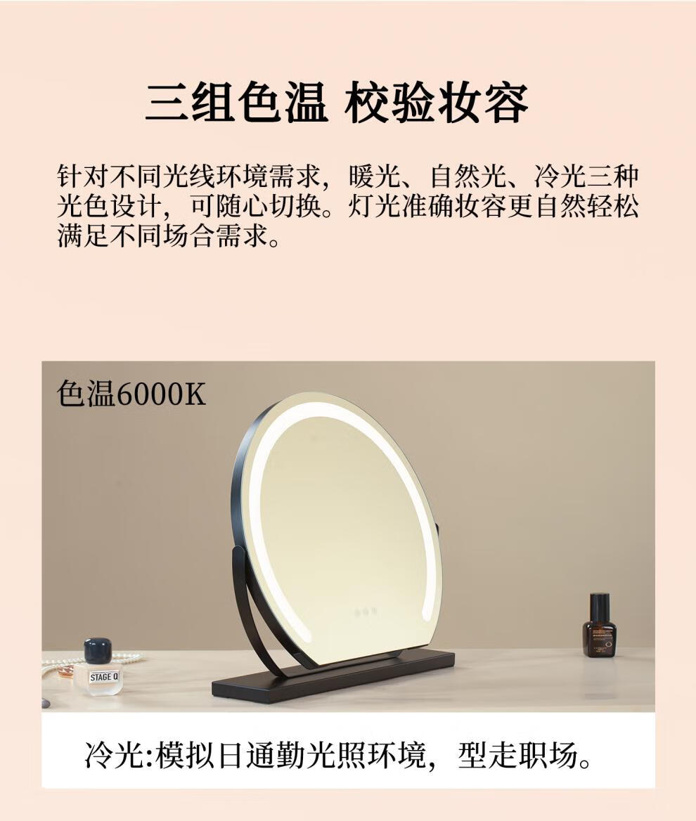 Japan's selected high-definition LED vanity mirror with light vanity mirror desktop smart home simple master bedroom semicircle gold 60 diameter (charged) fixed model touch three-tone lighting