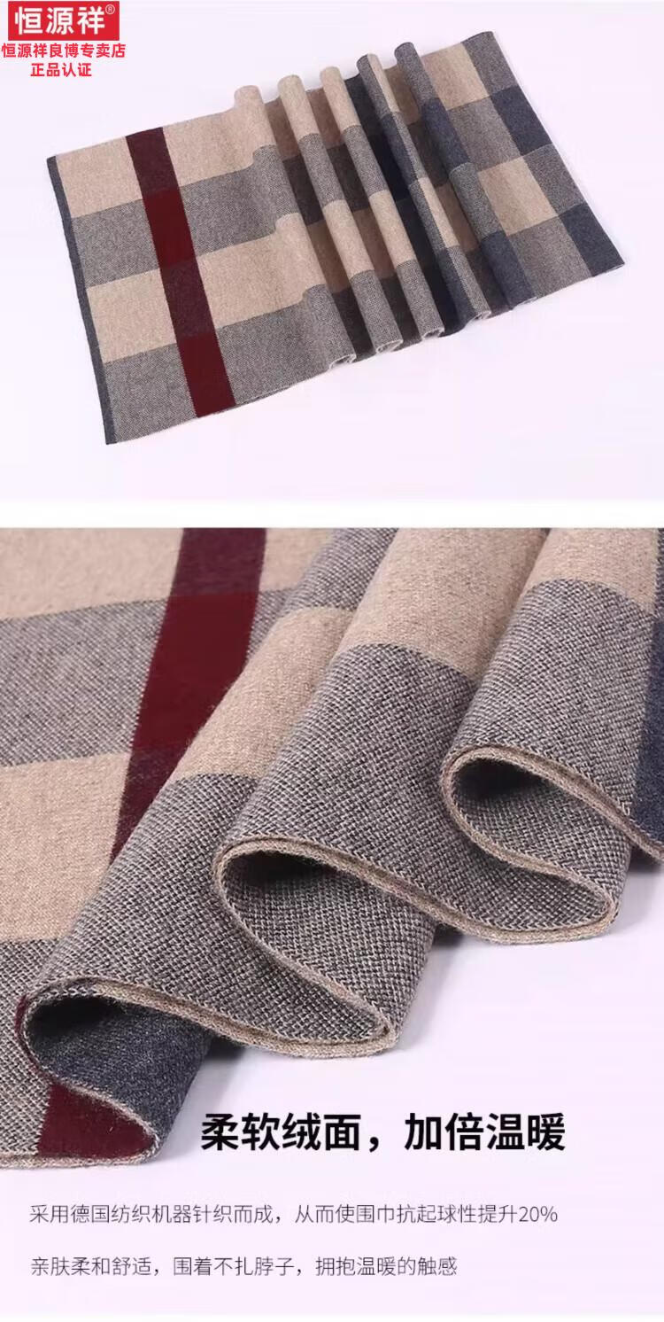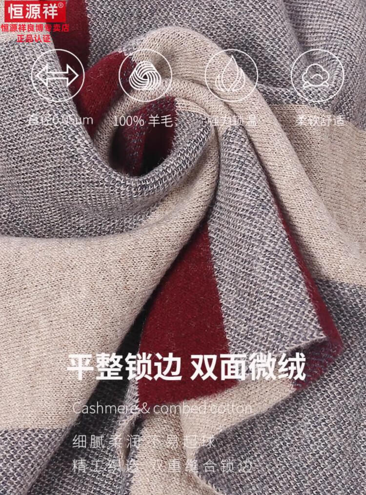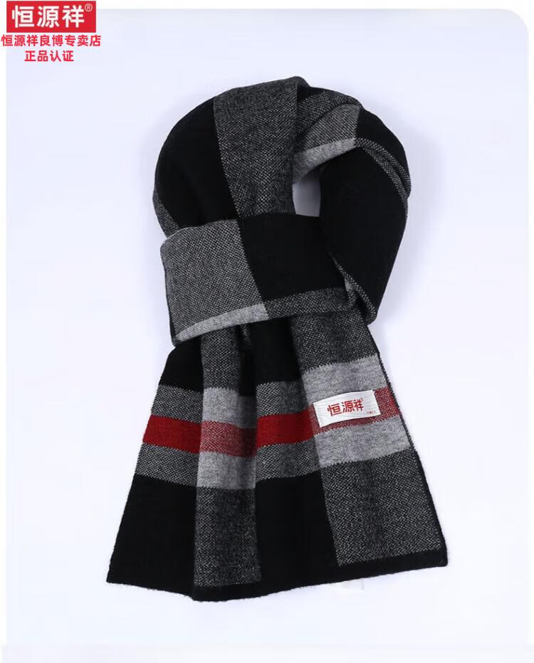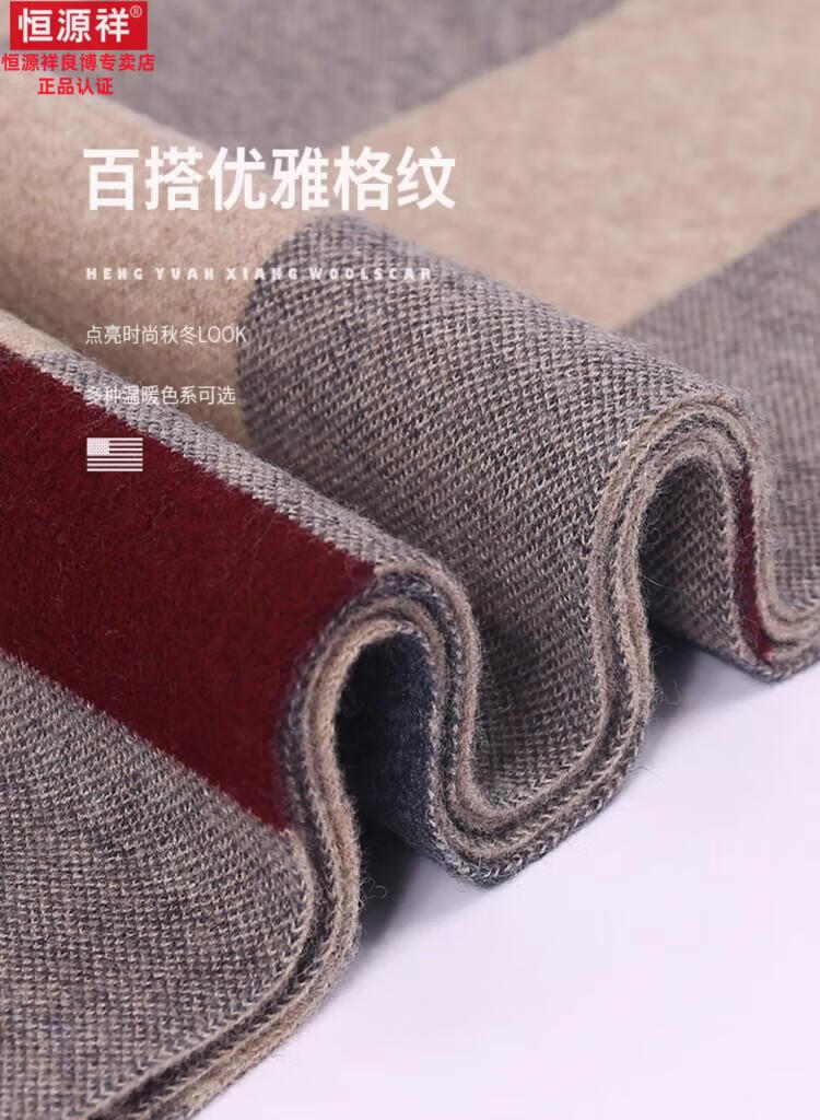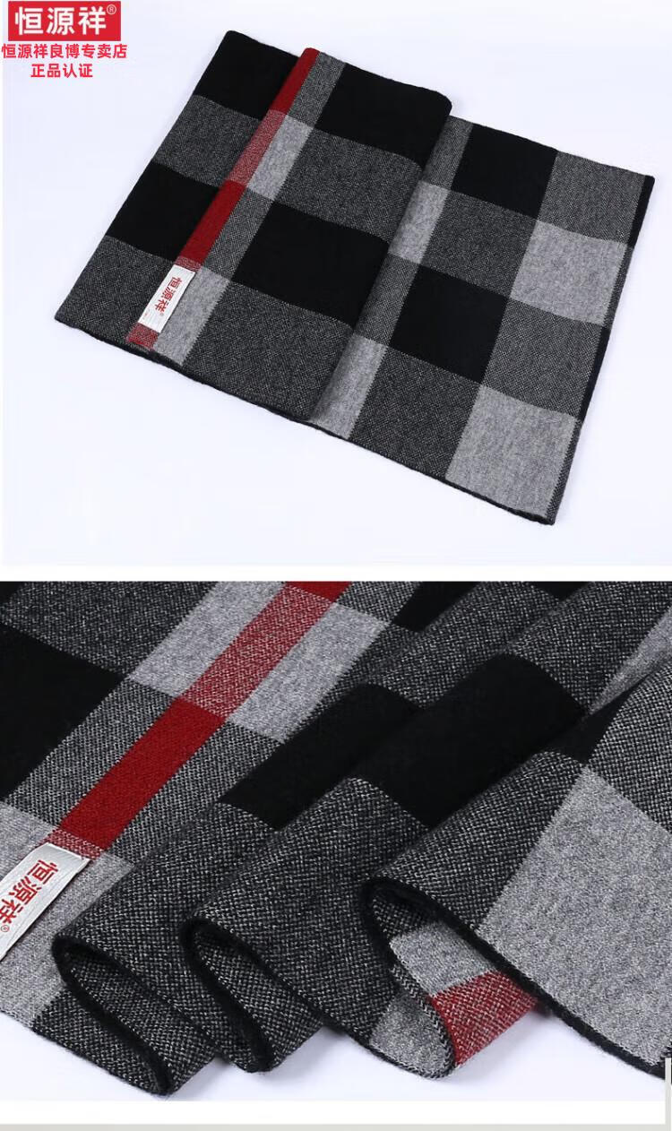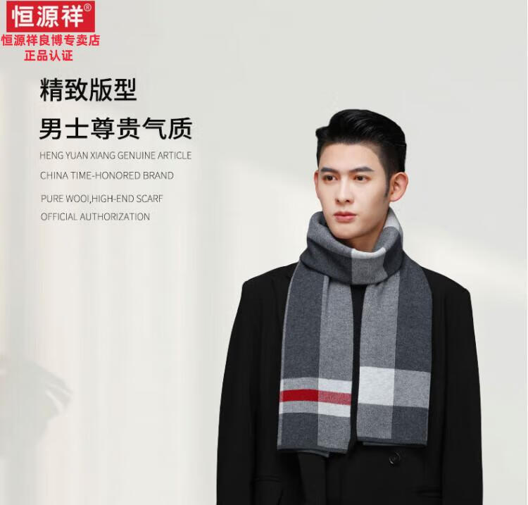 Hengyuanxiang pure wool scarf men's winter high-end 2025 new thickened and warm boyfriend Christmas gift gift box, dark gray red pure wool gift box