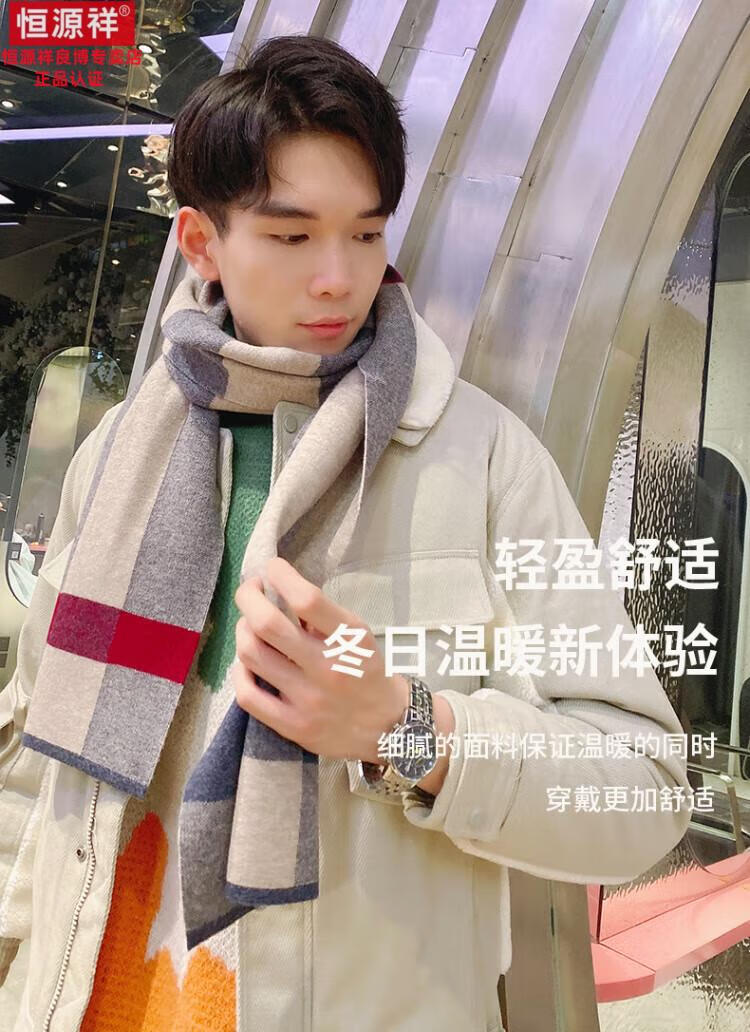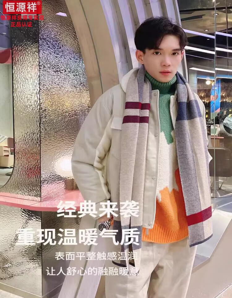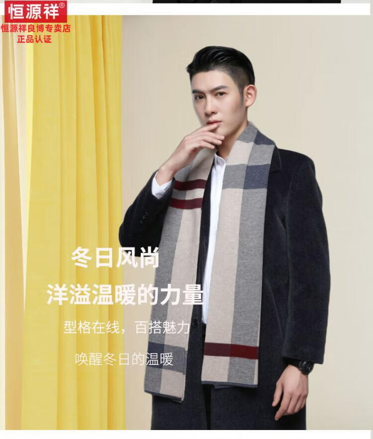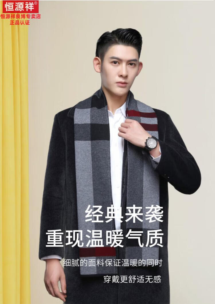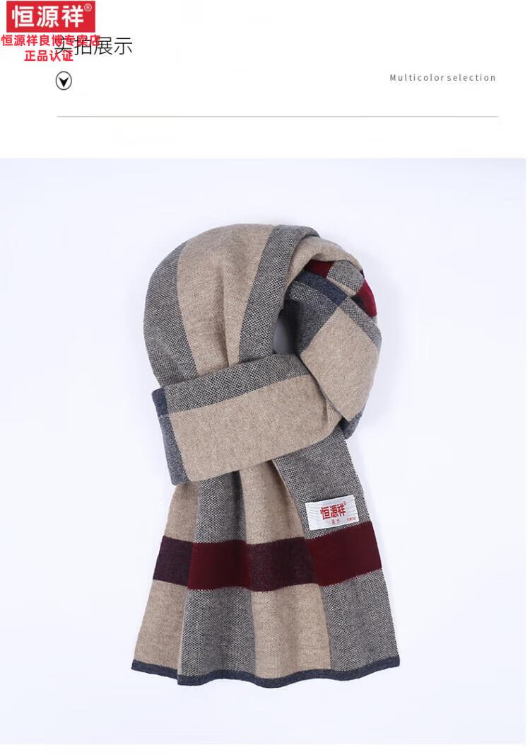 Hengyuanxiang pure wool scarf men's winter high-end 2025 new thickened and warm boyfriend Christmas gift gift box, dark gray red pure wool gift box