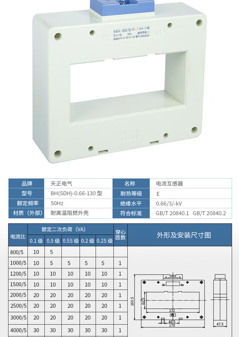 Tianzheng Electrical current transformer BH (SDH)-0.66 double row 130 type 5000/5 0.5 level 130