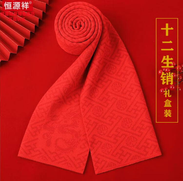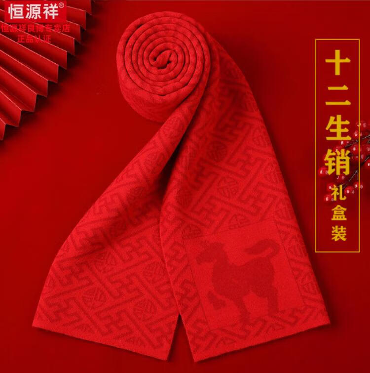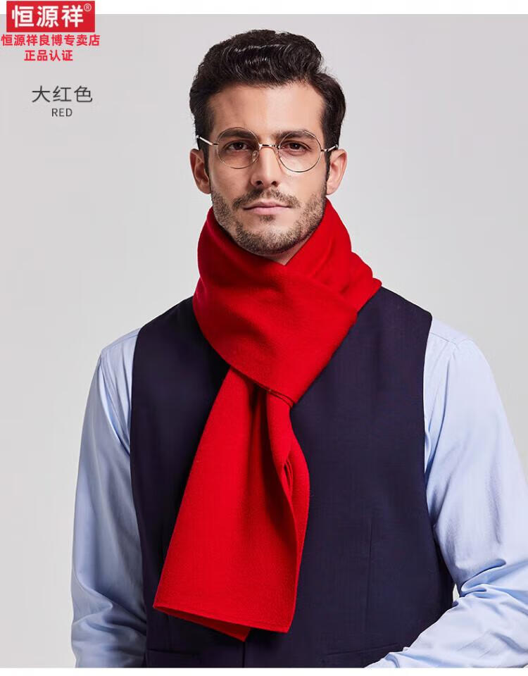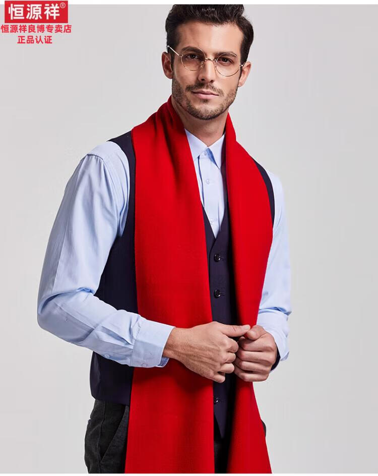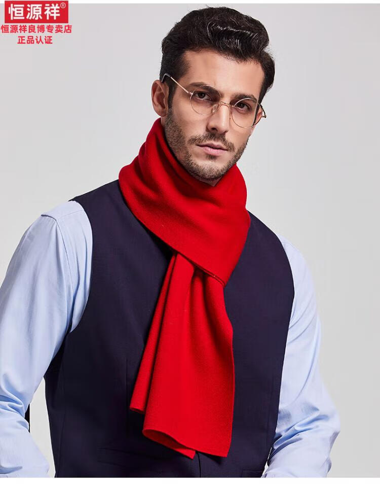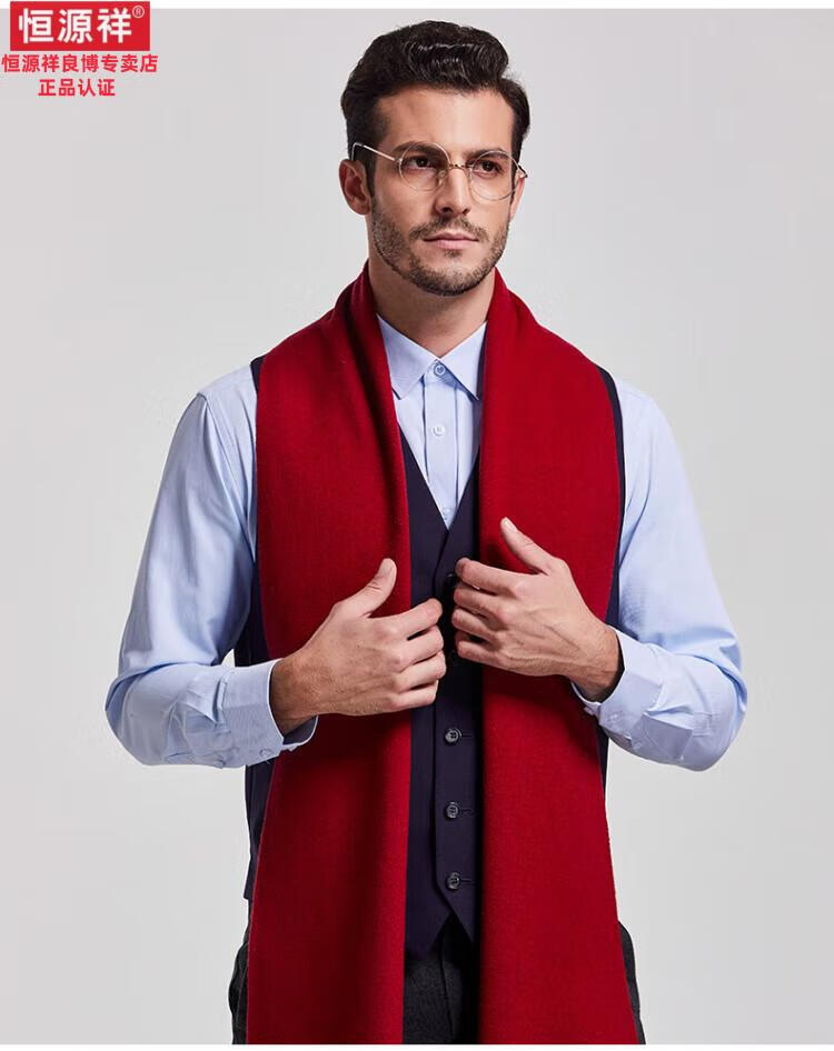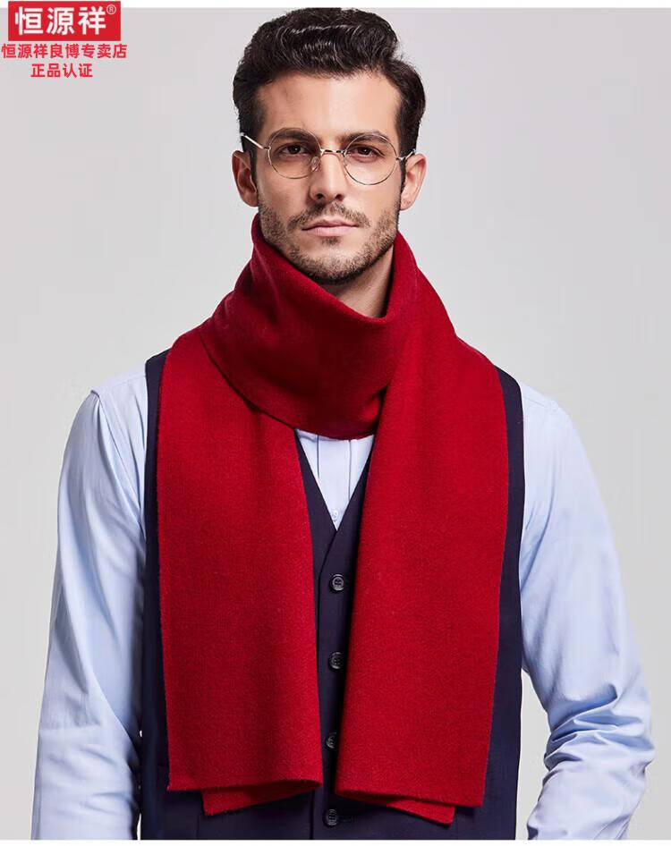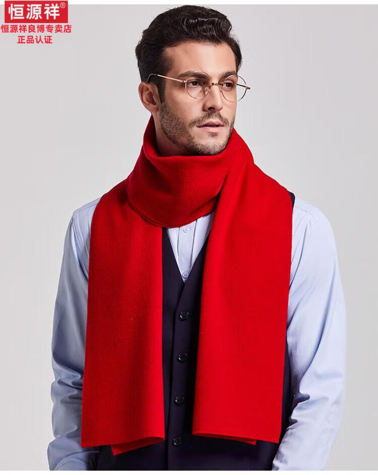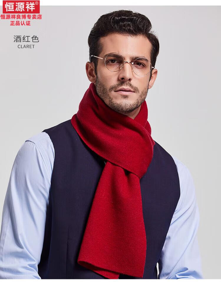 Hengyuanxiang 100% cashmere scarf men's winter thickened and warm high-end men's scarf Chinese red solid color group purchase gift box solid color burgundy gift box