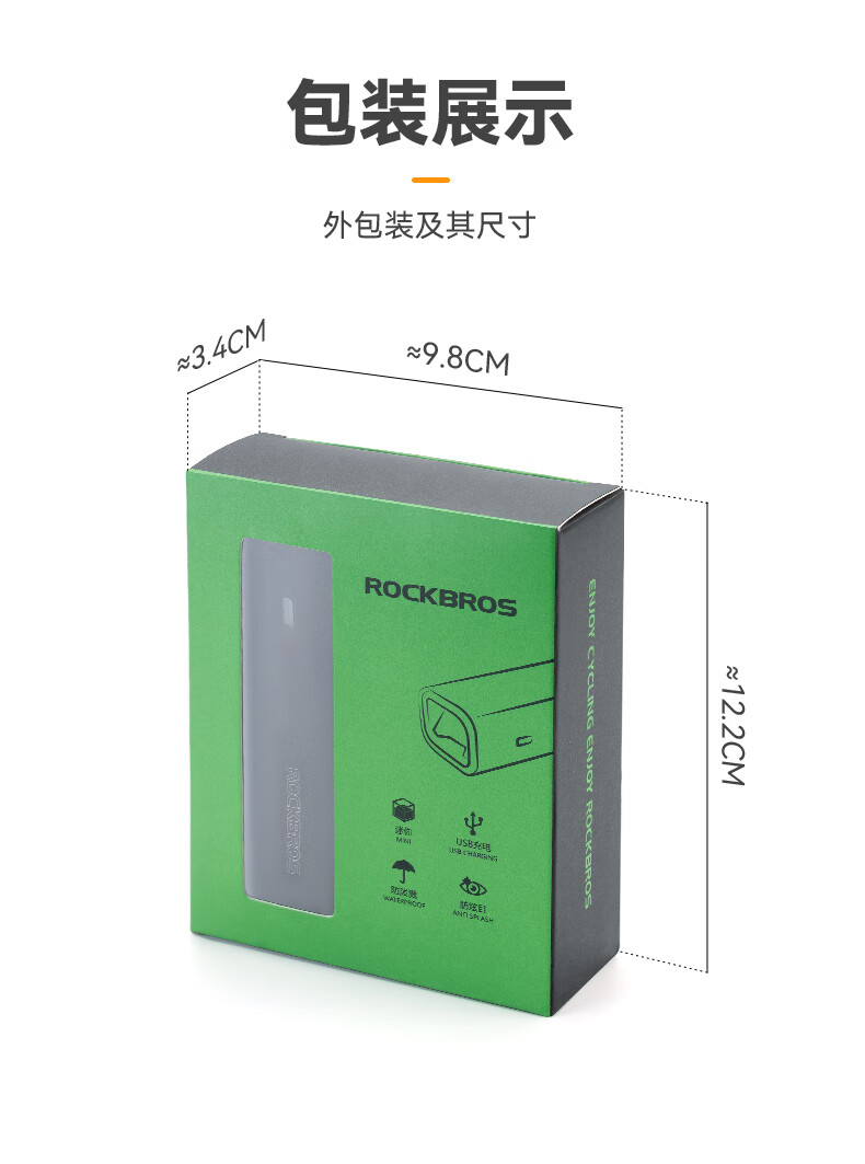 Rock Brothers suspended bicycle light headlight strong light flashlight road mountain bike night riding typec rechargeable light RHL-400 lumens_suspended version (without bracket)