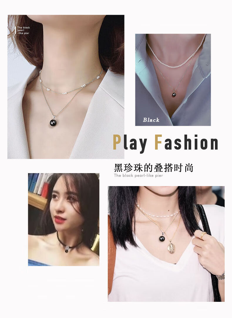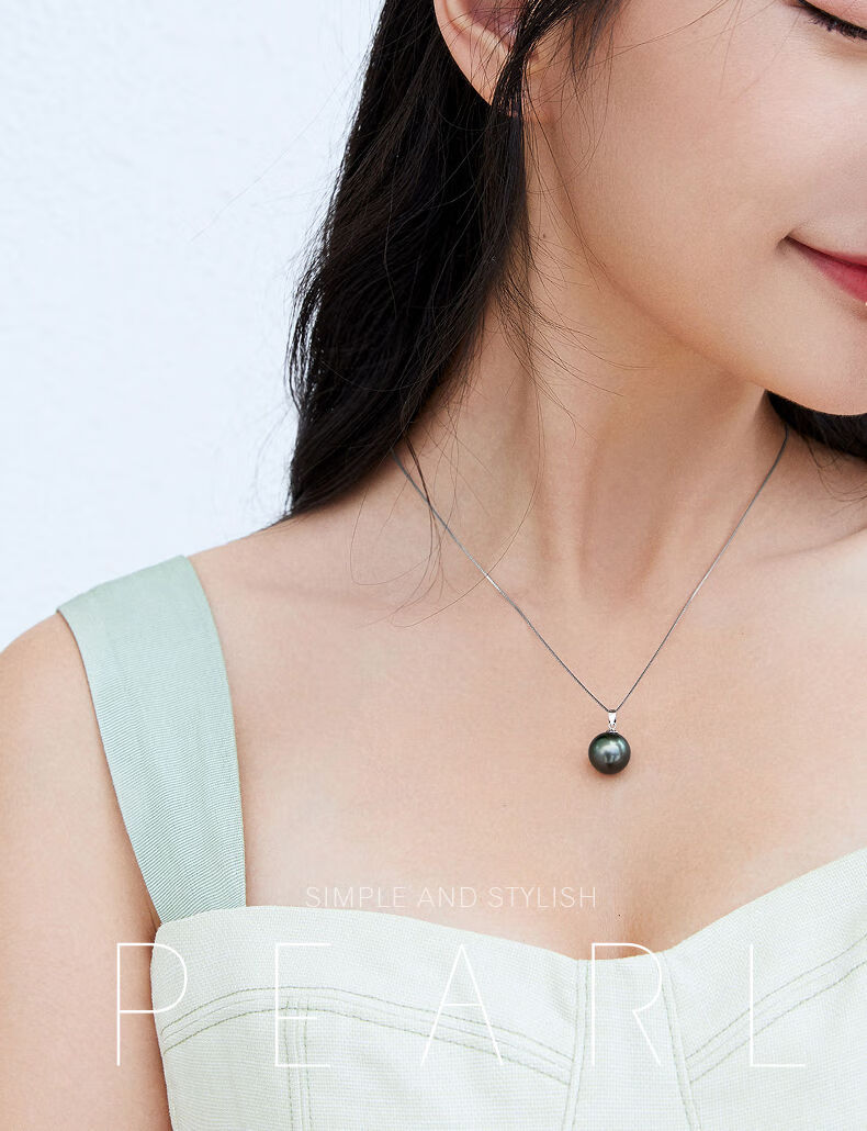 Pingyan Seawater Black Pearl Pendant Women's Necklace Single Multi-Diameter Gift for Girlfriend Perfect Round Slightly Flawed Bright Light 8-9mm