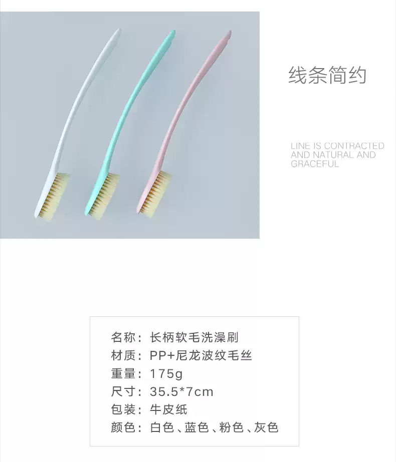 Yusenyi bath brush, back rub, body bath brush, soft bristle brush, back rub, back rub and bath artifact, Japanese style bath brush, upgraded blue, upgraded comfortable handle, free hook/free 1 bath ball