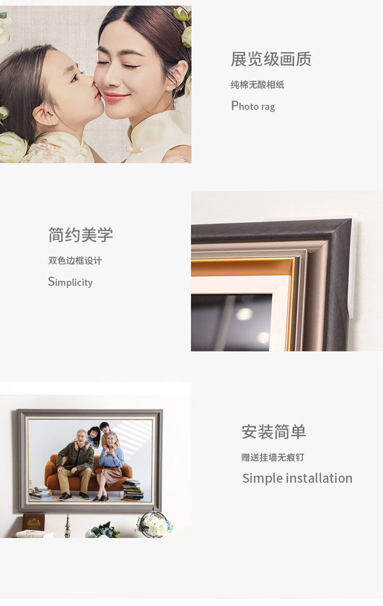 Yusenyi customized family portraits, washed photos, printed and framed to hang on the wall, custom made into enlarged picture frames for living room wedding photos, elegant white pure love, 0-inch photo 40x50m