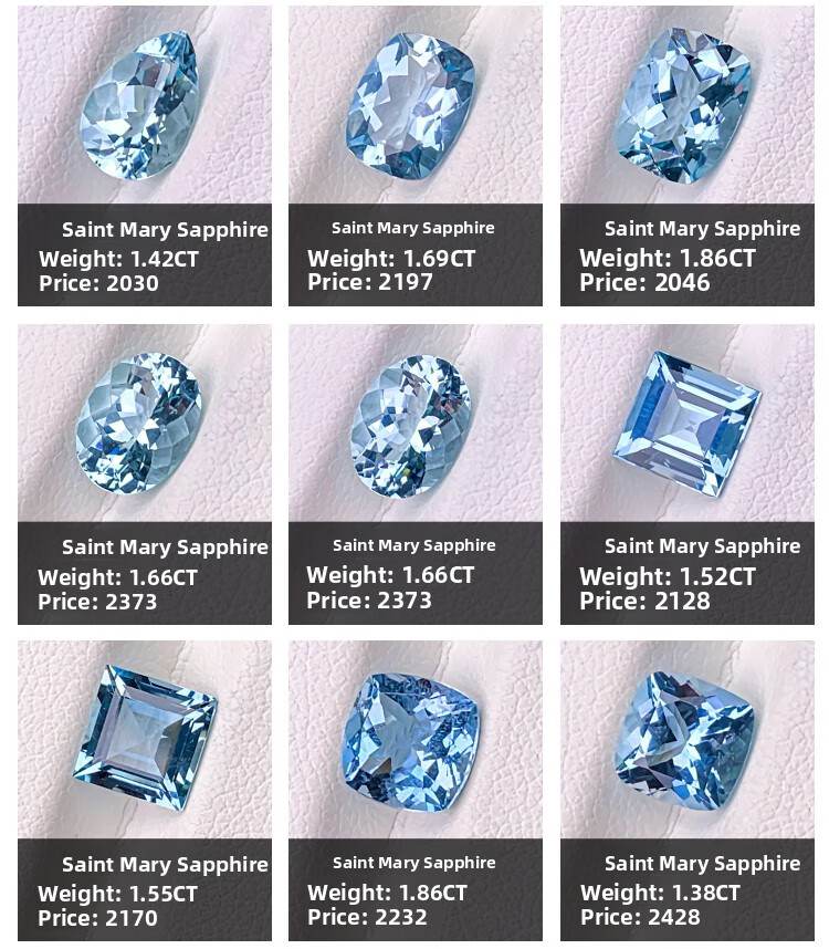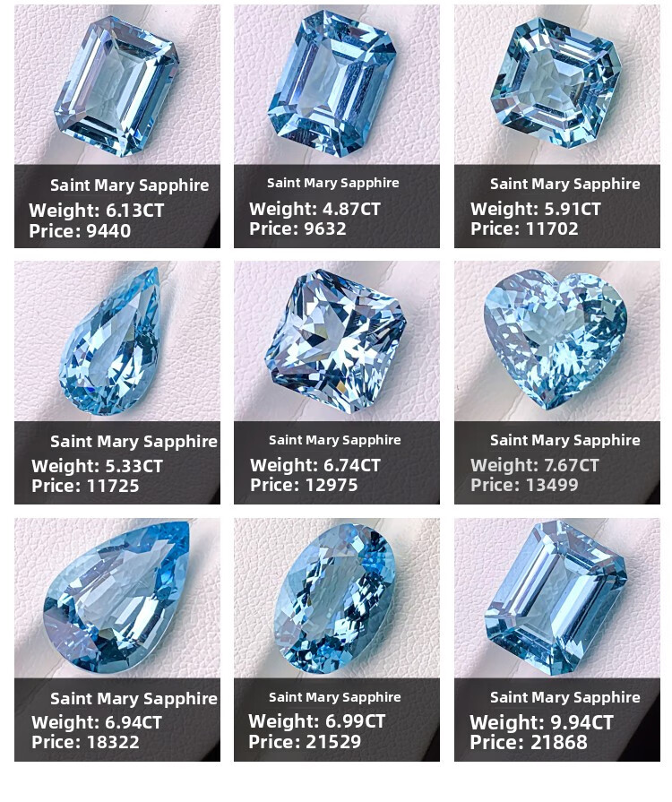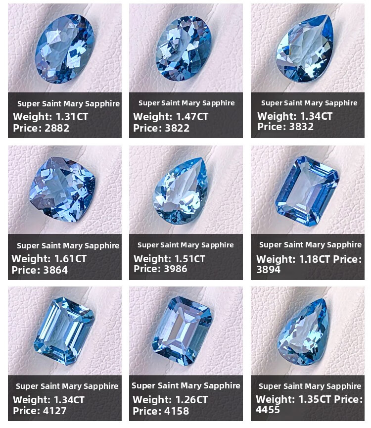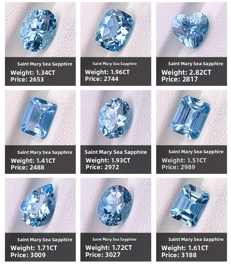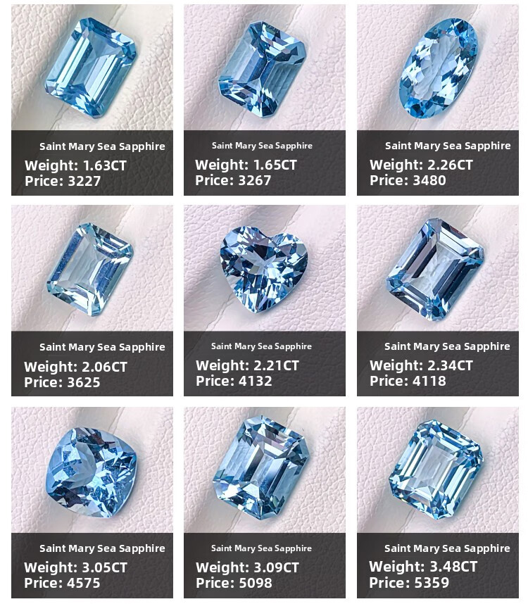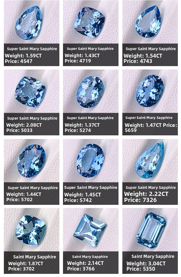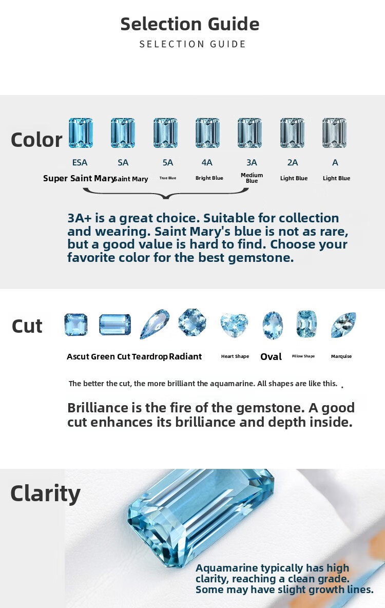 Ajie Colorful Natural Santa Maria Aquamarine Loose Stone Customized 18K Ring Necklace Pendant Earrings for Women Style Selection